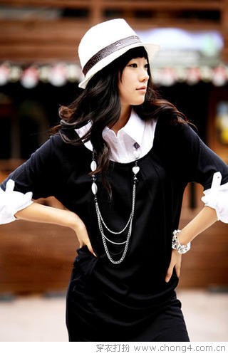 03 领口和袖口用黑色做了个边饰,正式因为有了细节的处理,使这件衣服变得不那么普通。