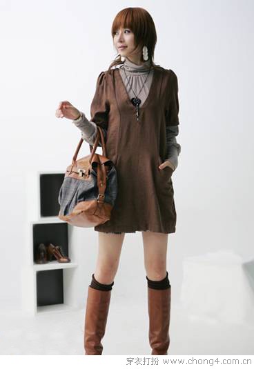 02 棕色的连身毛衣裙很简单吧,没有那么多的装饰也更显优雅,5分袖子的设计也是今年在设计上的流行元素。
