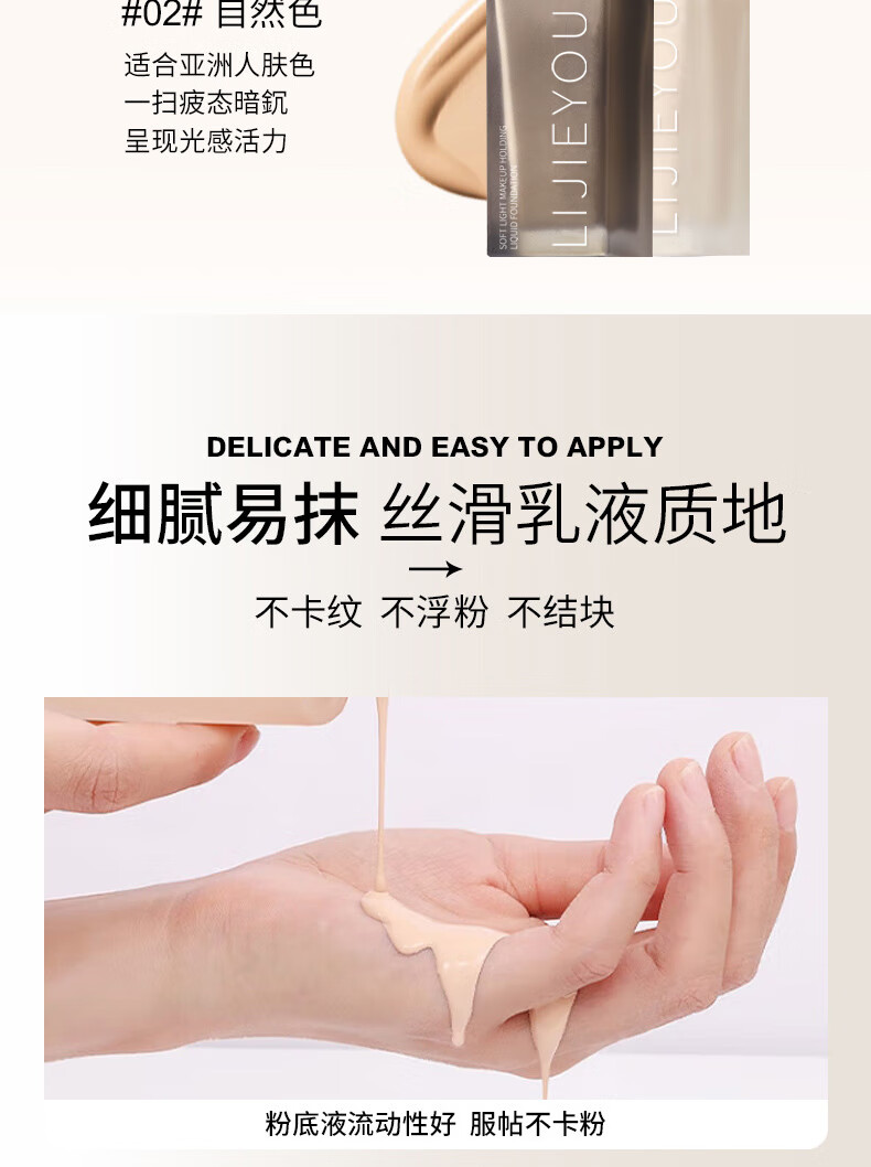 持妆粉底液平价国货学生党油皮控油遮瑕持久不脱妆干皮保湿防水 L02#自然色【适合干皮】