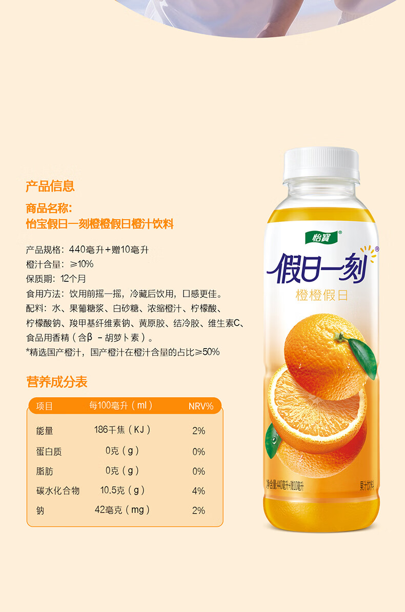 怡宝假日一刻橙橙假日果汁橙汁饮料440ml*15瓶/箱 随机发【25.8月起产 橙橙假日 440mL*15瓶