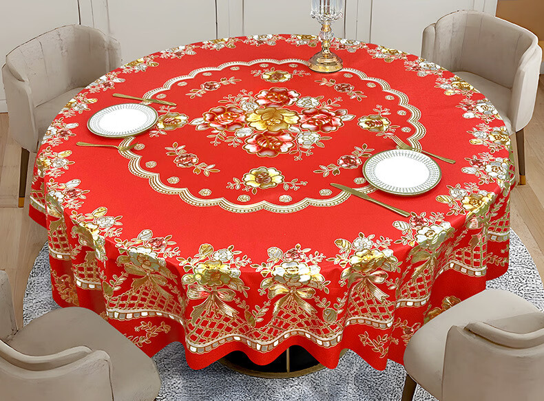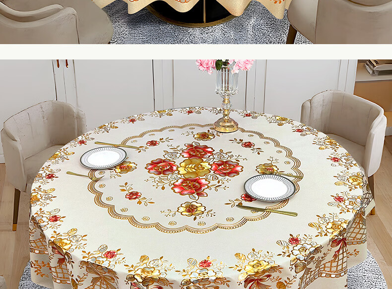 大圆桌布防滑烫金pvc轻奢感防水防油免洗欧式餐桌布台布转盘套装 【套装】白金250桌布+转盘110/130 如规格所示