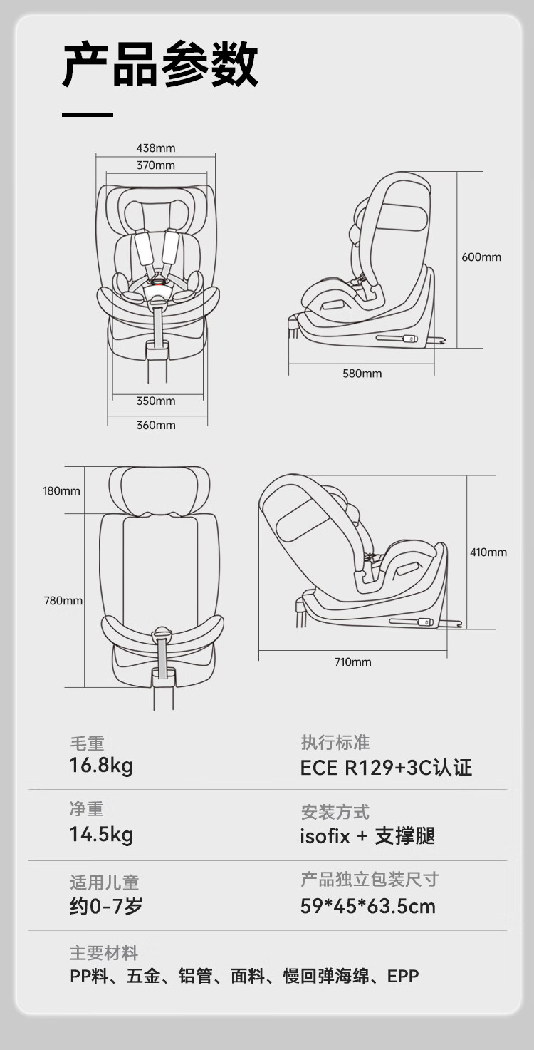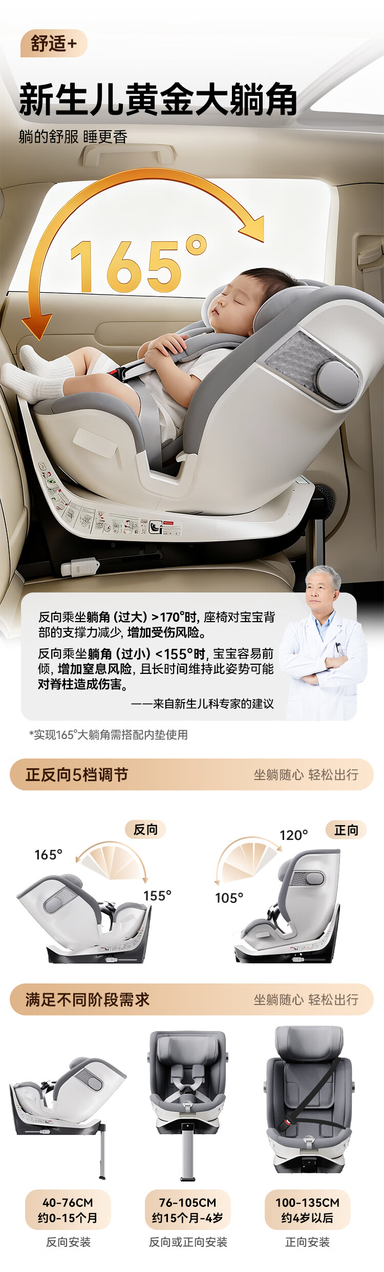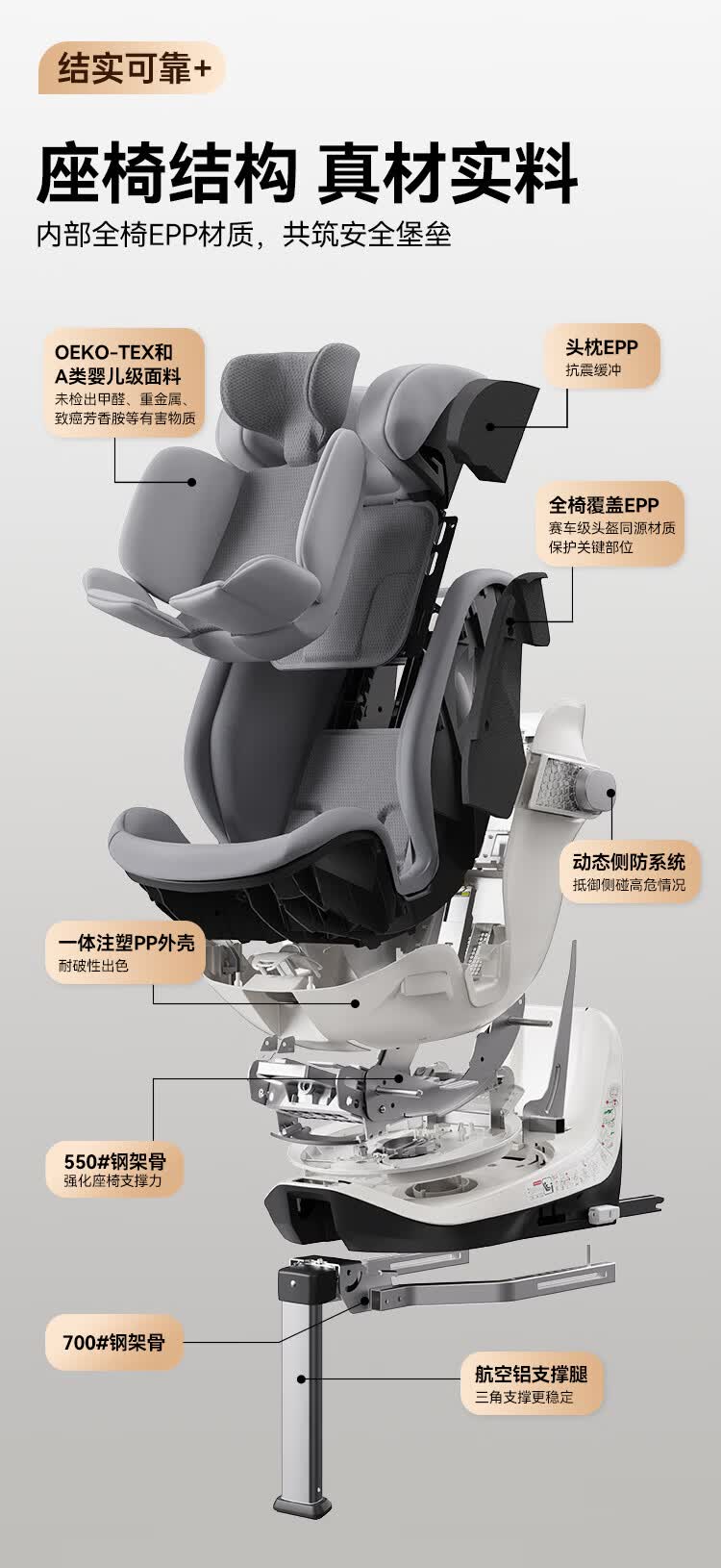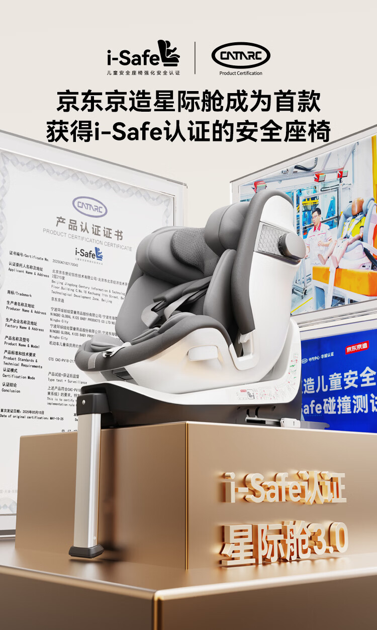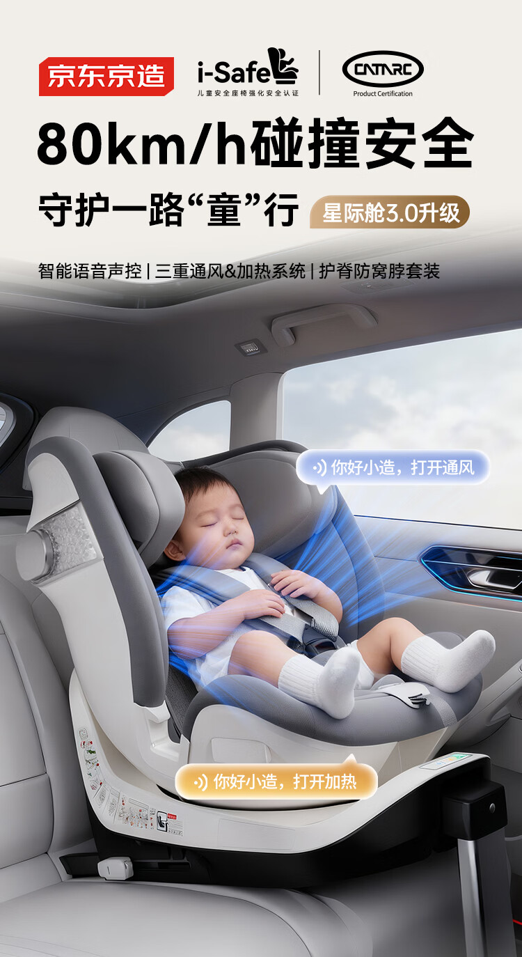 京东京造儿童安全座椅0-6-7岁婴儿宝宝i-Safe双通风加热星际舱3.0星雾灰