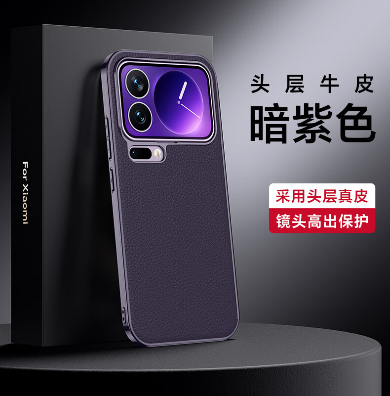 麦焕适用小米17pro手机壳新款17promax真皮电镀软边框保护套17全包时尚男女款 【暗紫色】头层牛皮 小米17promax