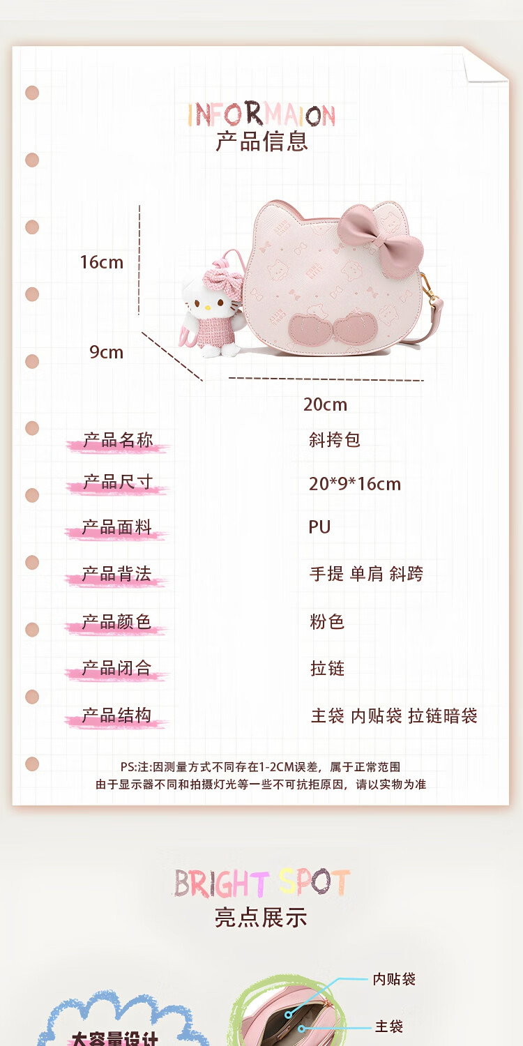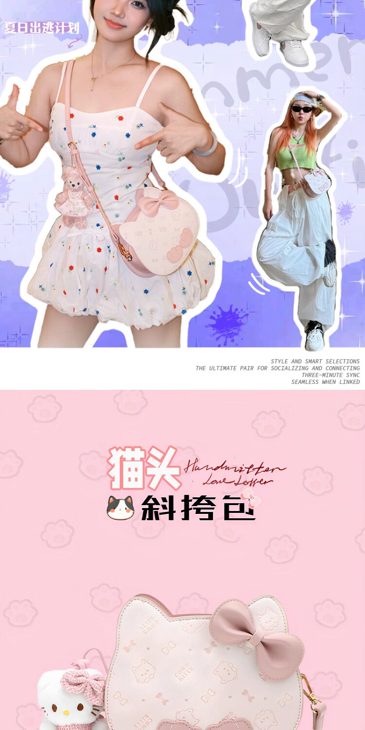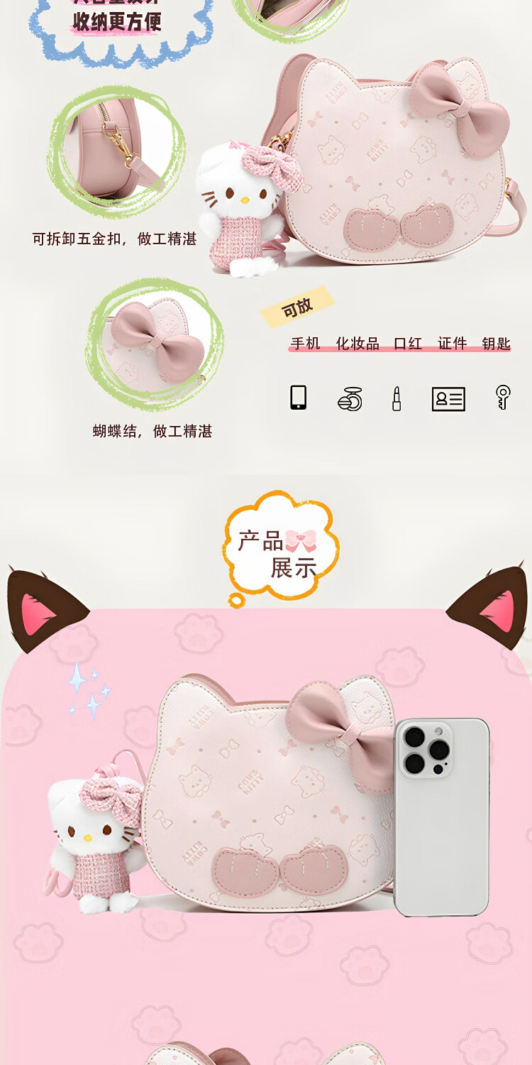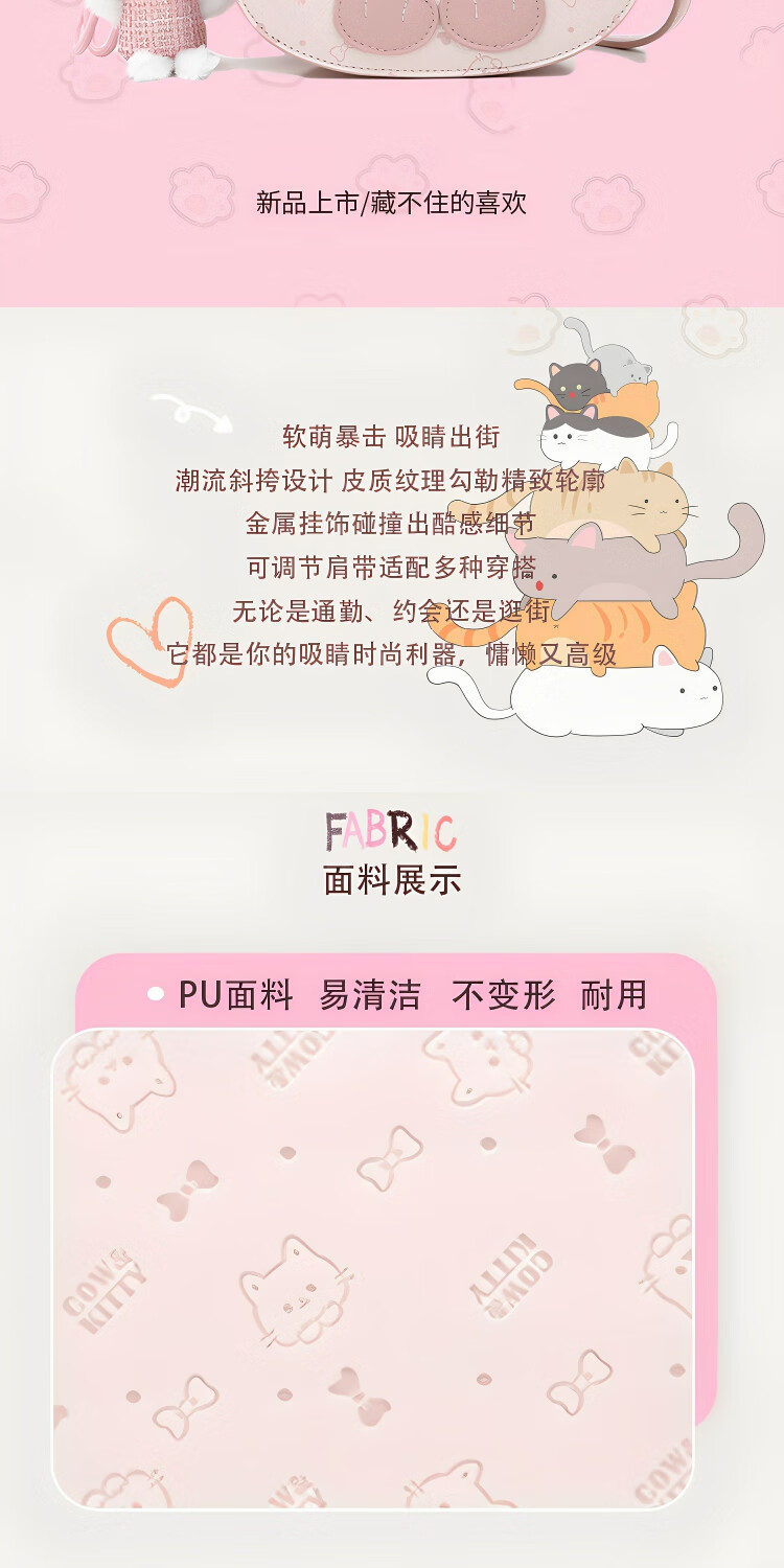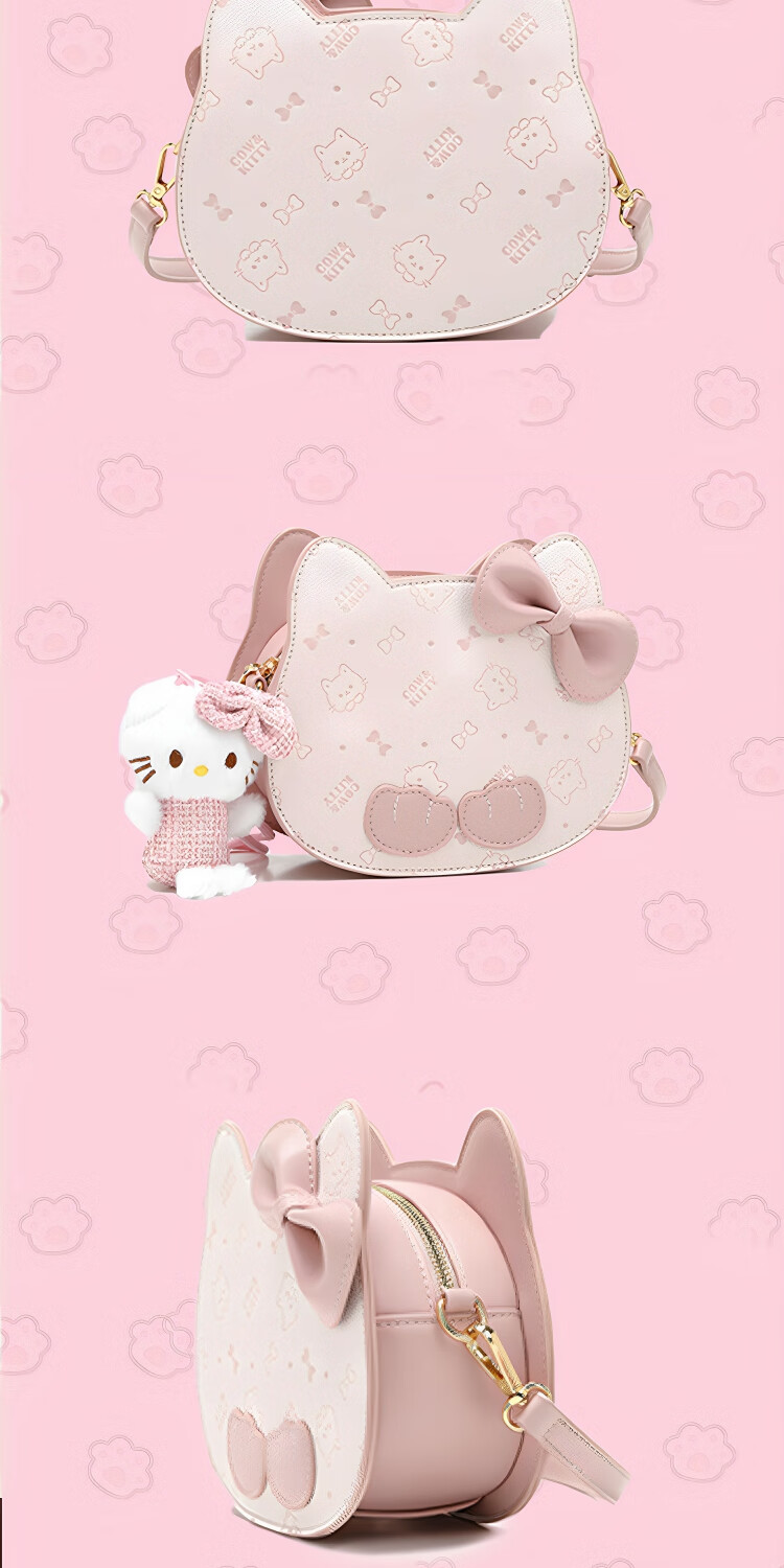 COW&KITTY礼物时尚可爱卡通猫头包包新款女轻奢粉单肩斜挎包百搭 樱花粉【送礼盒+挂件】