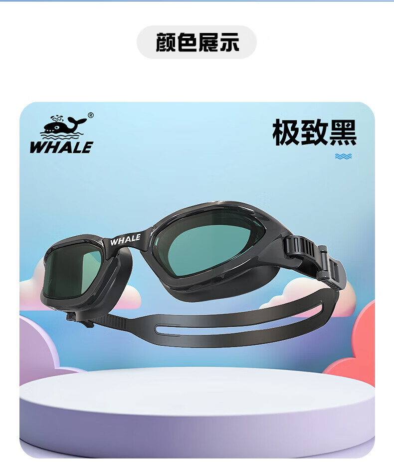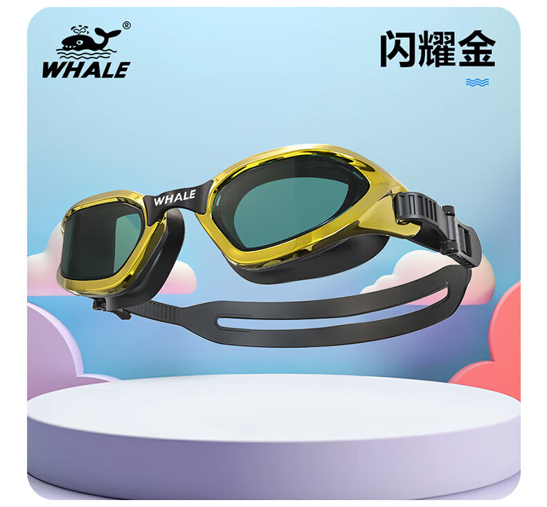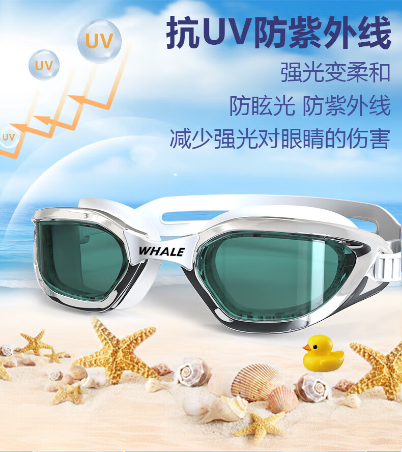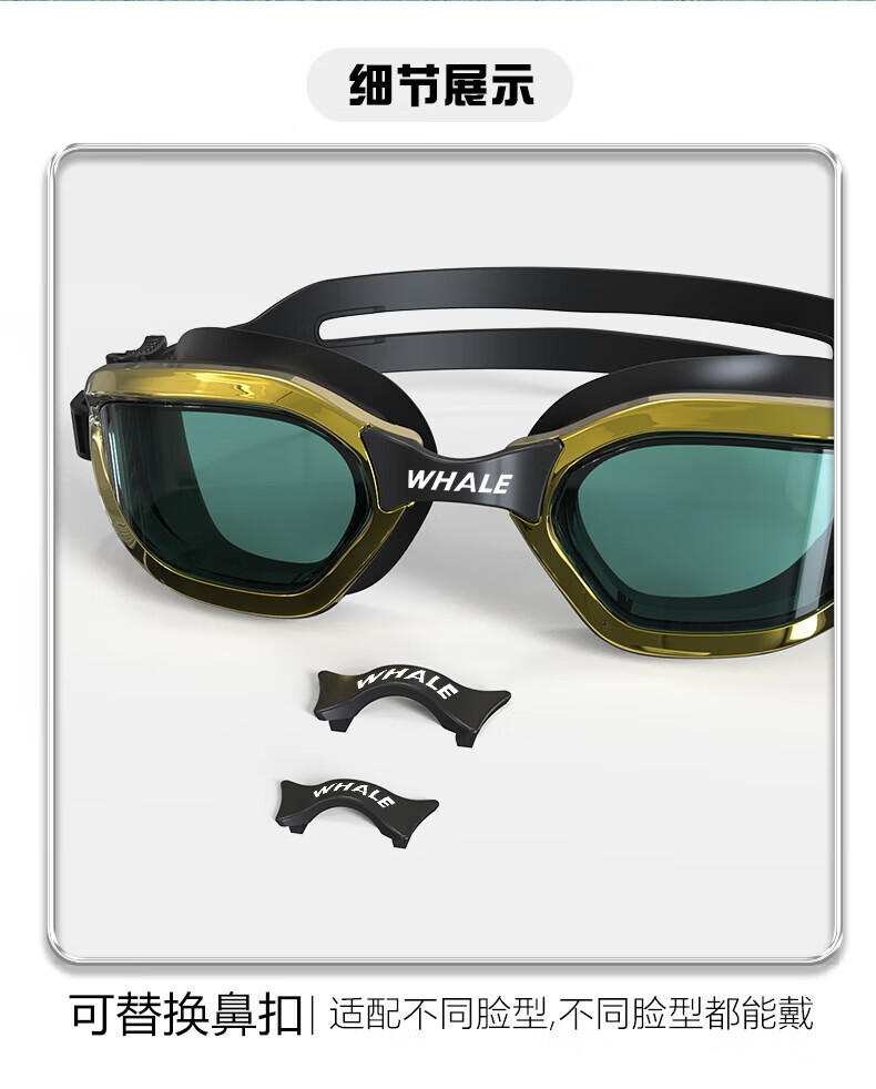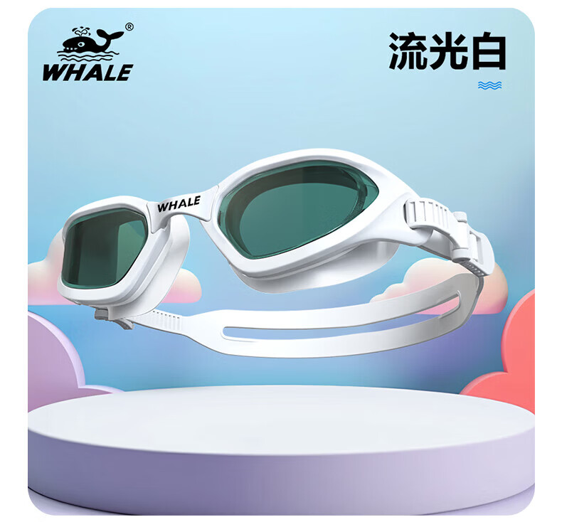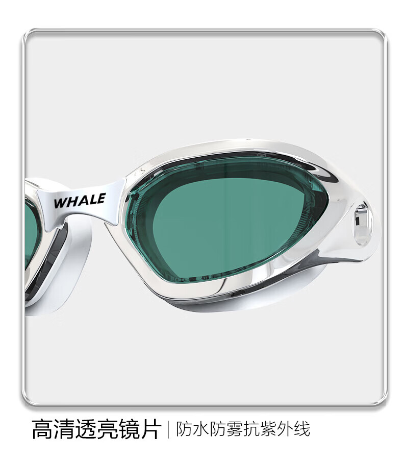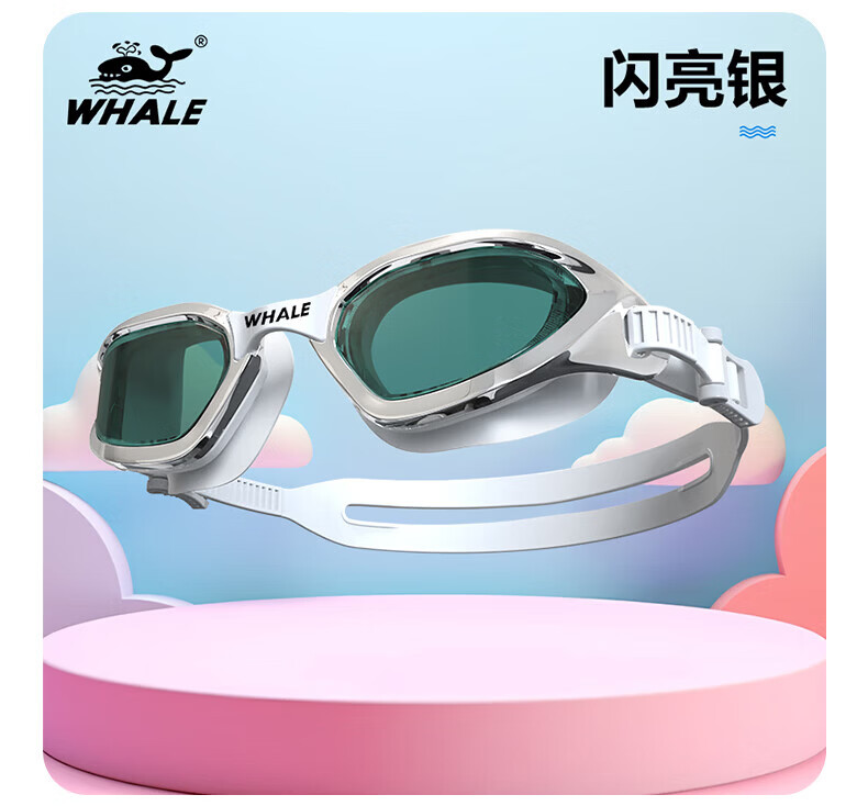 鲸鱼S1泳镜防雾防水1888天起雾换新游泳装备高清近视可选度数游泳眼镜 闪亮银【纳米防雾高清款】+赠泳帽