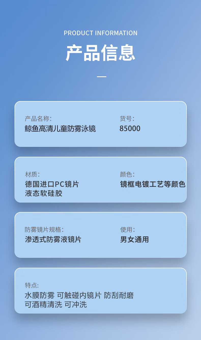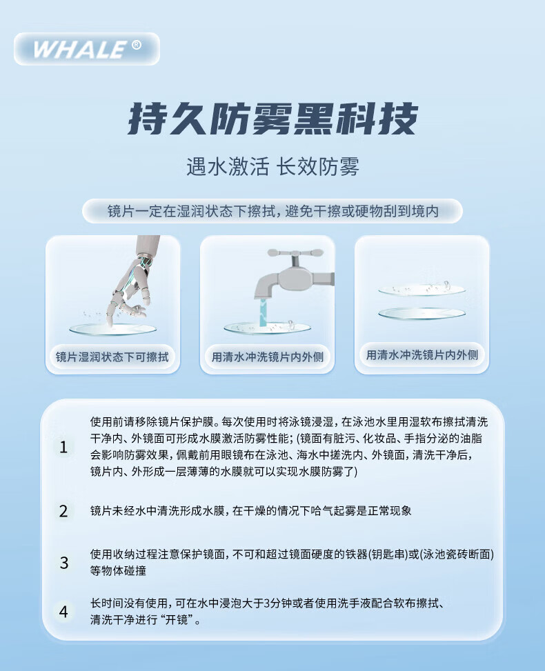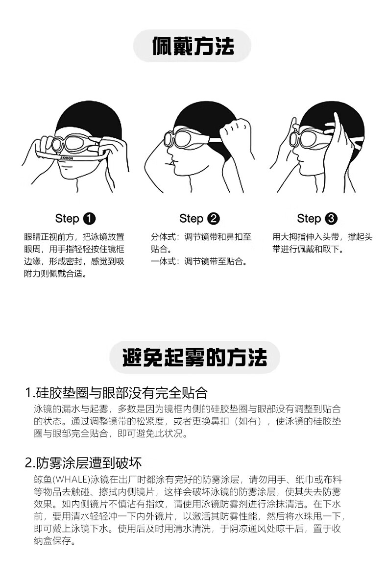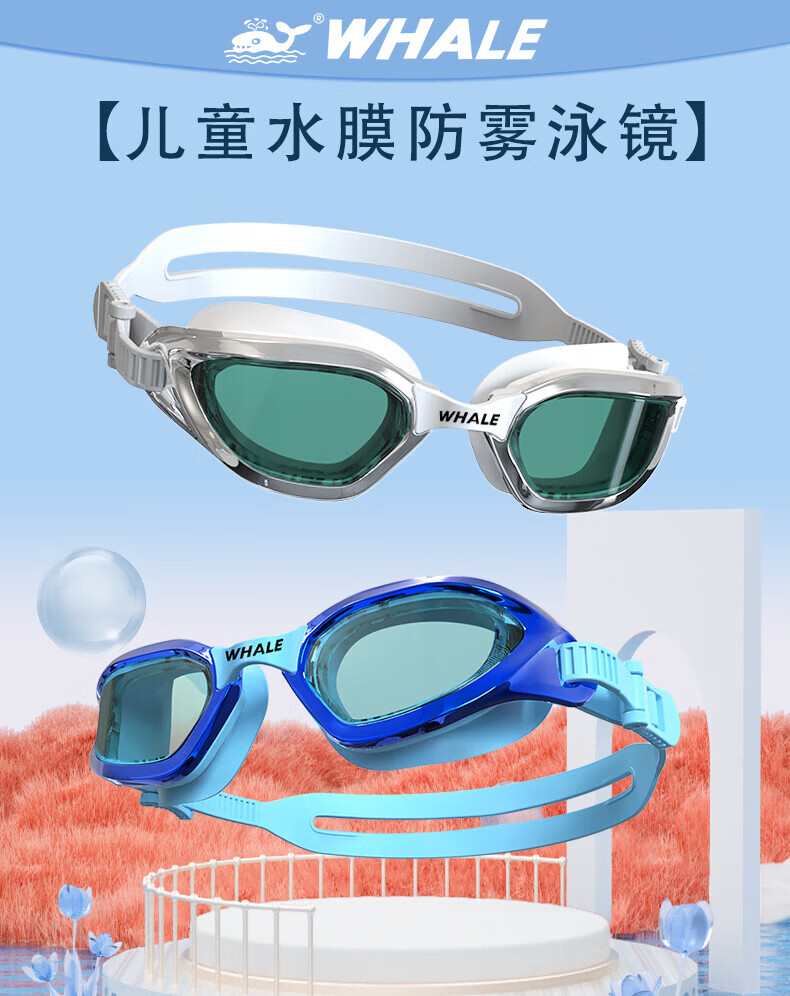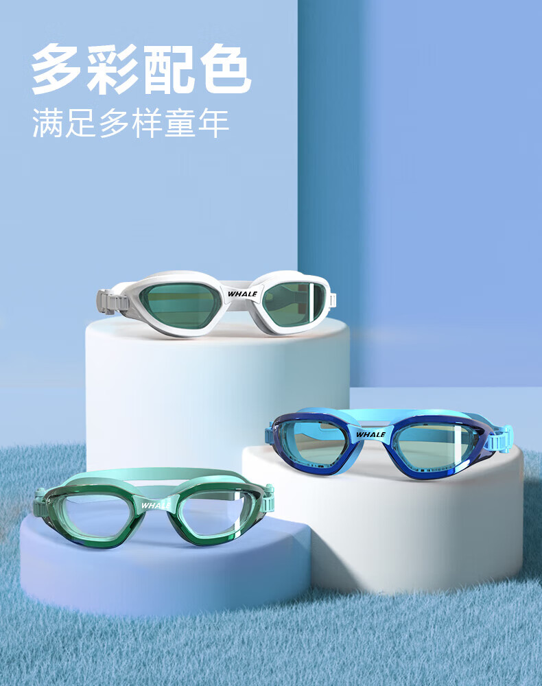 鲸鱼S1泳镜防雾防水1888天起雾换新游泳装备高清近视可选度数游泳眼镜 闪亮银【纳米防雾高清款】+赠泳帽
