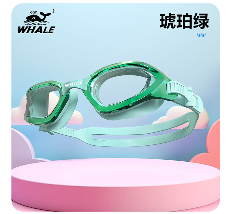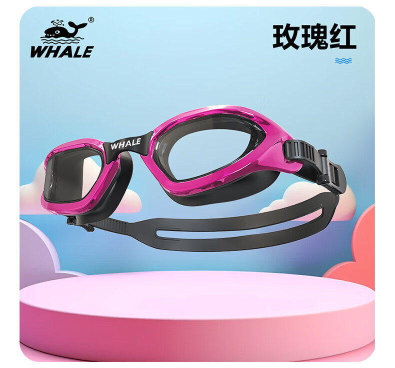 鲸鱼S4儿童泳镜高清专业纳米防雾1888天男女通用 近视可选度数泳镜 玫瑰红【透明镜片】+赠泳帽