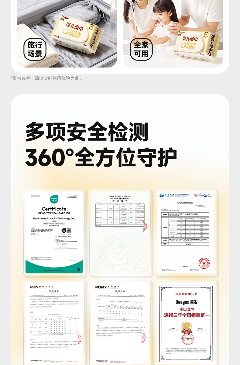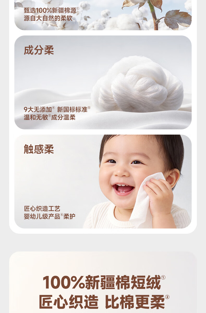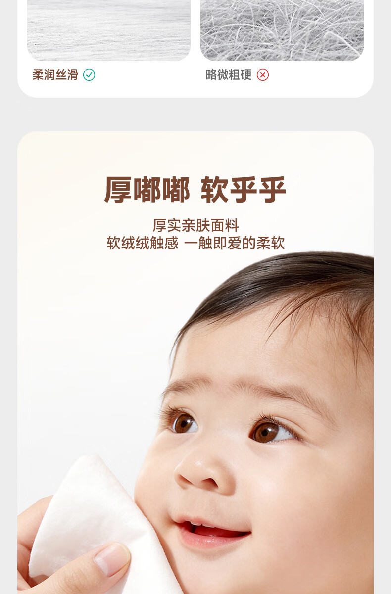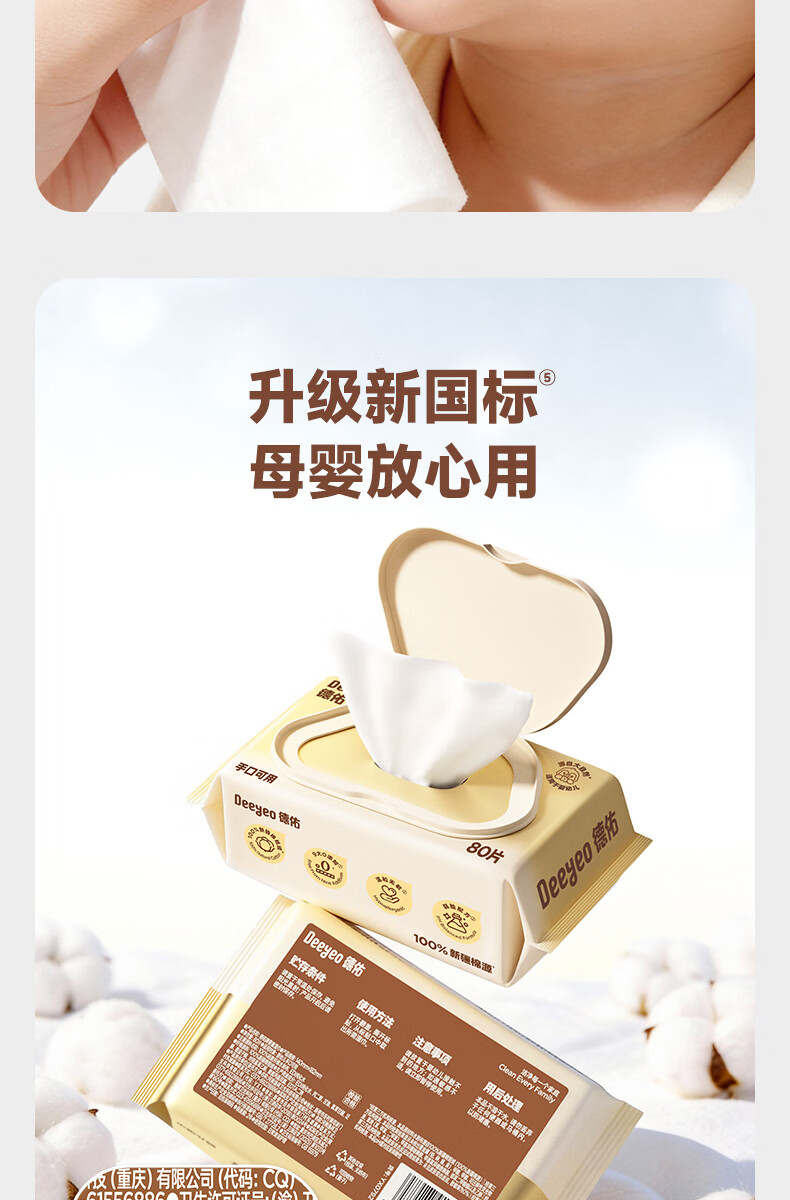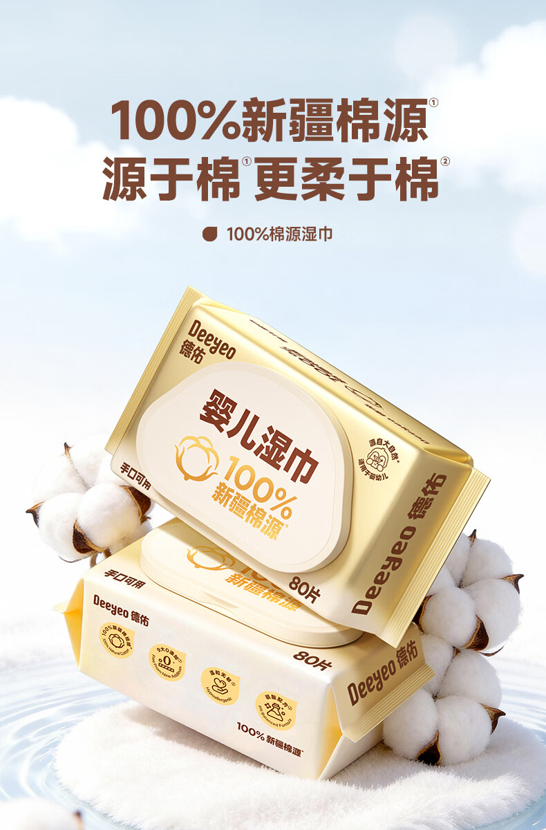 德佑超柔软100%新疆棉源手口湿巾 婴儿湿纸巾80抽*3包新生儿专用