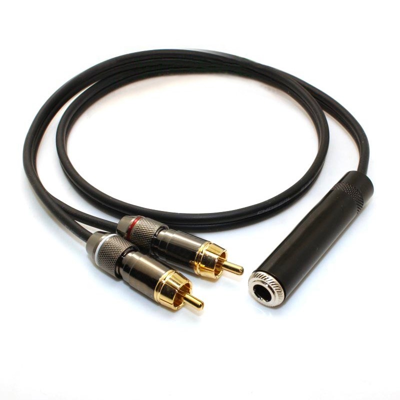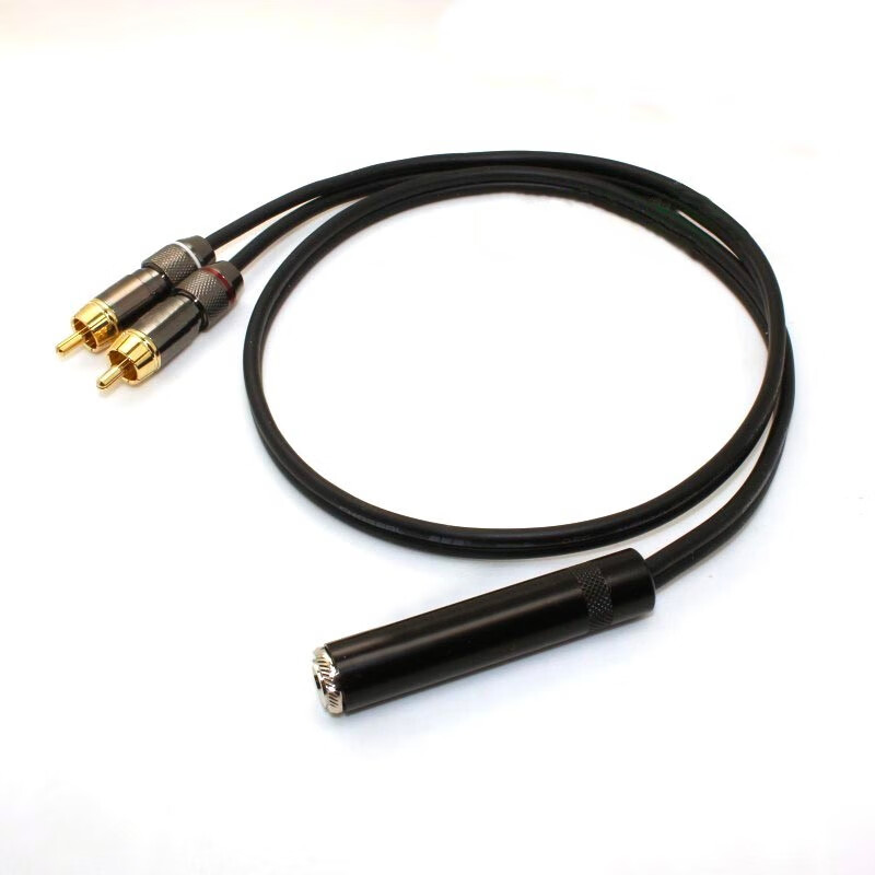 七幻 6.5母转双莲花音频线 大三芯6.35mm孔转2个RCA莲花一分二音频线 大三芯插孔6.5母转双莲花 20厘米