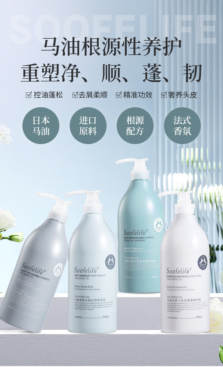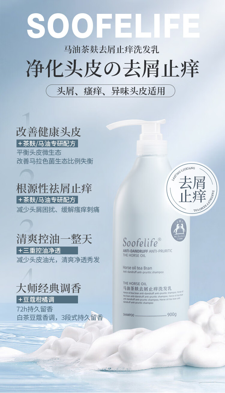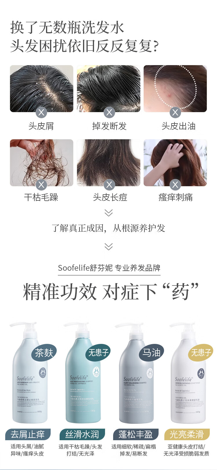SOOFELIFE舒芬妮马油茶麸去屑止痒洗发乳900g调节水油平衡去屑控油洗发水 茶麸去屑止痒洗发水900g*1支