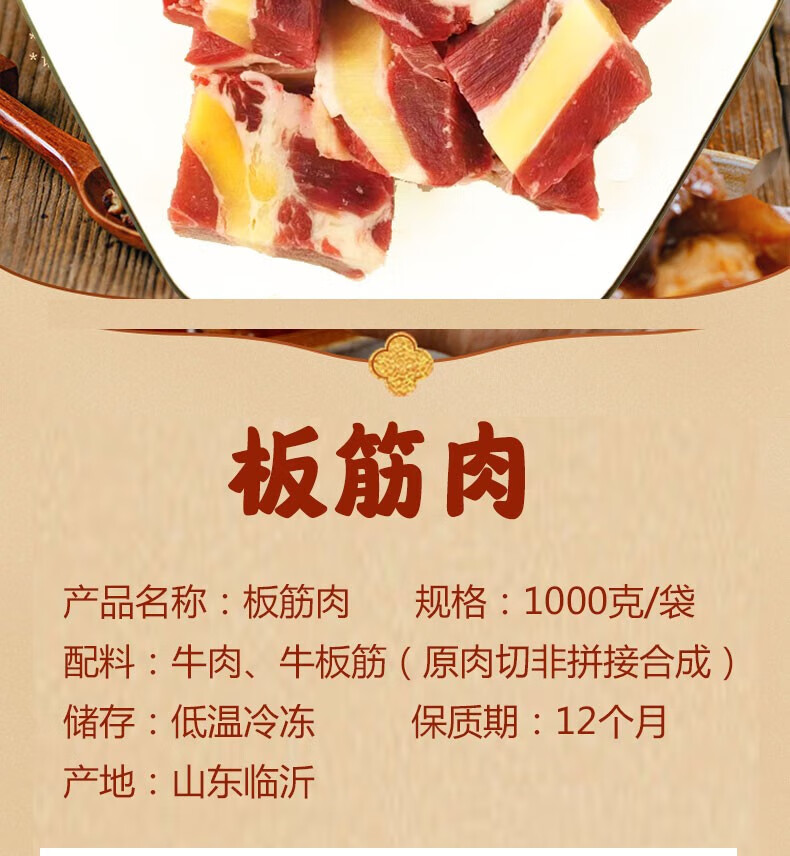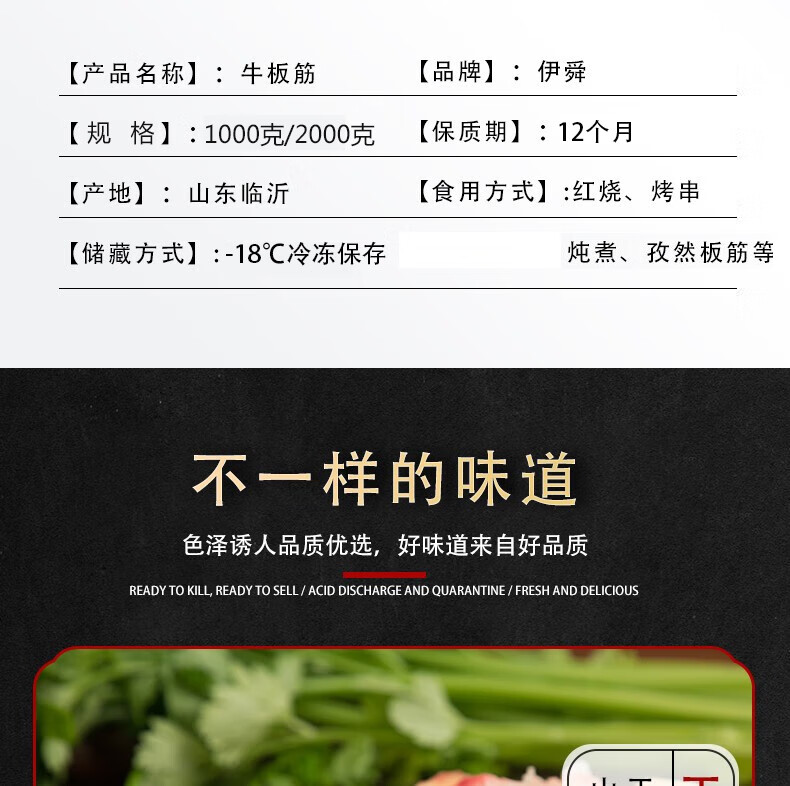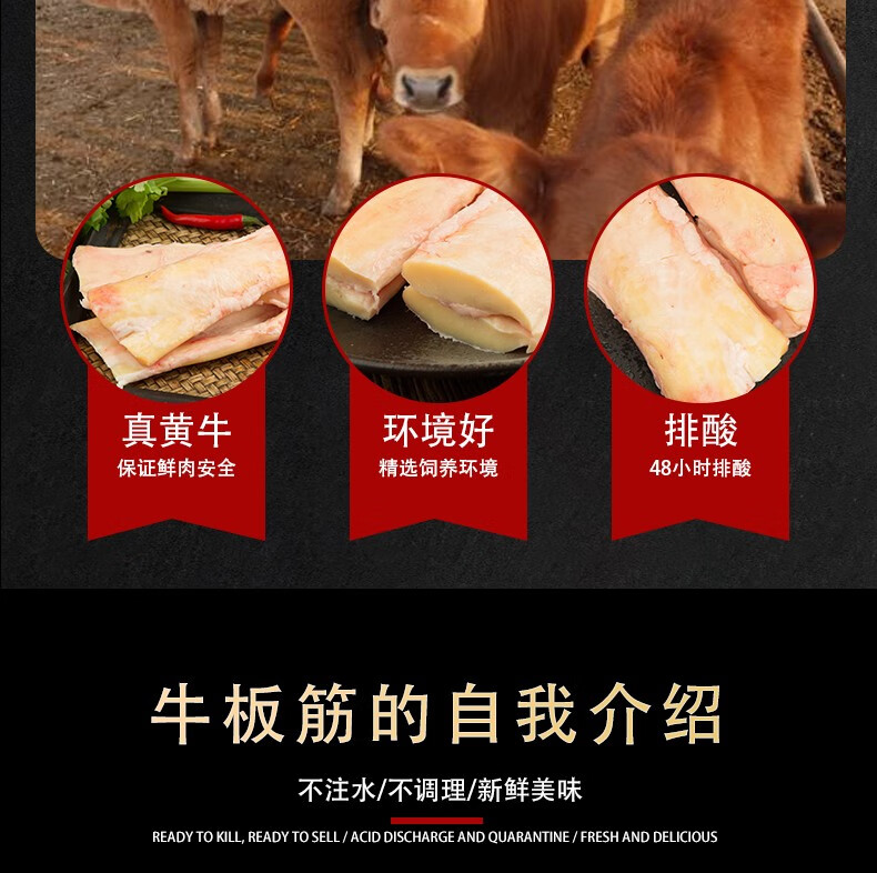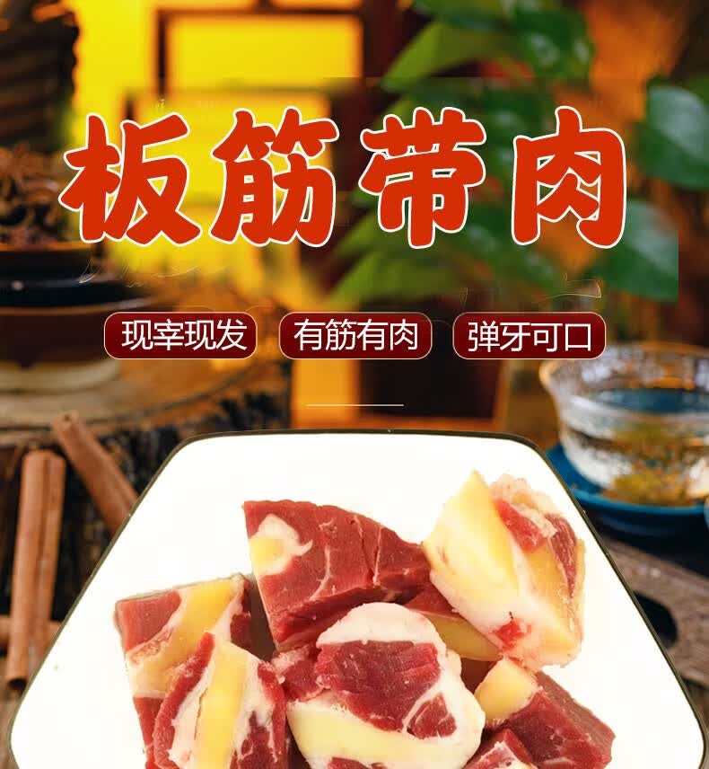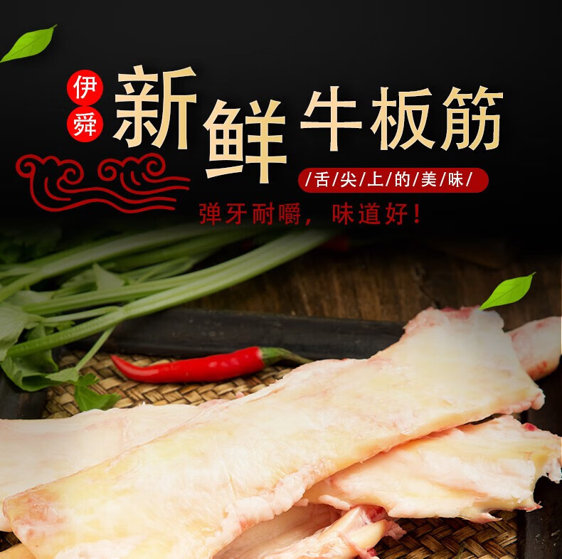 伊舜国产新鲜牛板筋牛大筋牛筋牛肉筋生鲜牛肉筋头巴脑牛杂烧烤食材 板筋带肉2000克