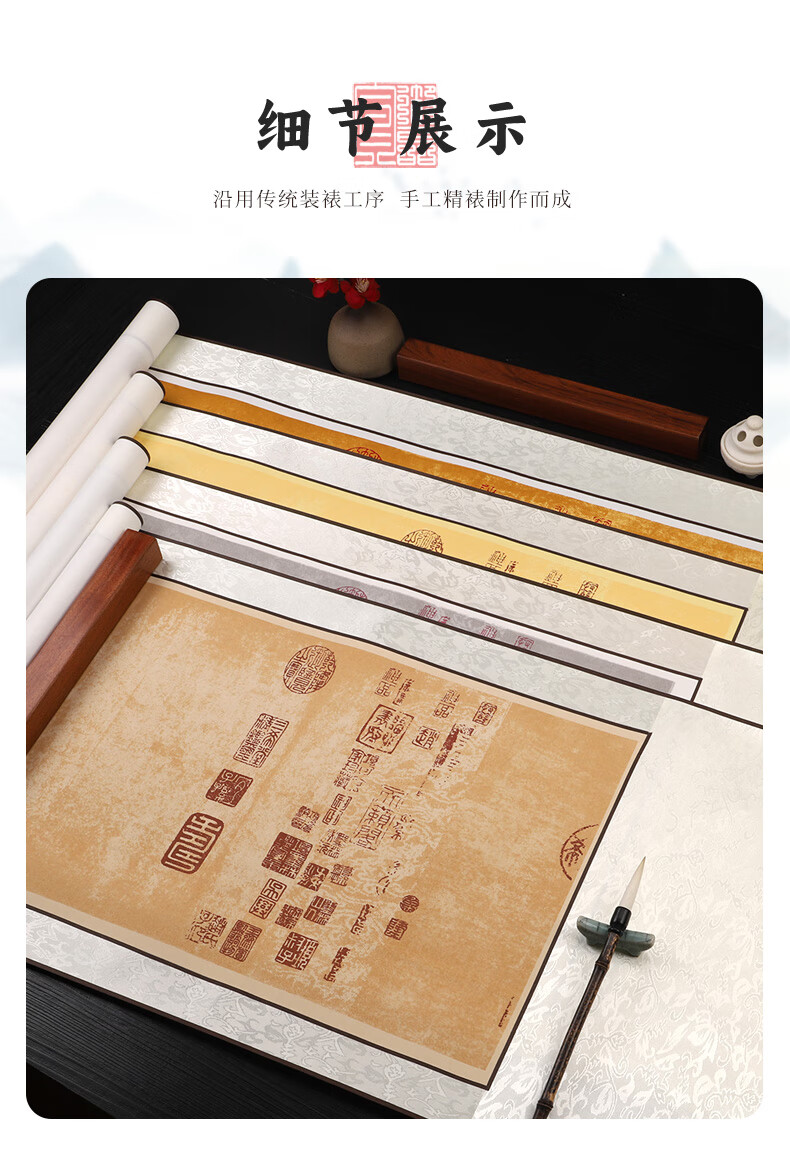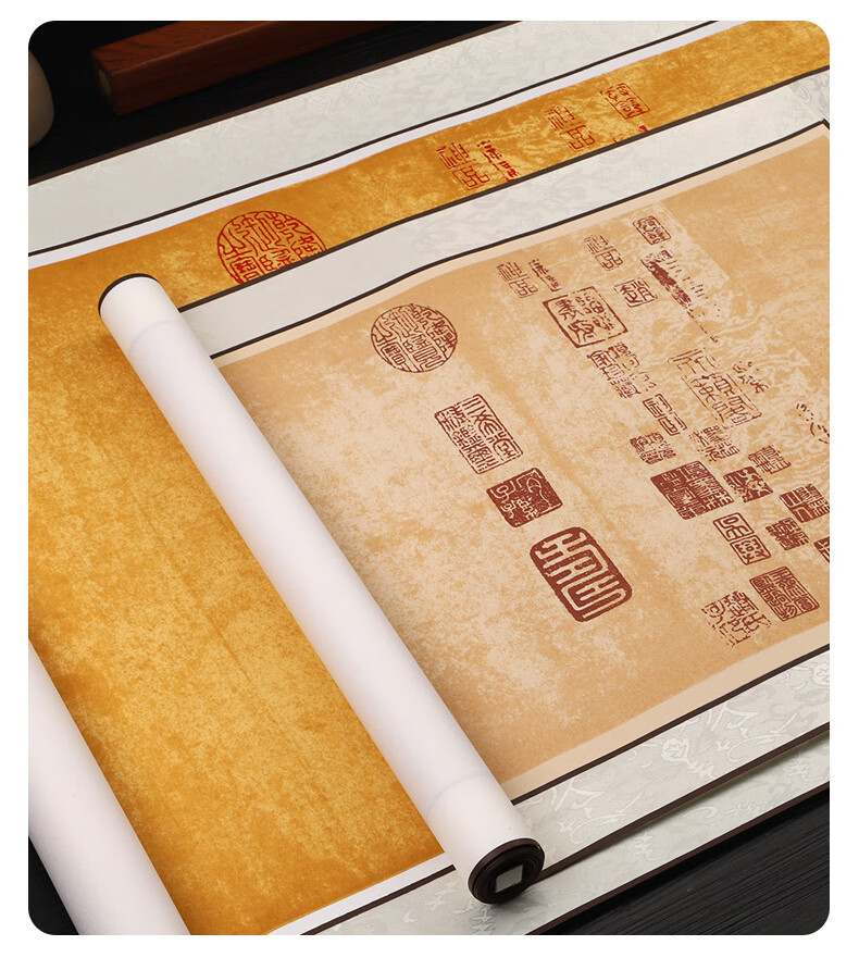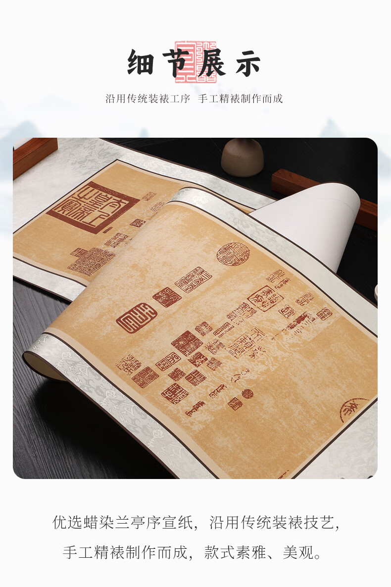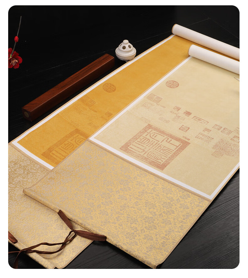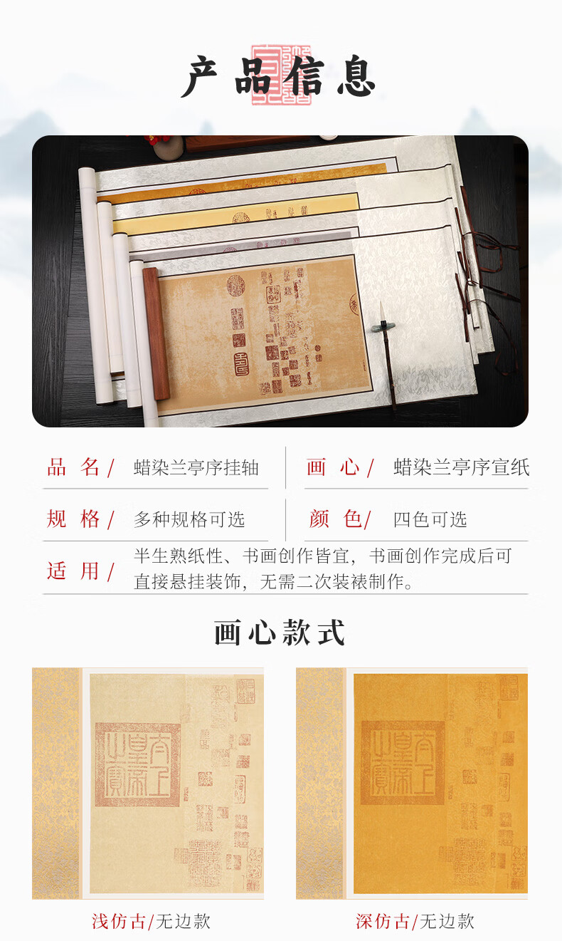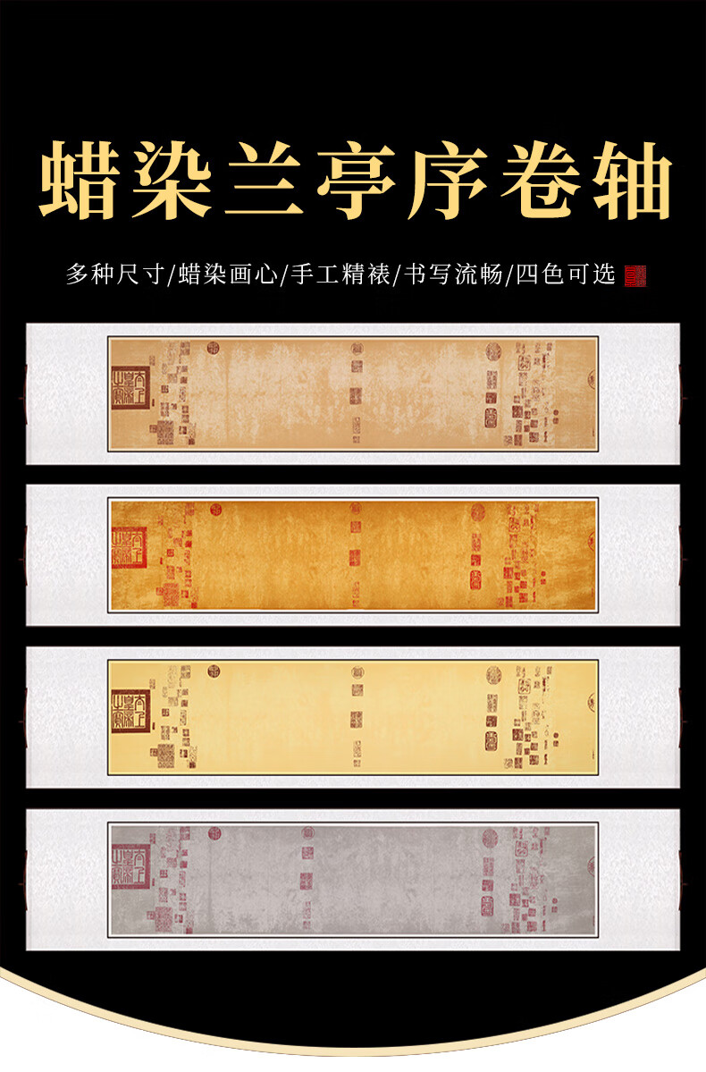 御品宣蜡染兰亭序宣纸画轴横轴挂轴空白创作卷轴半生半熟长卷手卷装裱 米黄色带印章款-六尺对开/精裱款