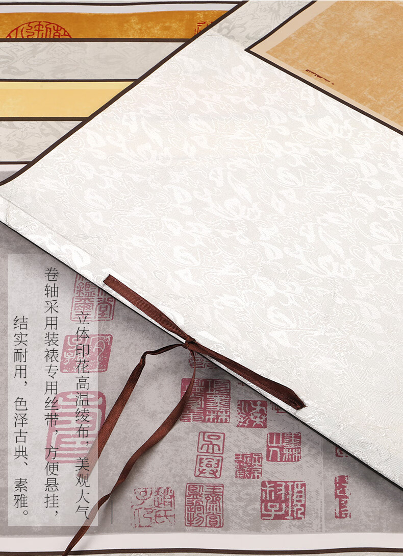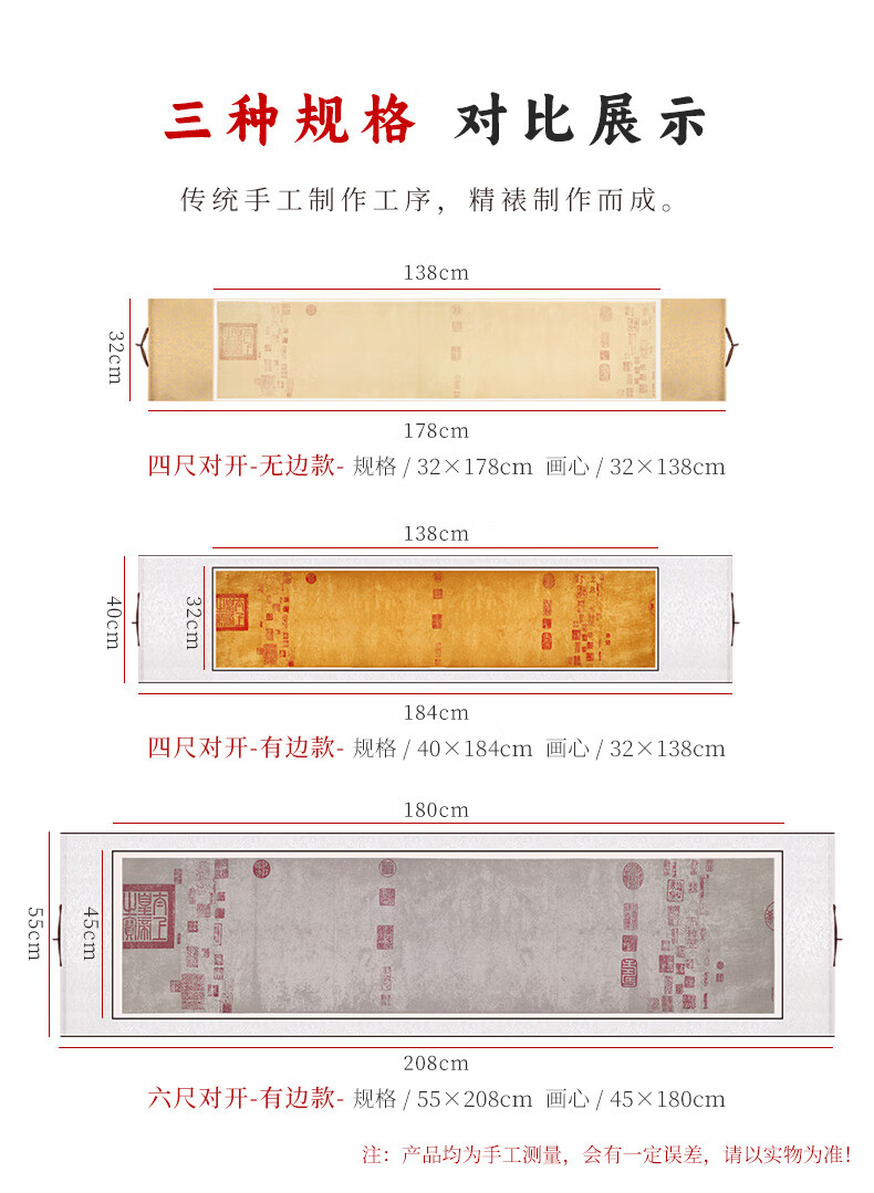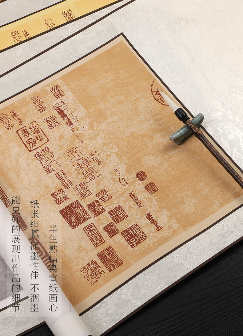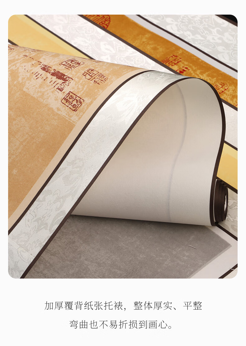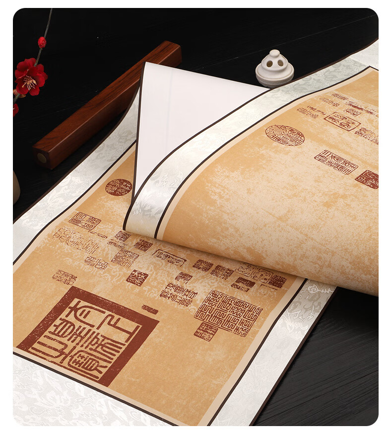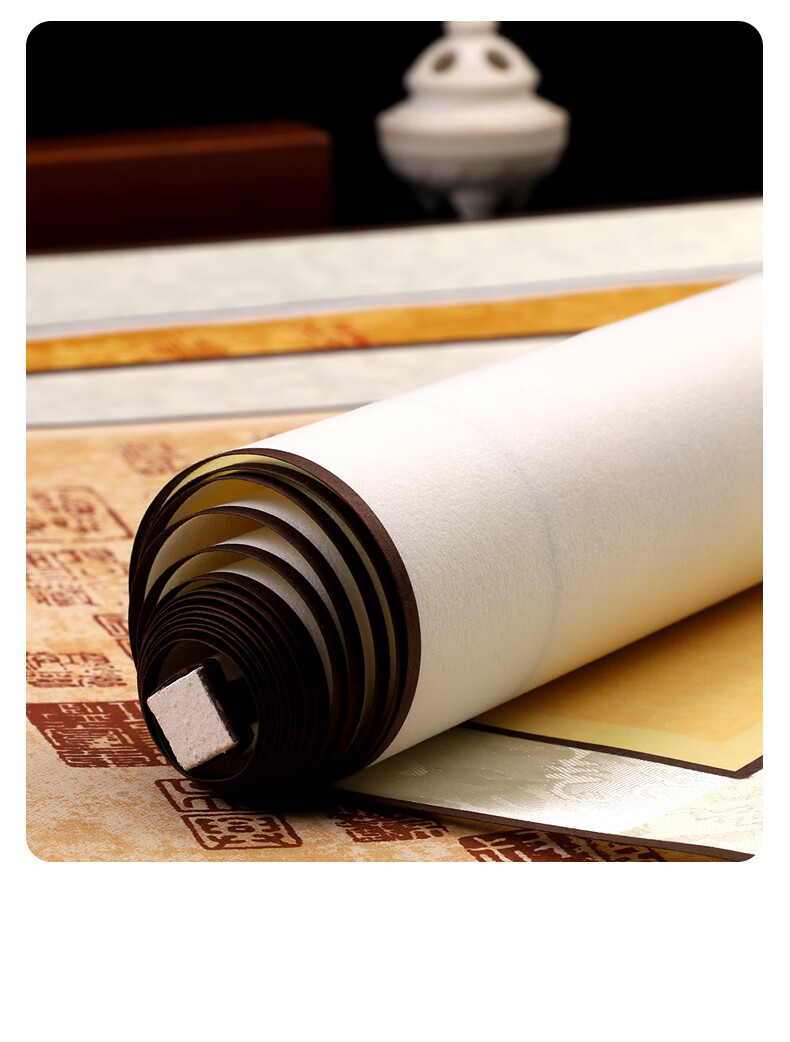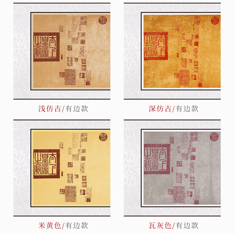 御品宣蜡染兰亭序宣纸画轴横轴挂轴空白创作卷轴半生半熟长卷手卷装裱 米黄色带印章款-六尺对开/精裱款