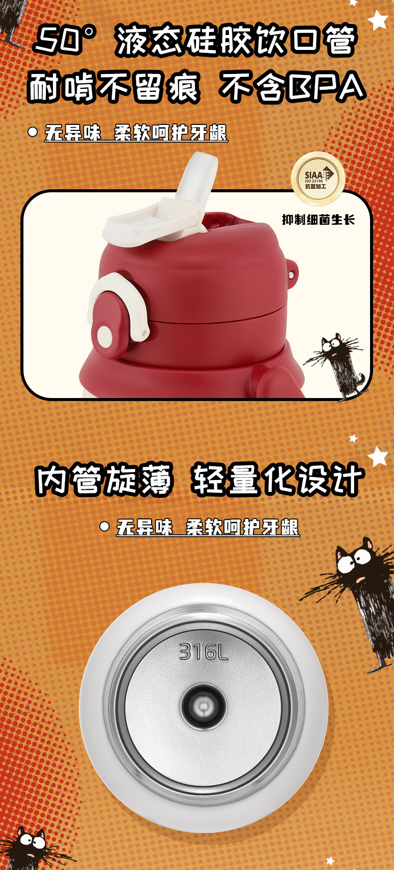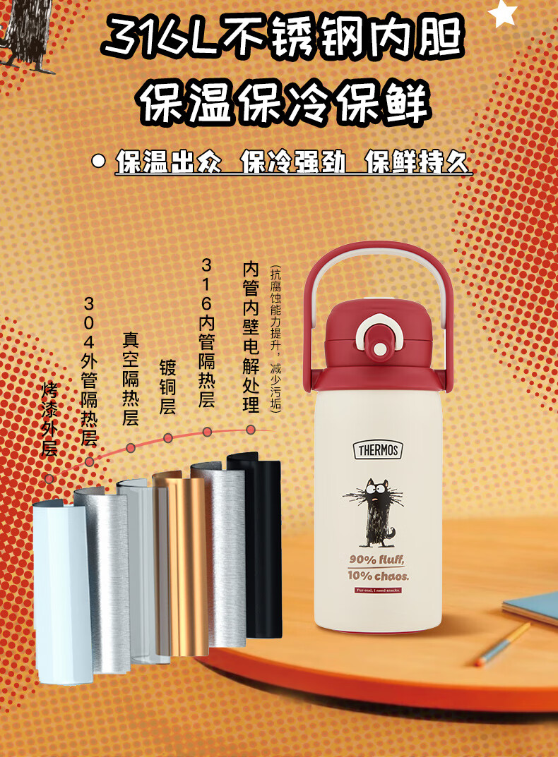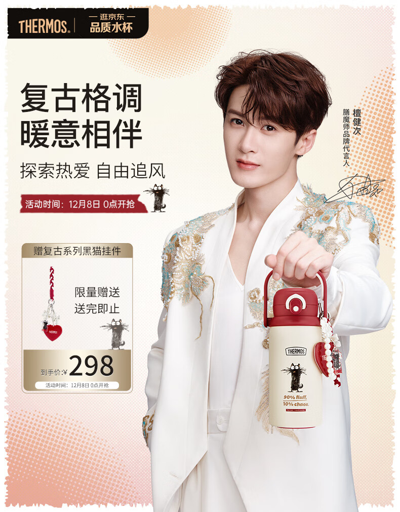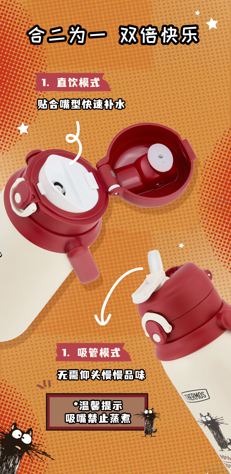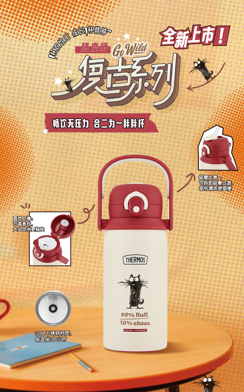 膳魔师(THERMOS)保温杯学生双饮杯吸管直饮杯檀健次同款一盖双用便携水杯TCKN
