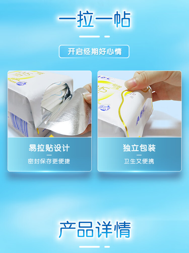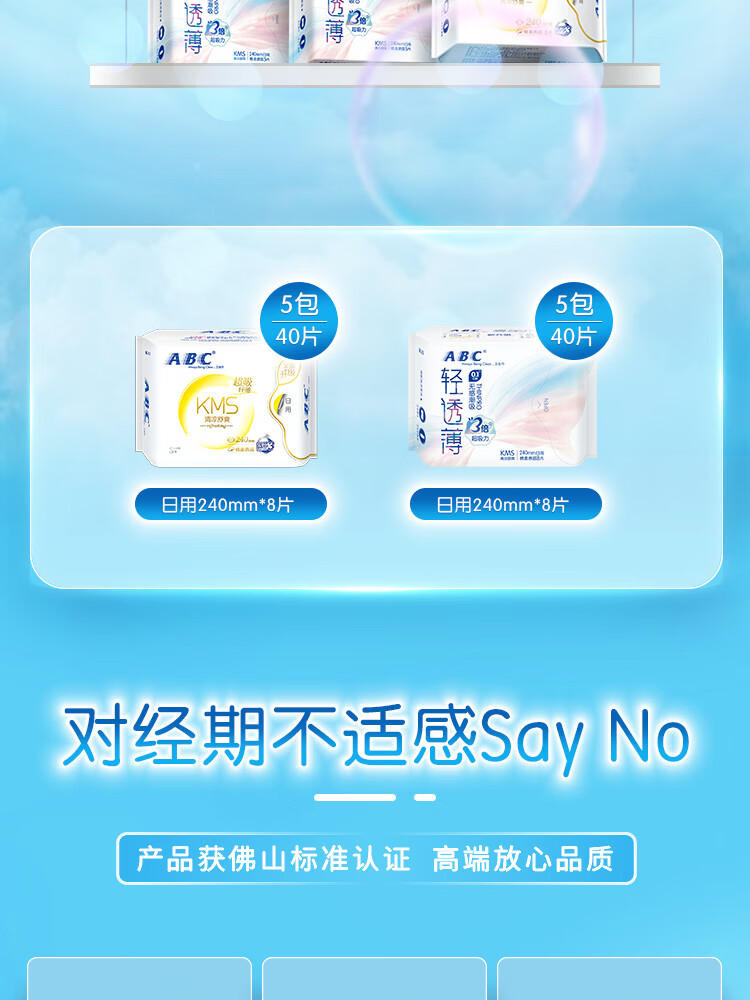 ABCKMS纤薄健康配方超薄透气日用卫生巾套装京东自营10包80片