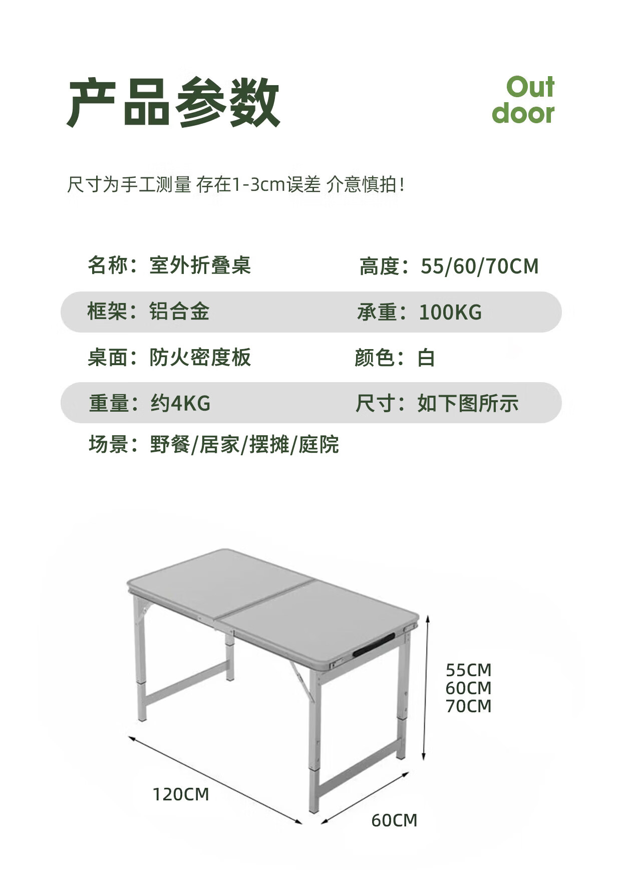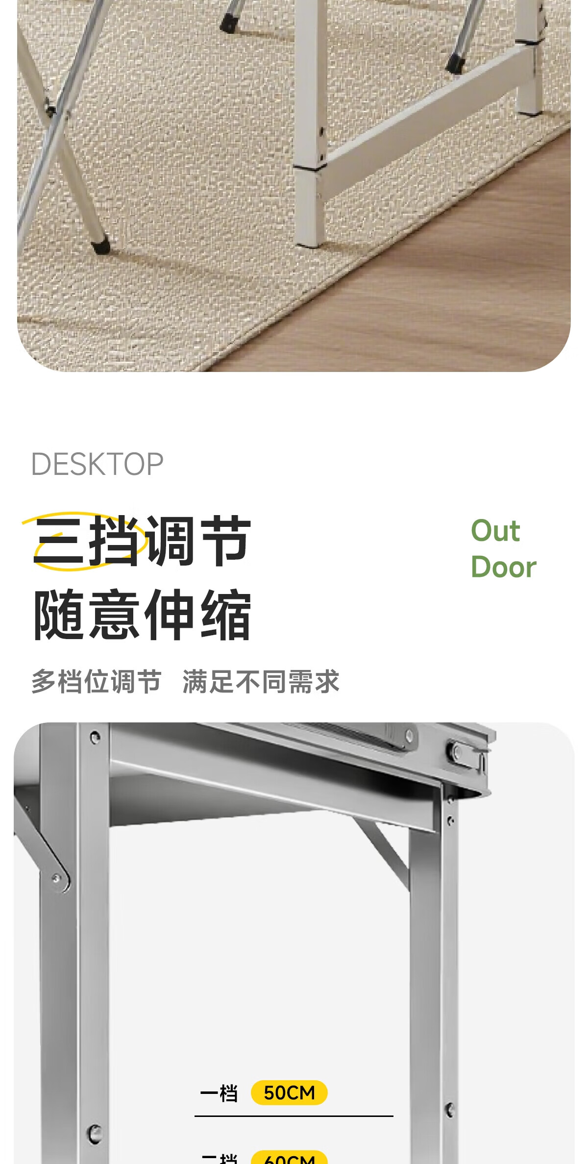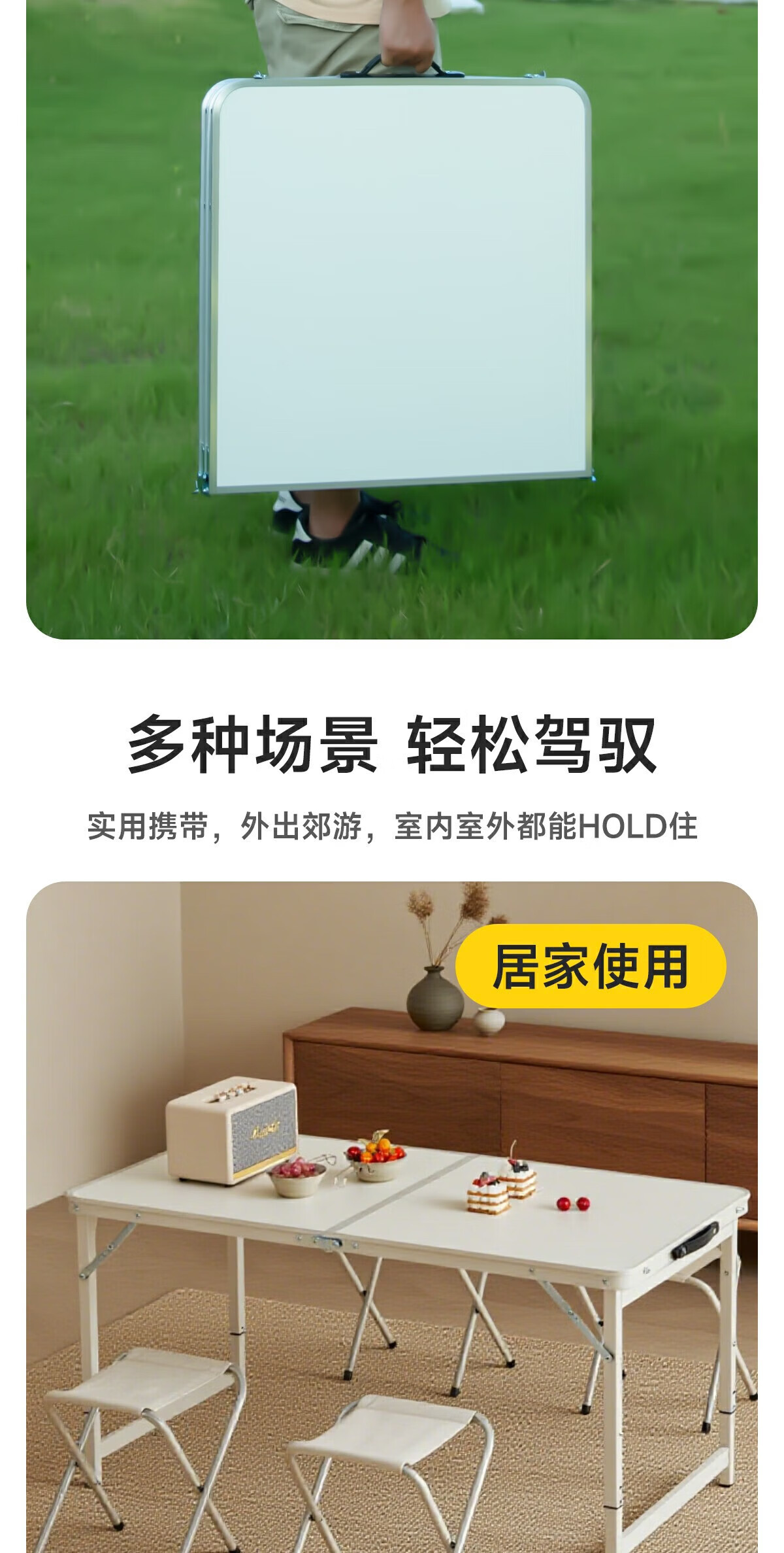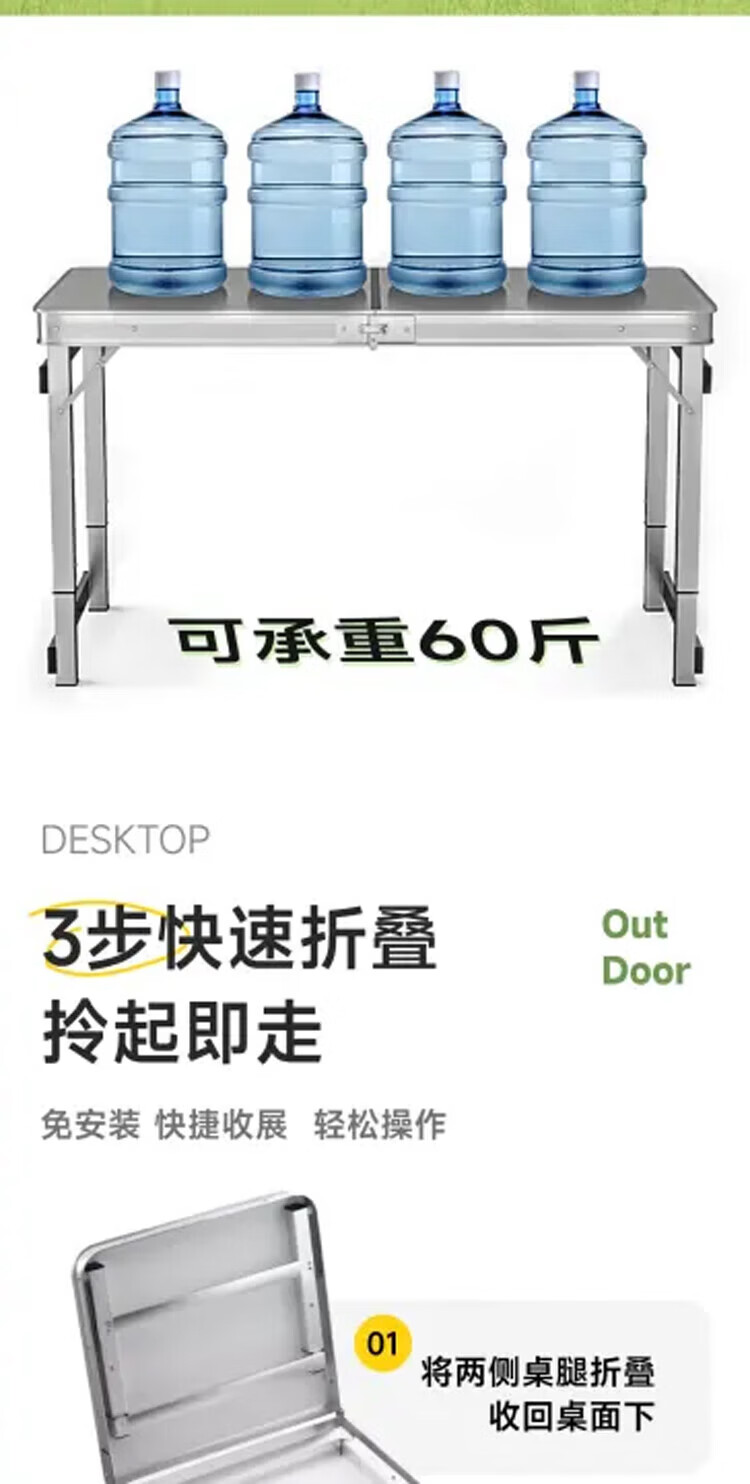 gosoo折叠桌户外便携摆摊铝合金露营桌子广告培训桌加固可升降1.2米
