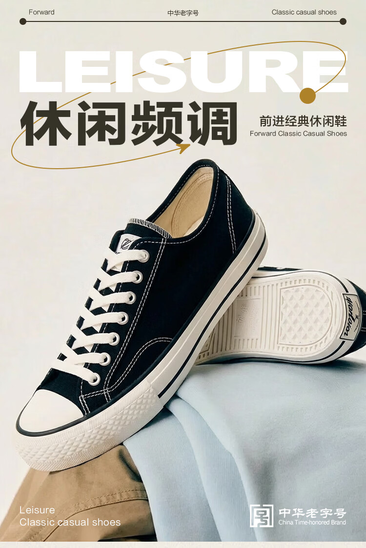 前进经典复古时尚潮流帆布鞋透气防滑耐磨2026新款 黑色 42