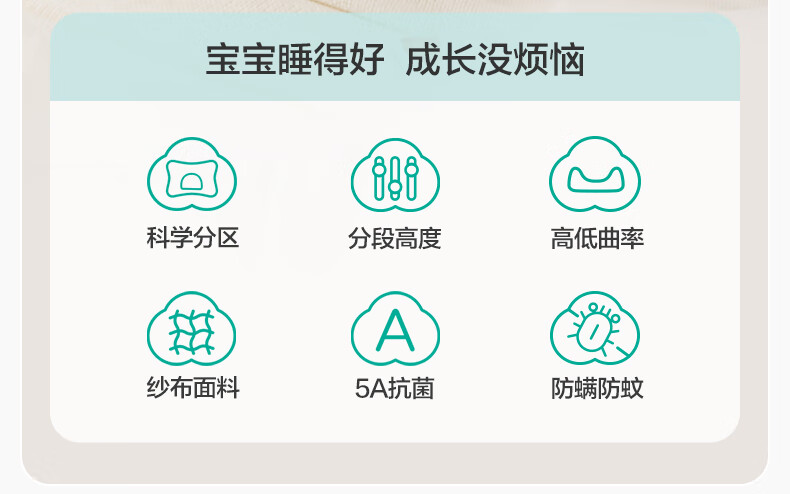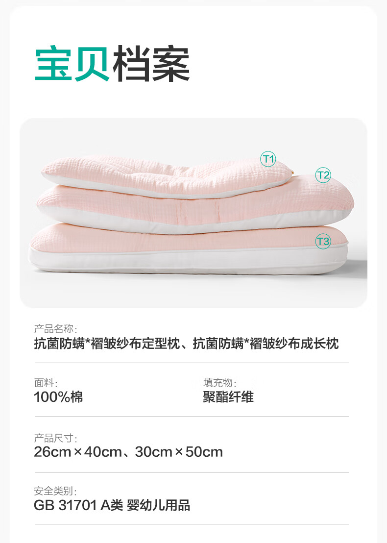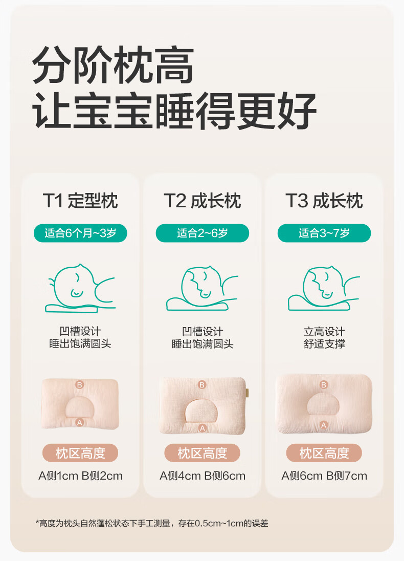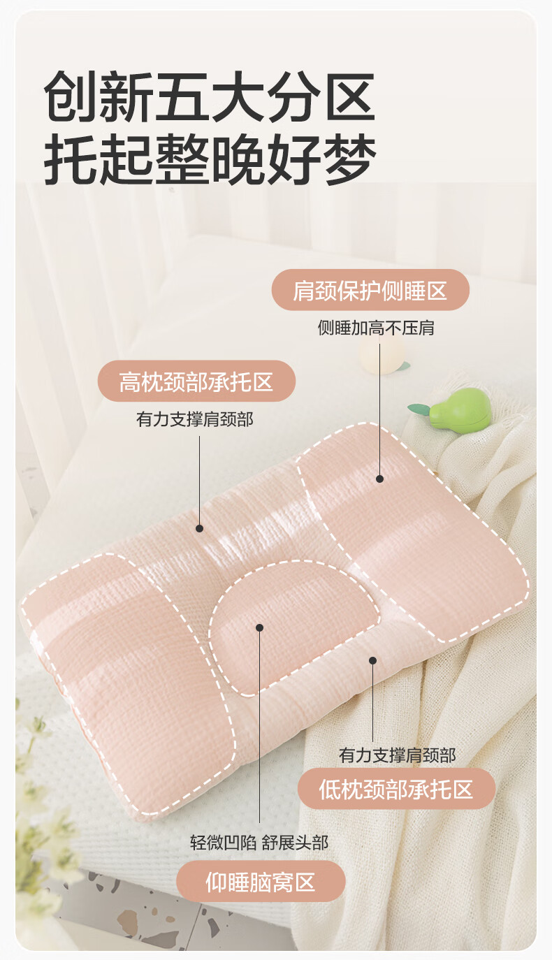 全棉时代婴儿定型枕6个月-3岁新生儿宝宝抗菌防螨护颈枕矫正头型儿童枕头