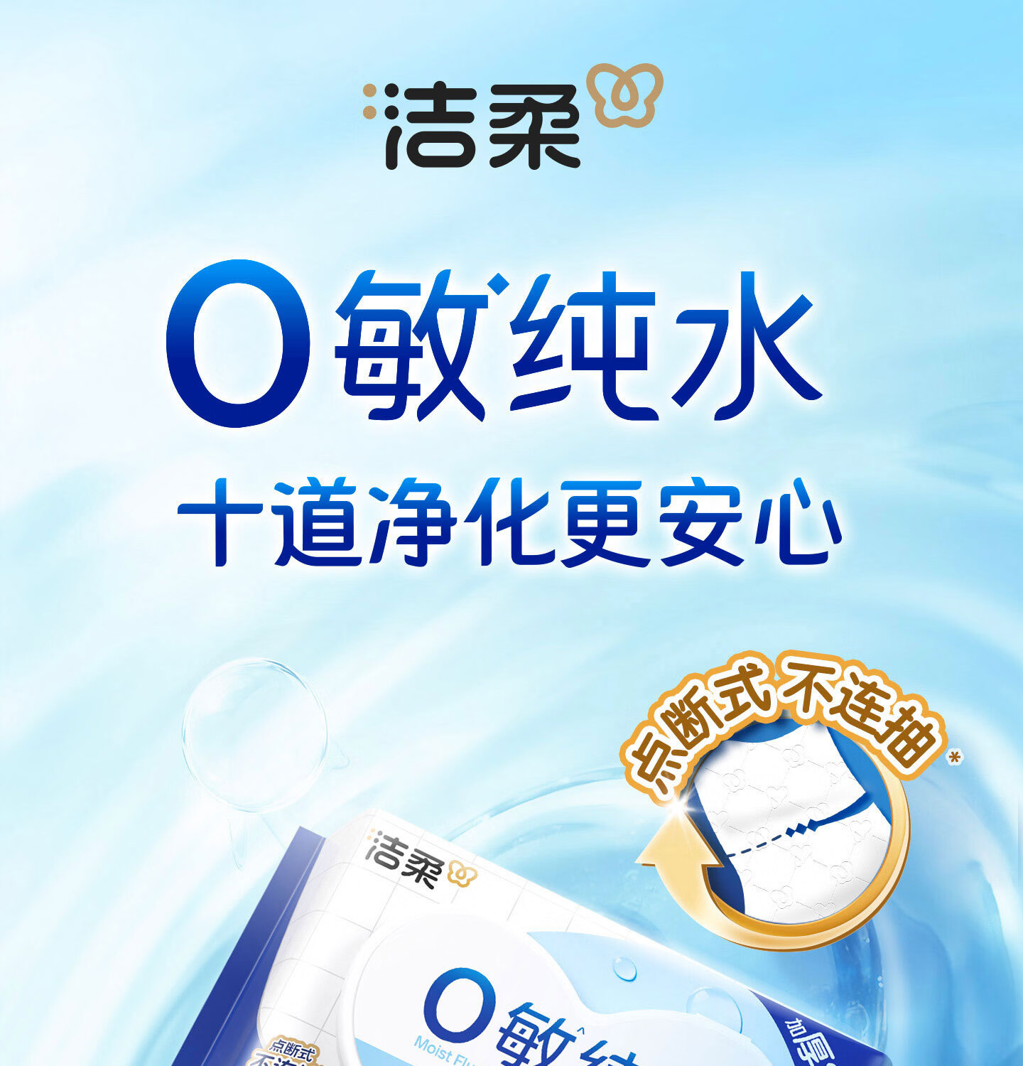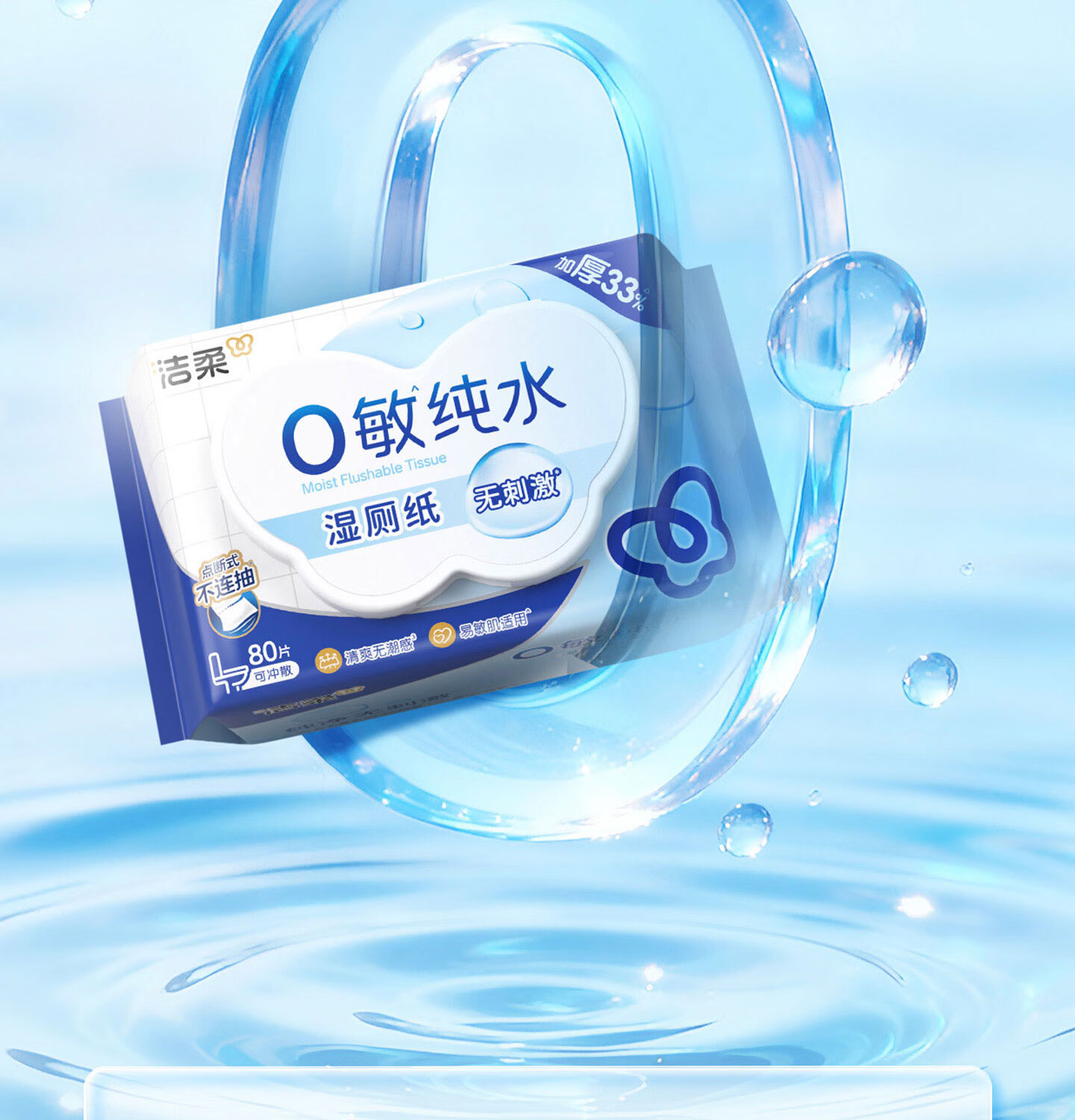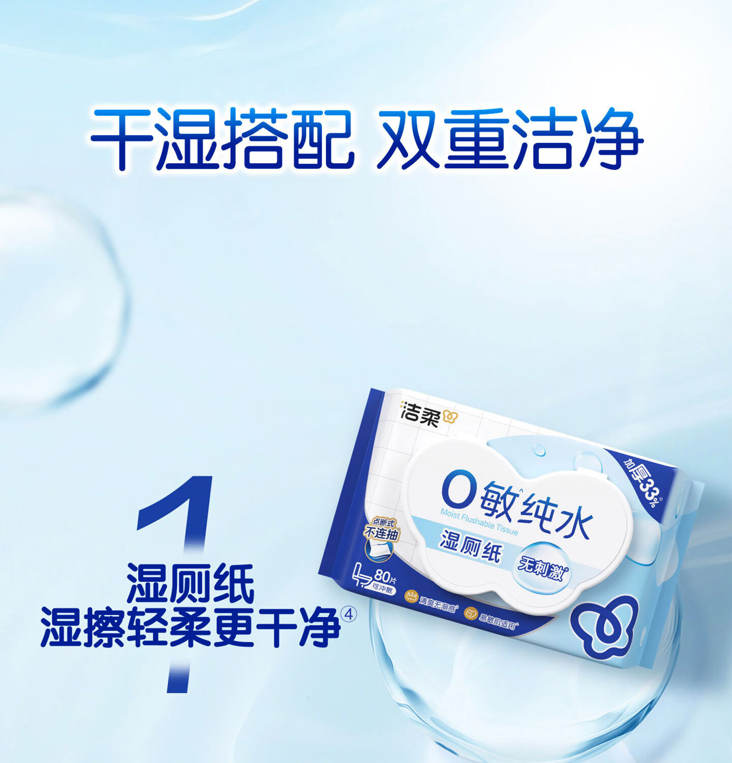 洁柔湿厕纸0敏纯水80抽湿巾纸湿厕亲肤清爽速干加大加厚配卷纸