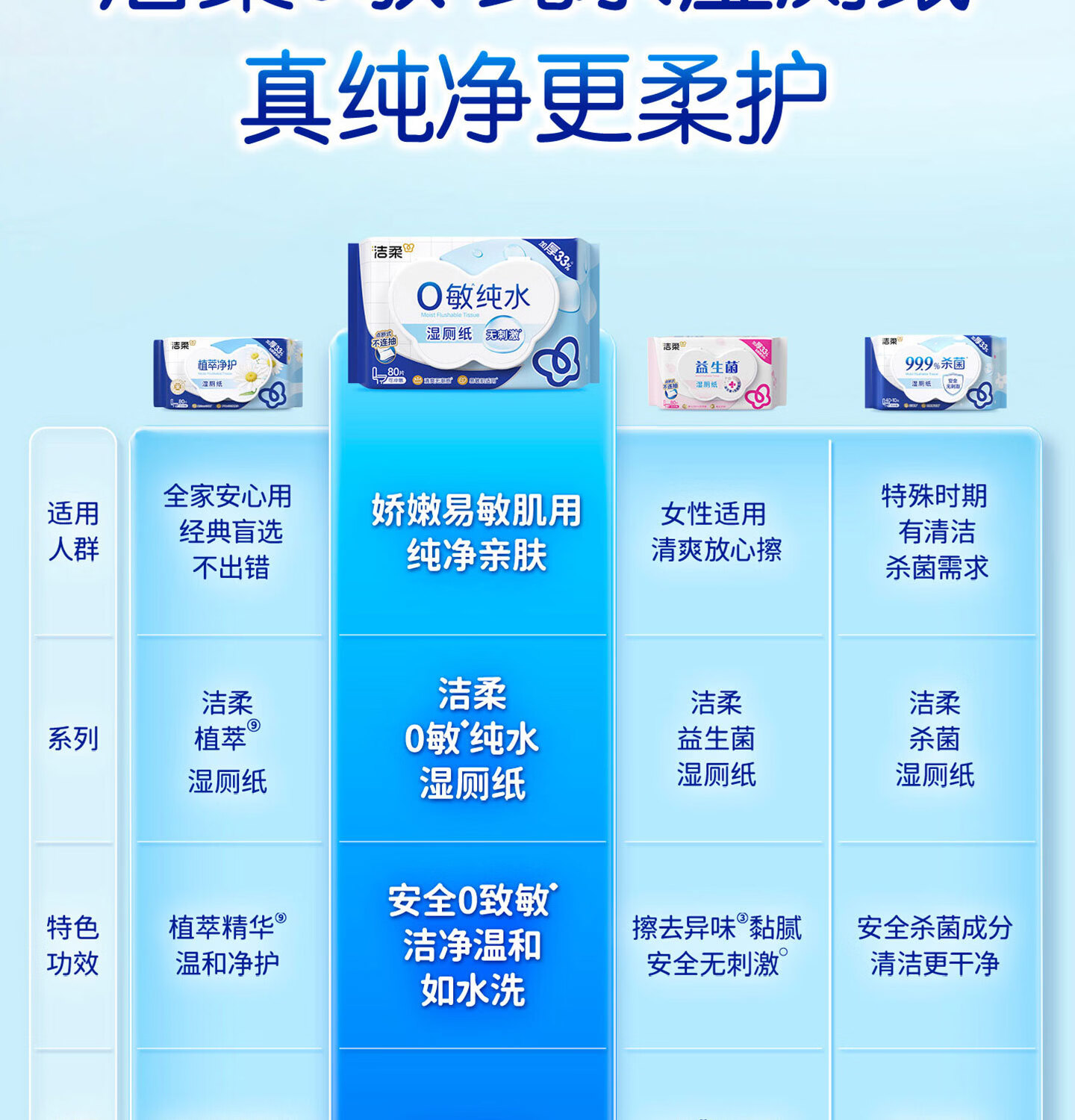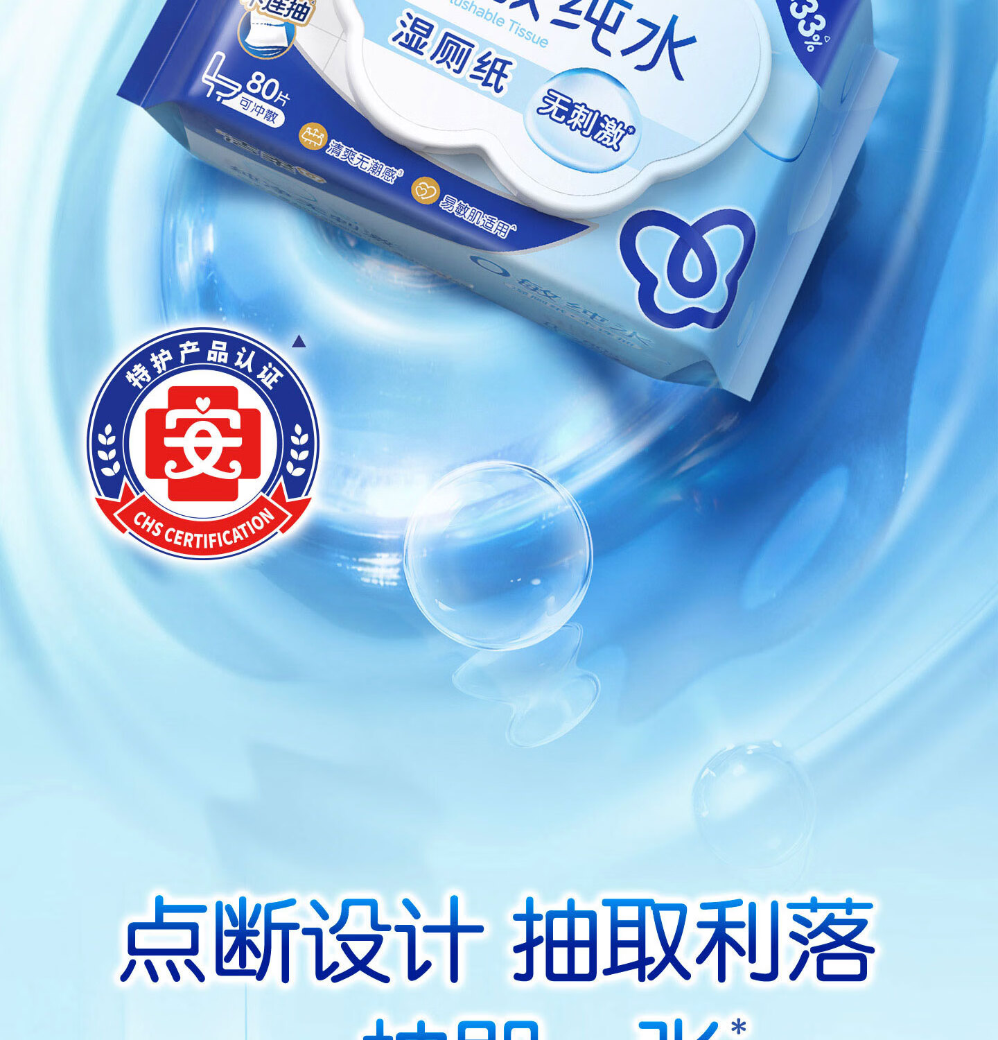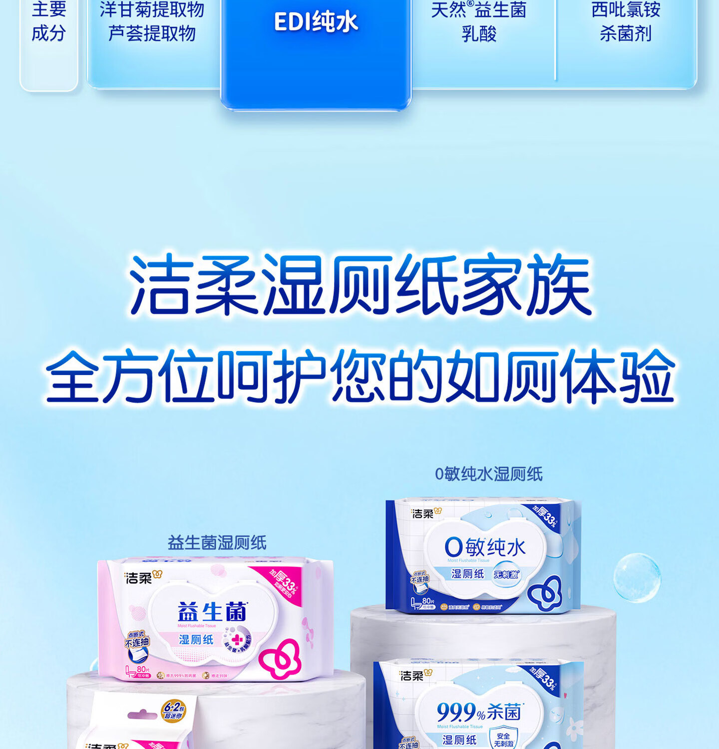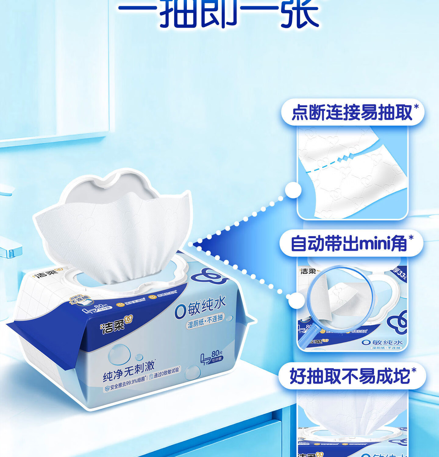 洁柔湿厕纸0敏纯水80抽湿巾纸湿厕亲肤清爽速干加大加厚配卷纸