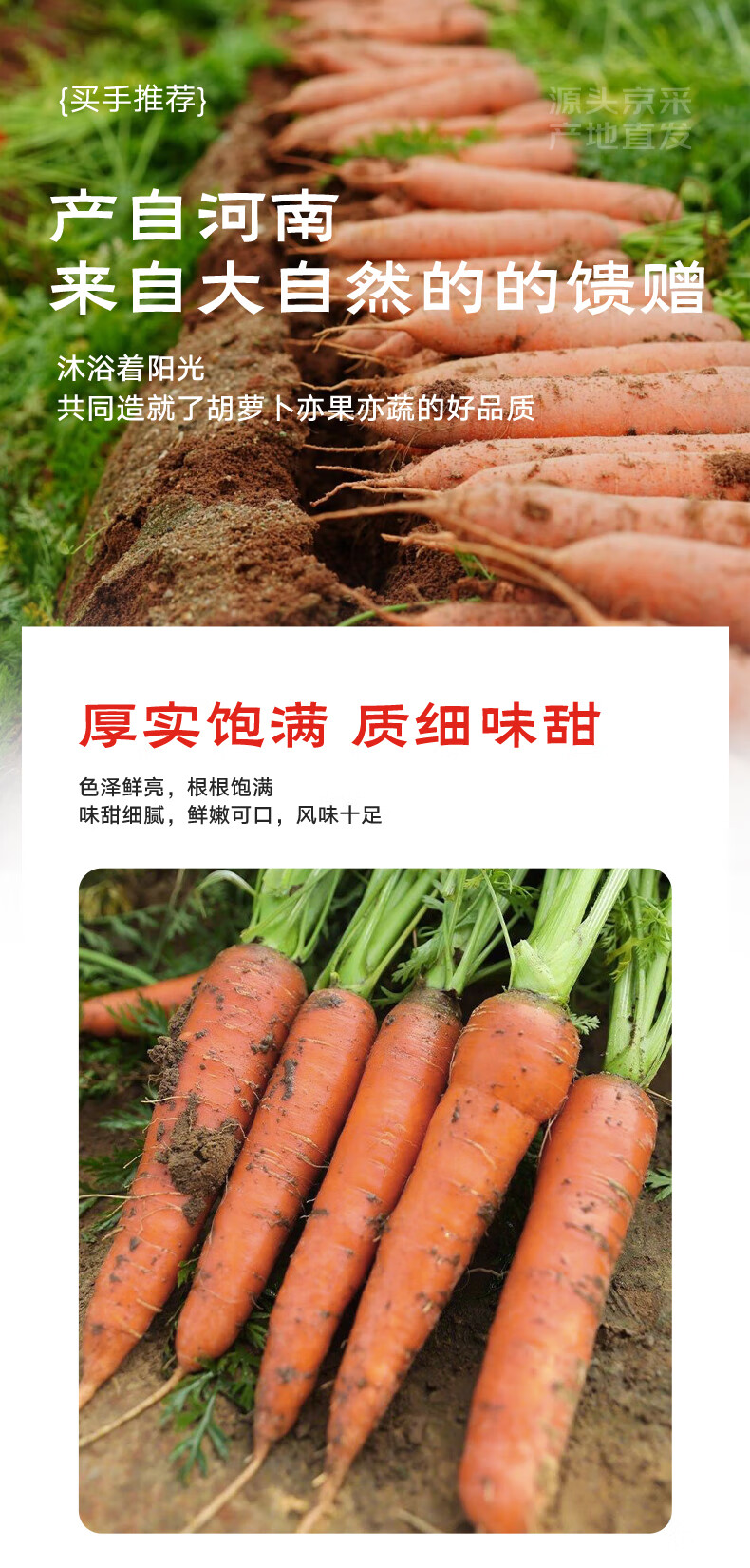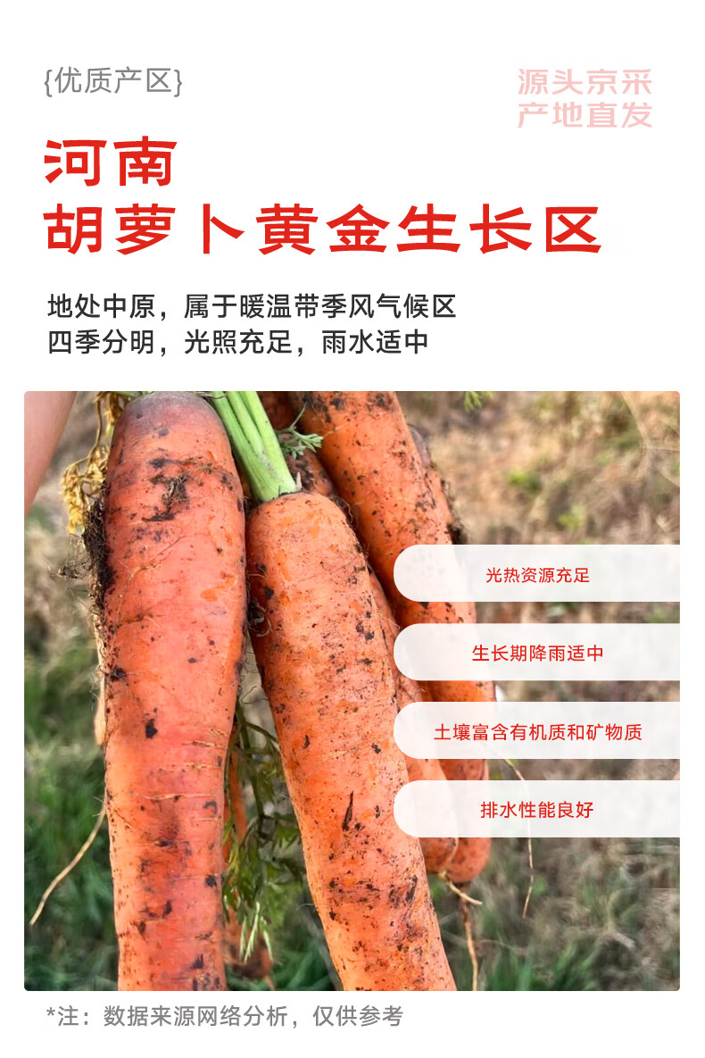 京鲜生山东新鲜带泥胡萝卜 净重3斤 单果100g+ 源头直发