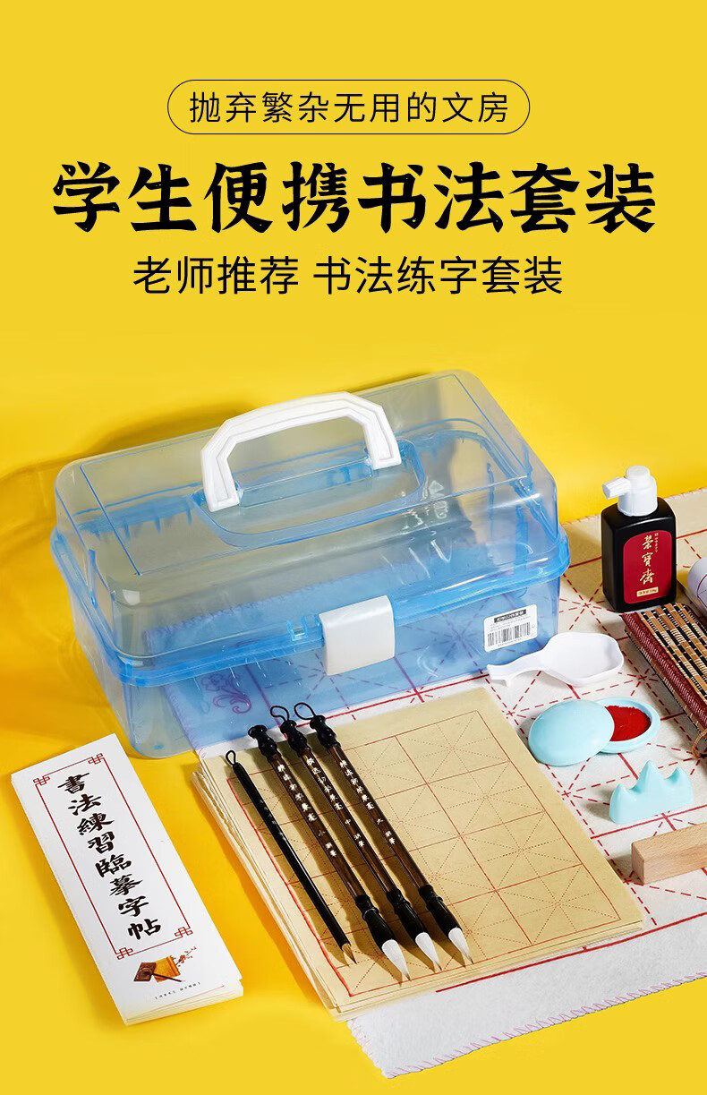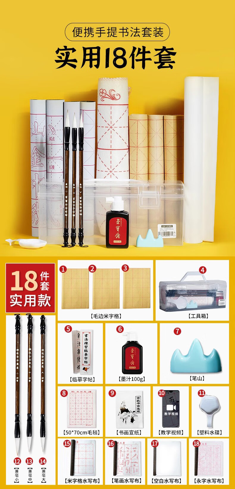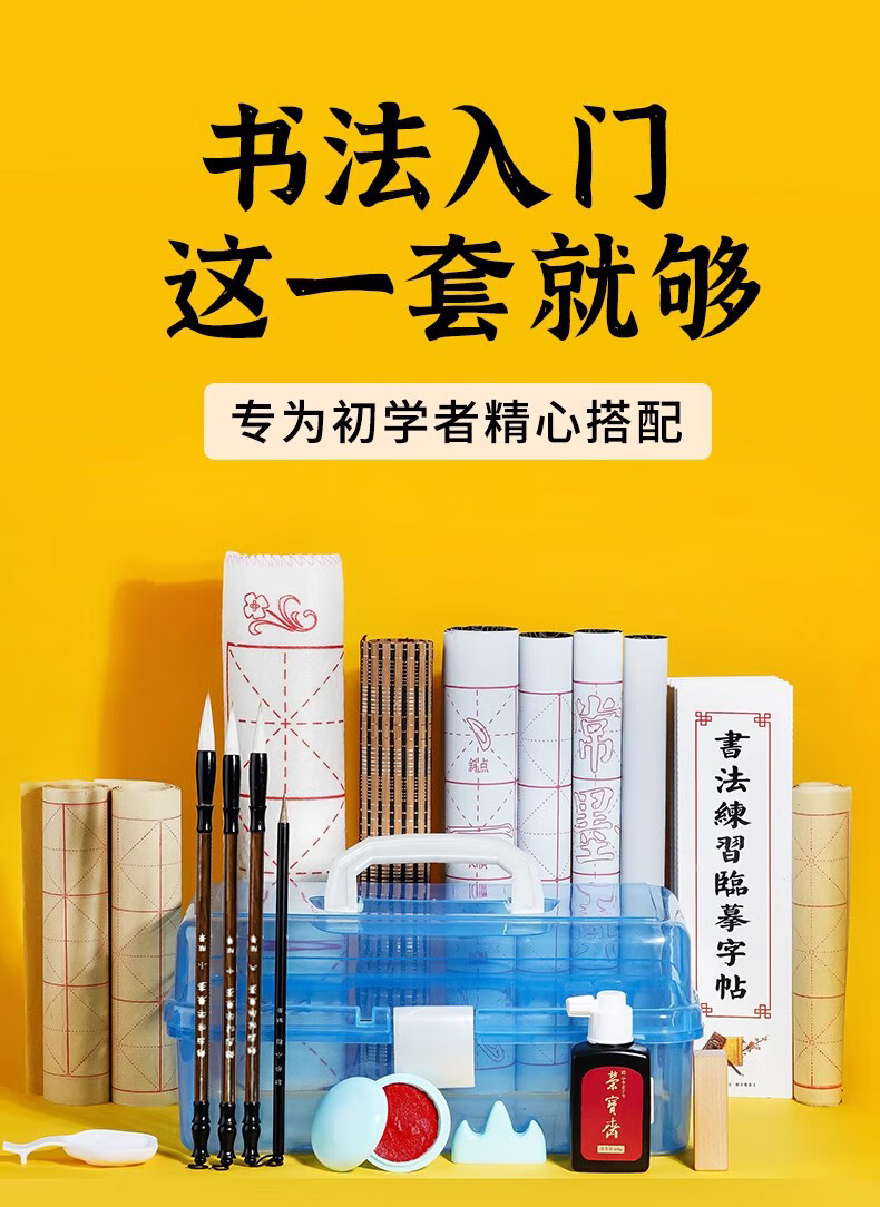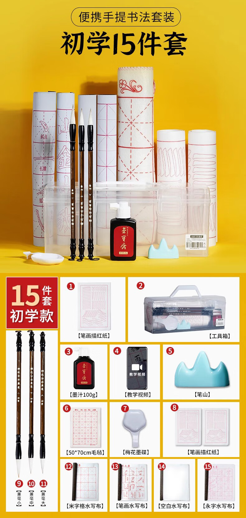 荣宝斋 毛笔套装软笔书法水写布入门儿童小学生练字初学者墨纸砚文房四宝 (入门实用)15件套 (实用推荐)18件套