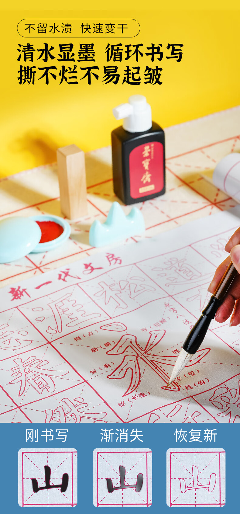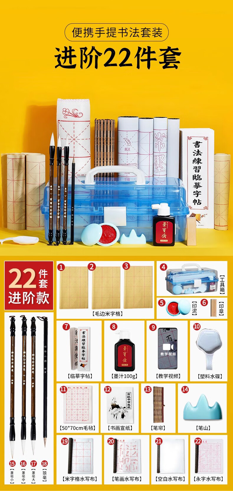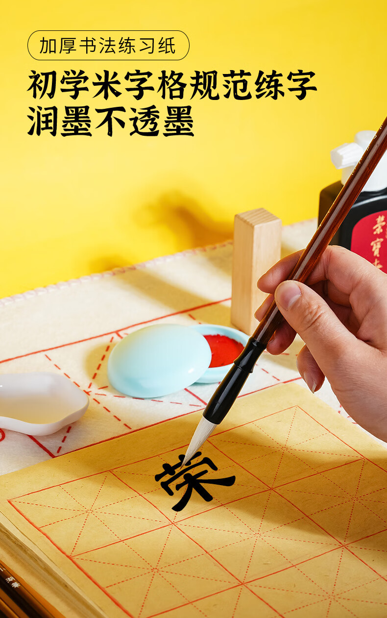 荣宝斋 毛笔套装软笔书法水写布入门儿童小学生练字初学者墨纸砚文房四宝 (入门实用)15件套 (实用推荐)18件套