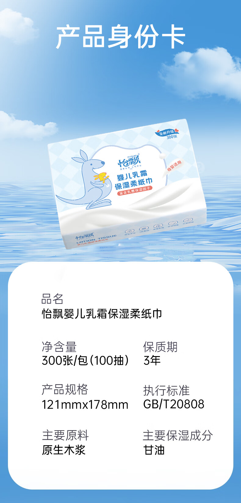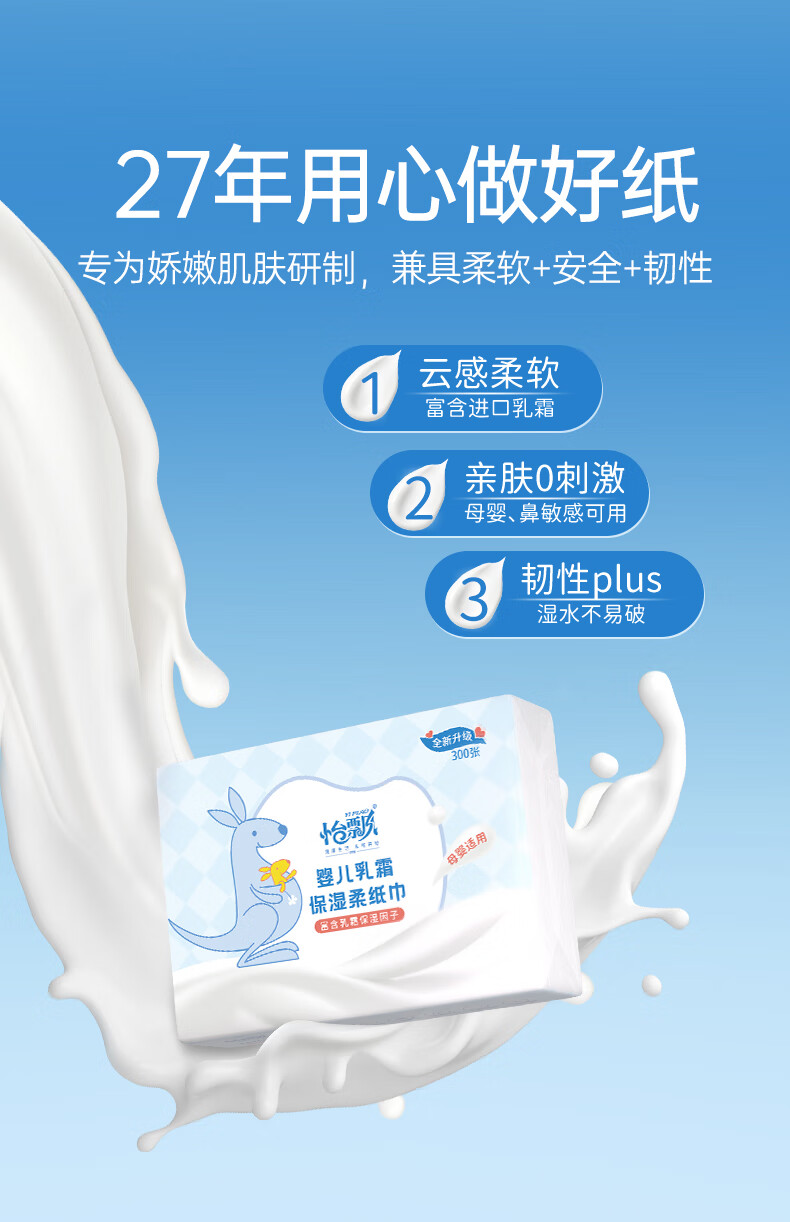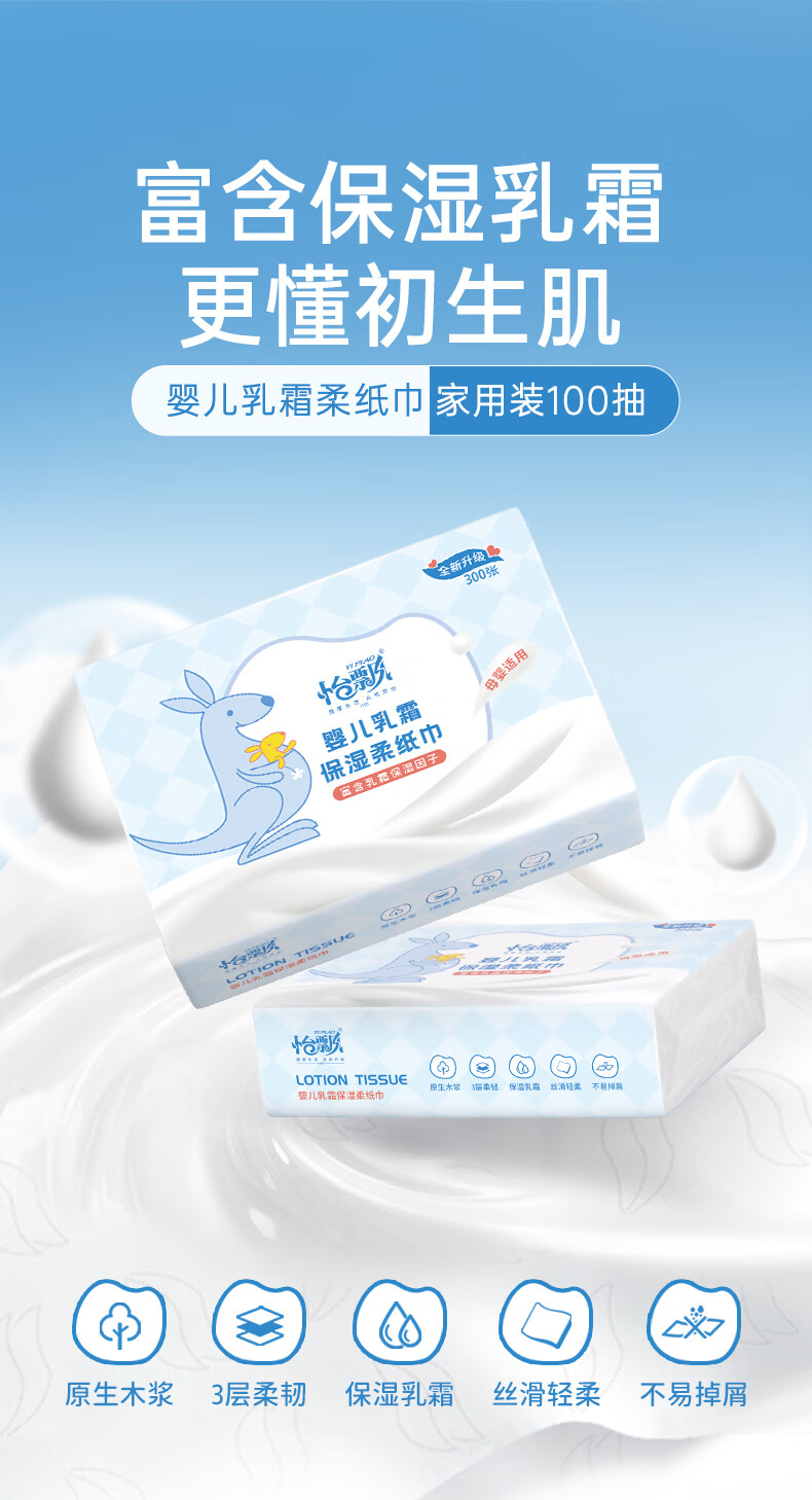 【300张/包】怡漂宝宝乳霜纸抽纸 3层100抽保湿抽纸鼻炎云柔巾 家庭装 3层 100抽*4包