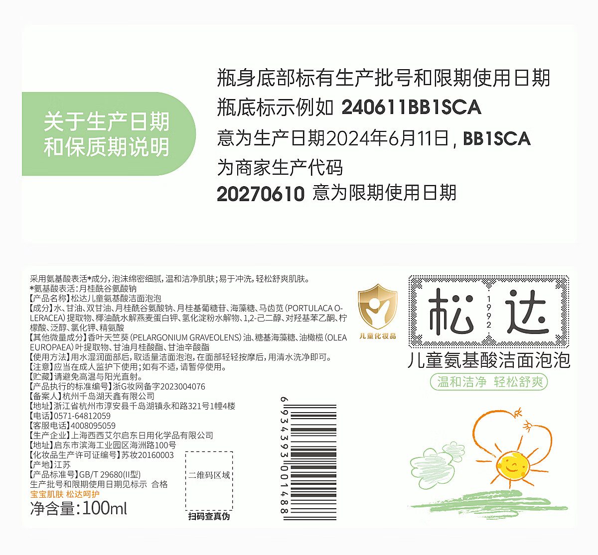 松达氨基酸洁面泡泡儿童洗面奶男女孩3-6-12岁宝宝补水保湿洁面清润泡 【热销推荐】洁面泡泡100ml