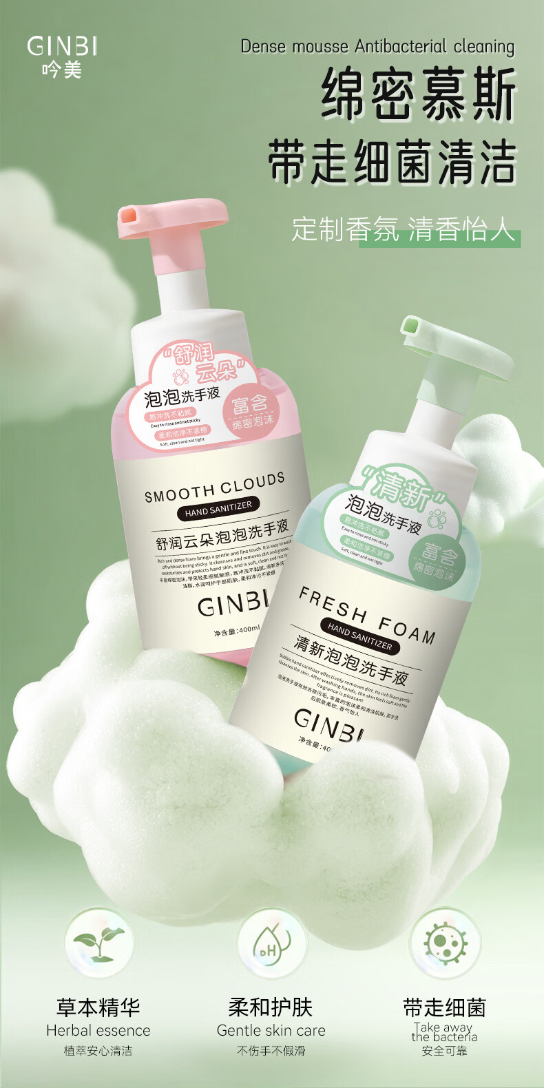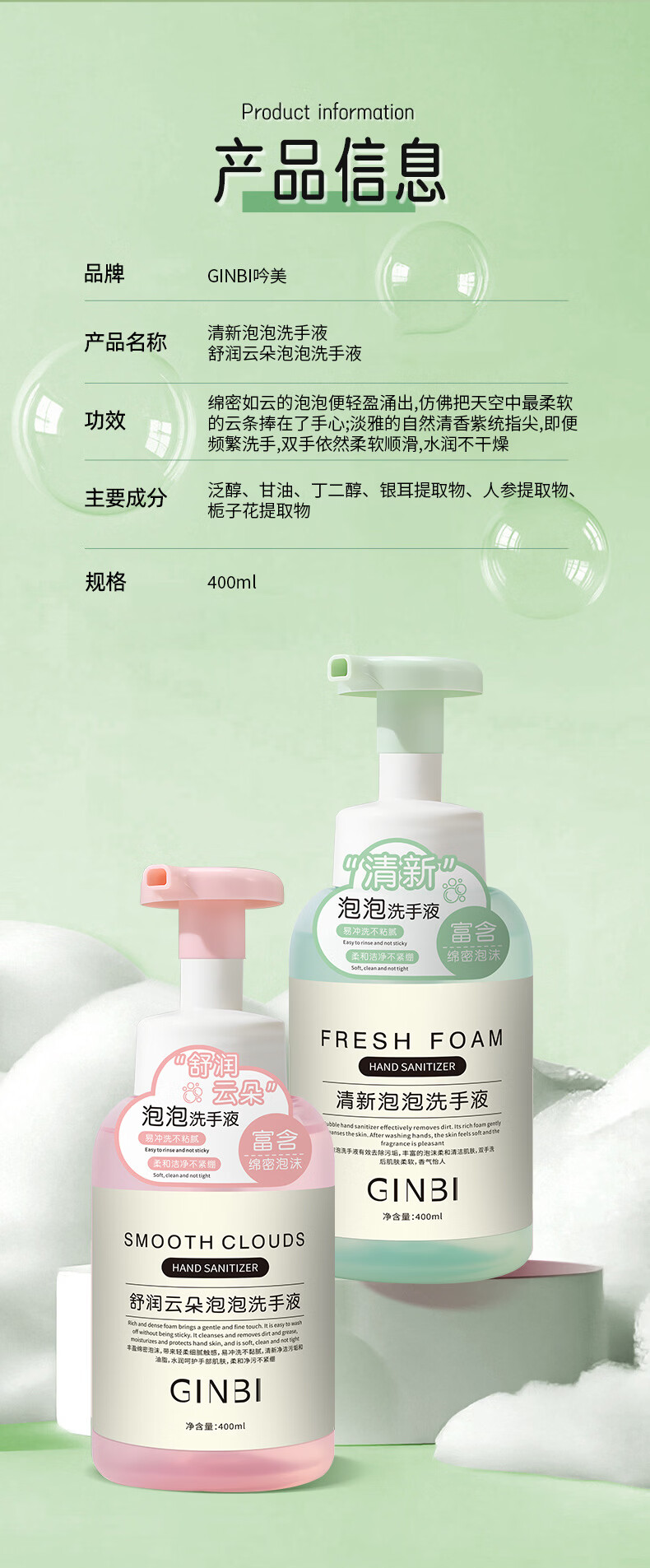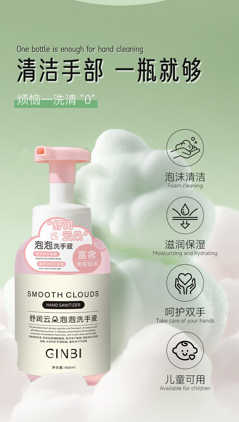 吟美泡泡洗手液实惠装400ml清洁污垢护手滋润持久留香嫩滑洁净家用 舒润云朵泡泡洗手液400x1瓶