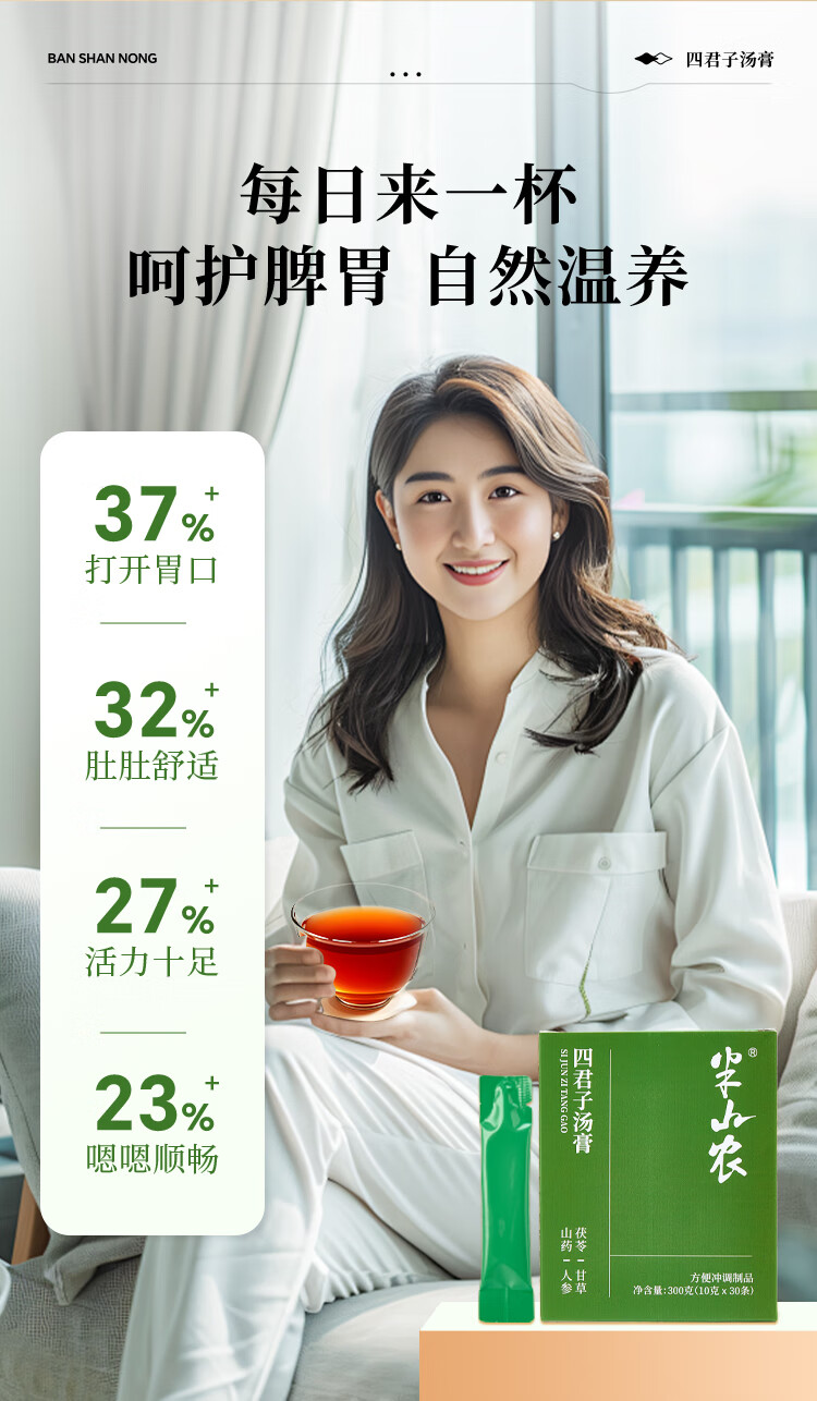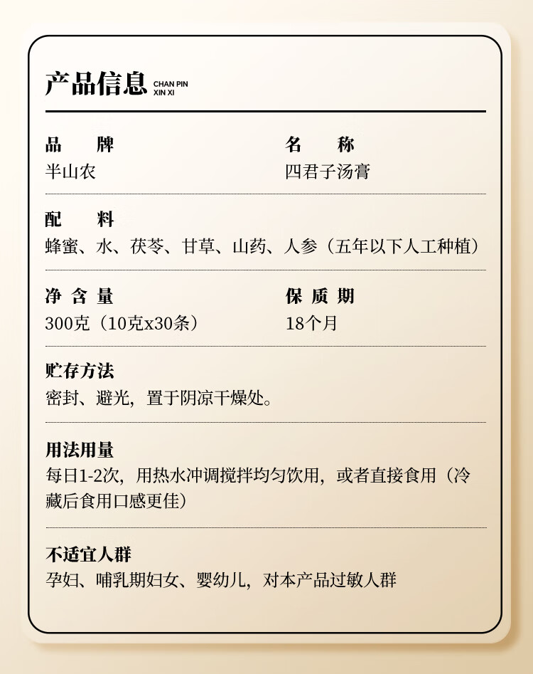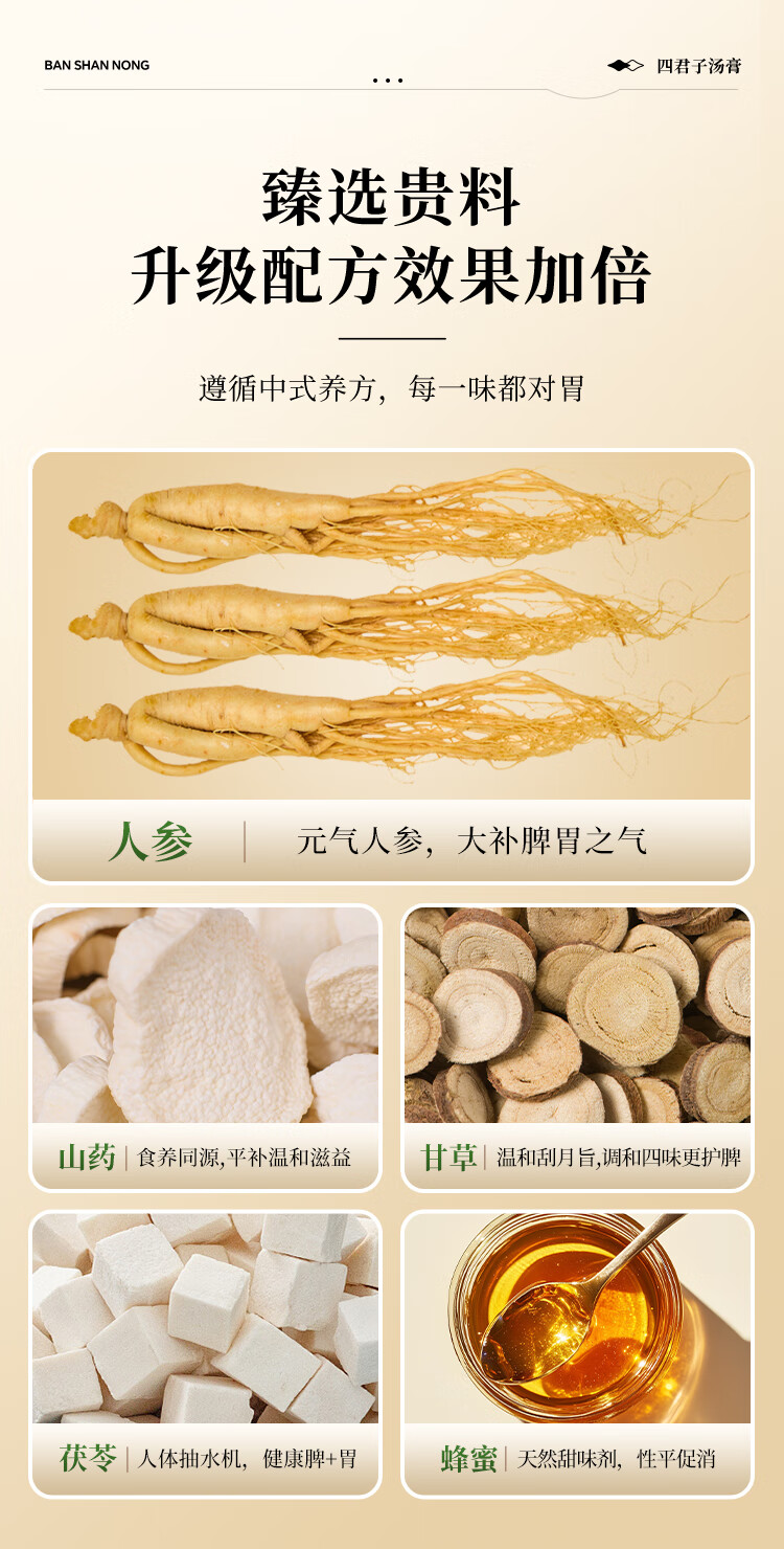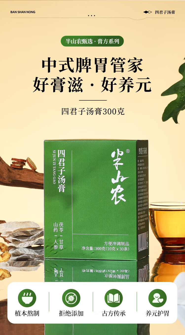 半山农 四君子汤膏300g 茯苓甘草山药人参中药材儿童成人脾胃湿气独立袋