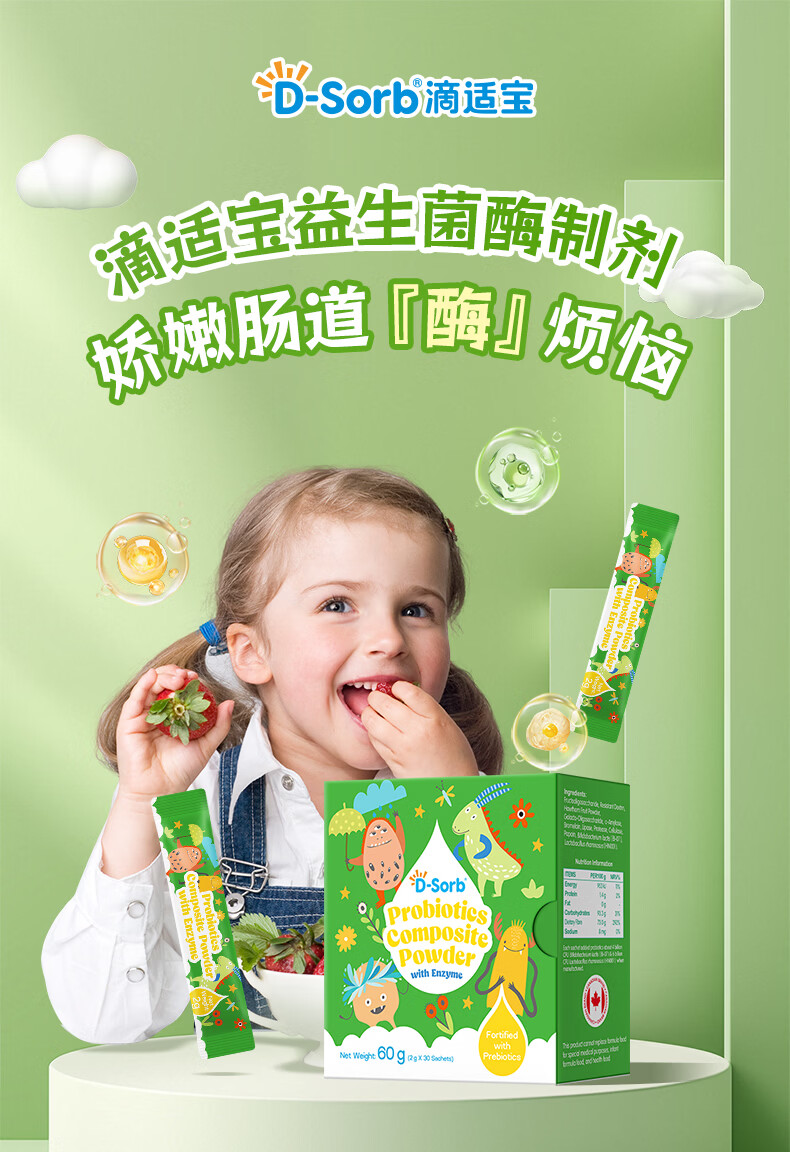 D-Sorb综合消化酶益生菌酶制剂益生元蛋白酶消化酶新西兰原装进口 消化酶 30条*1盒