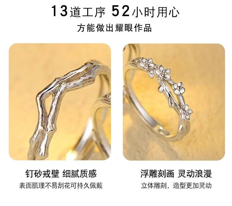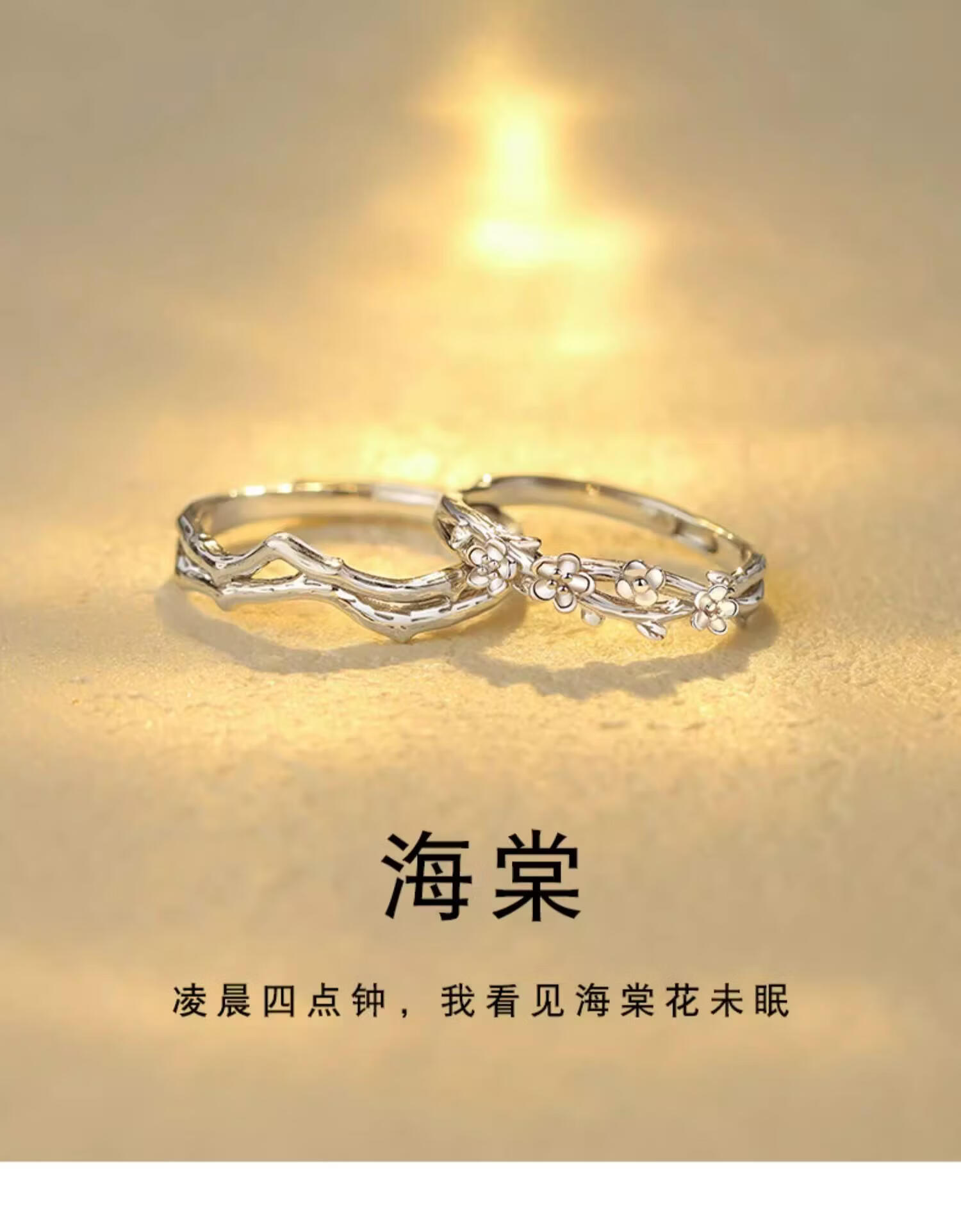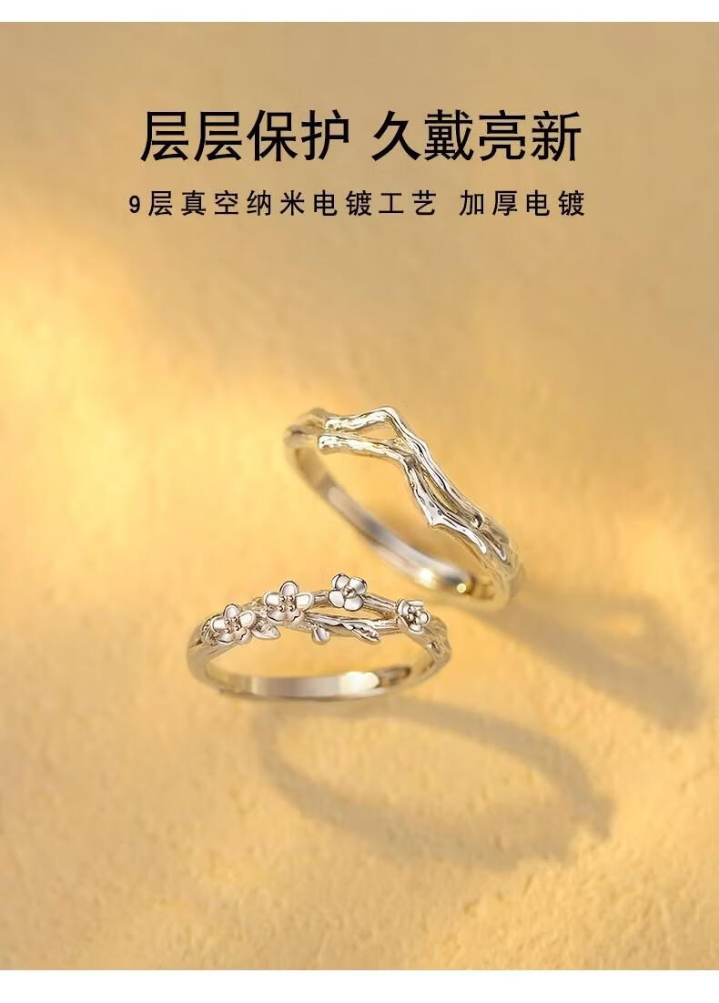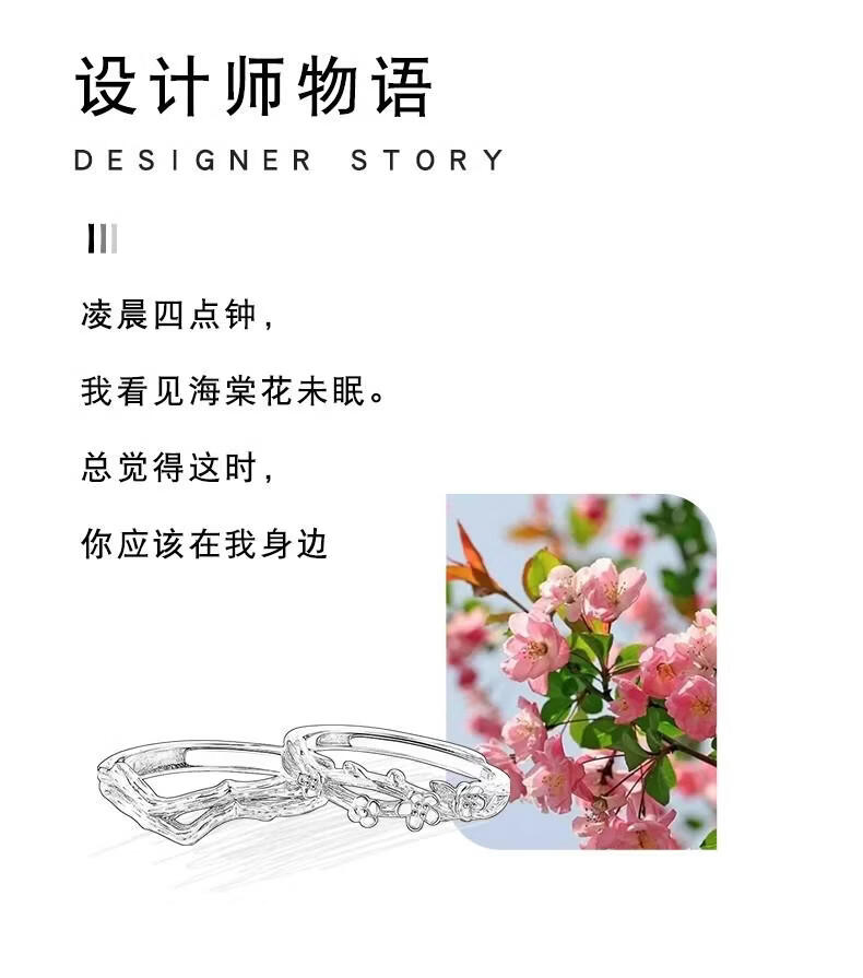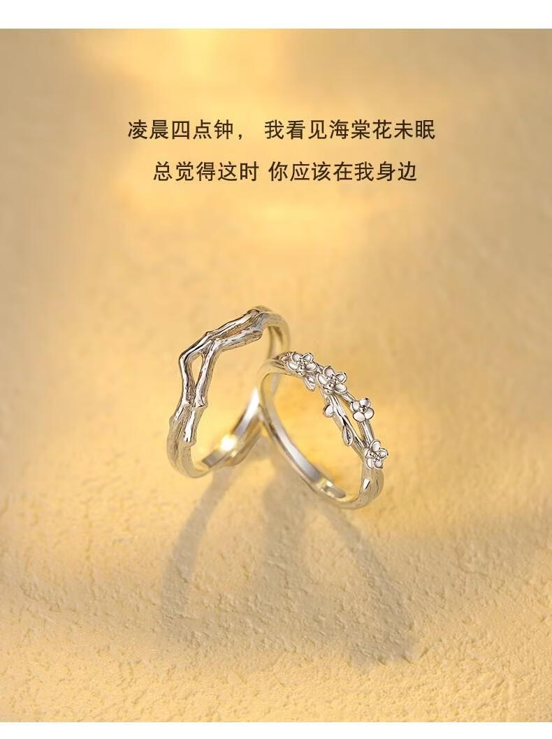 宝恋海棠情侣对戒S925纯银戒指一对款定情信物新款纪念520礼物送女友 【S925银】海棠情侣对戒-真爱花盒 【开口可调节】支持异地分开发货