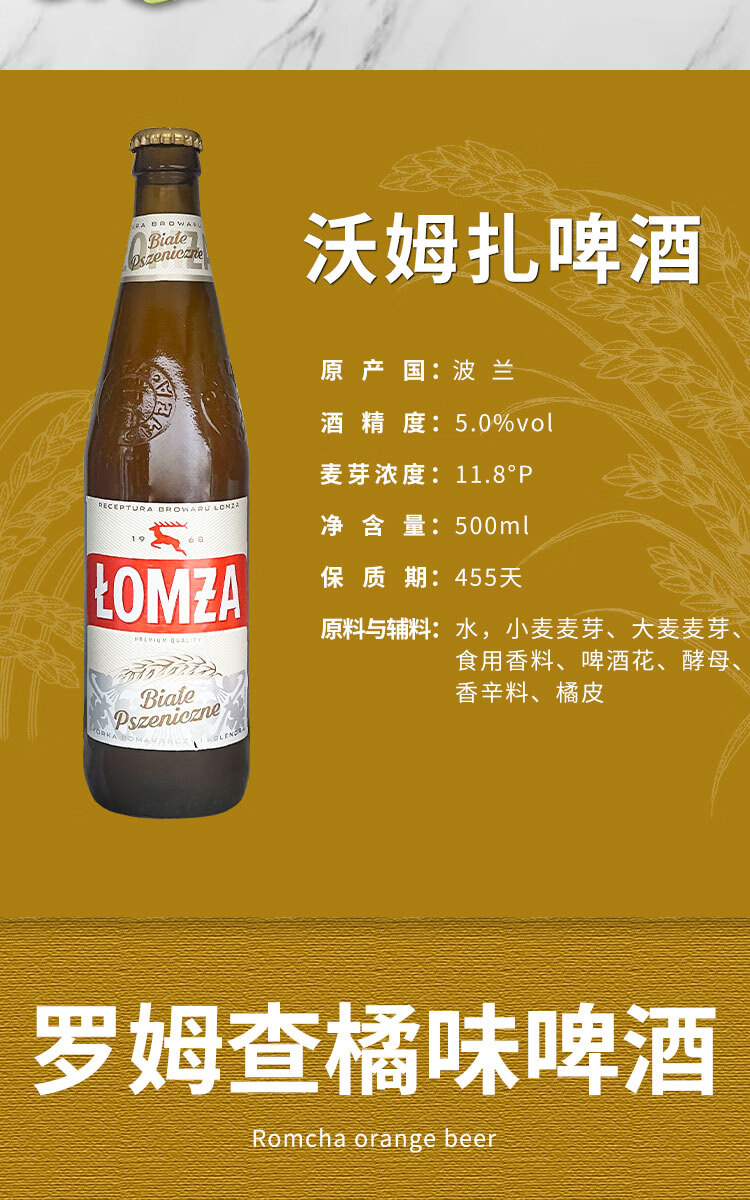 沃姆扎波兰原装进口小麦精酿白啤酒聚会自饮 500mL 20瓶 【原波美克啤酒】