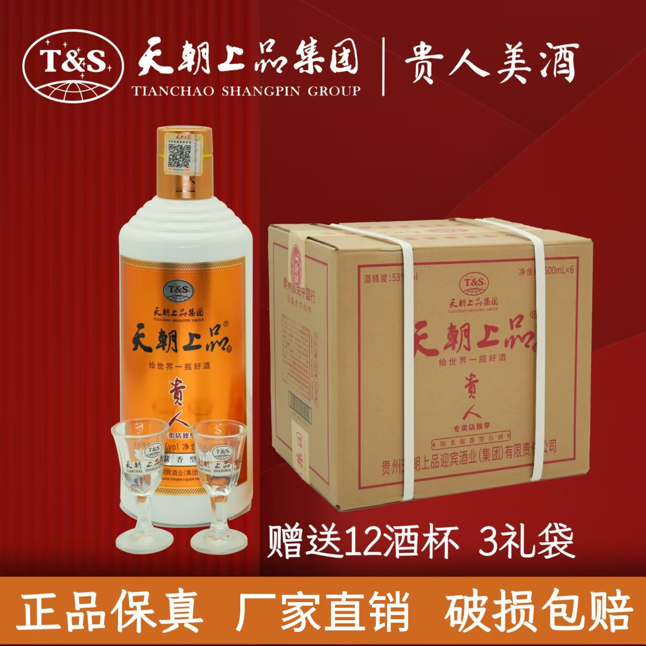 天朝上品贵人酒1箱6瓶原箱正品包真包售后53度绵柔酱香型白酒整箱装 53度 500mL 6瓶 整箱原箱