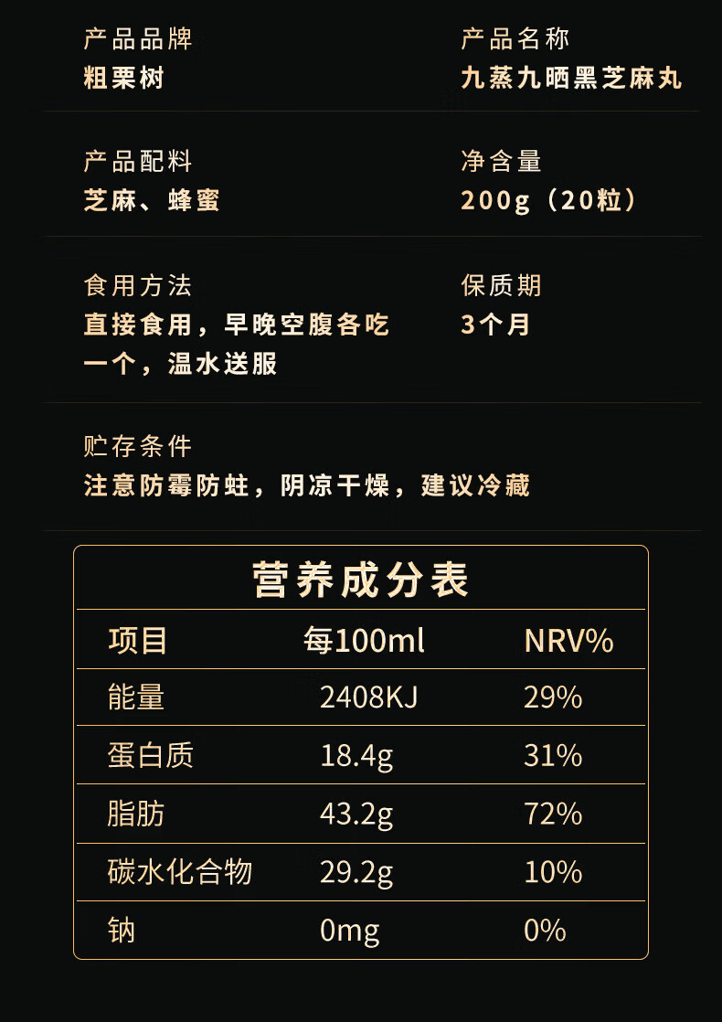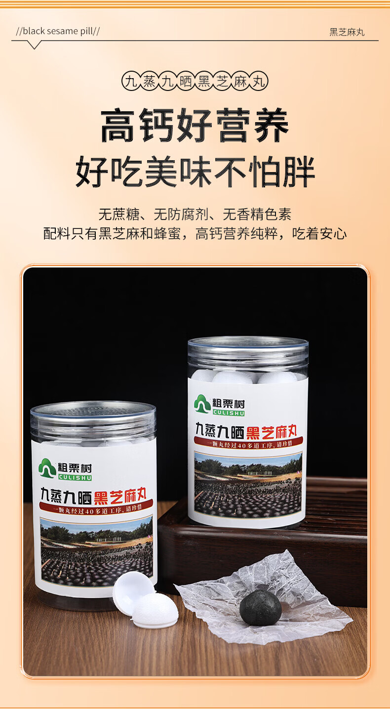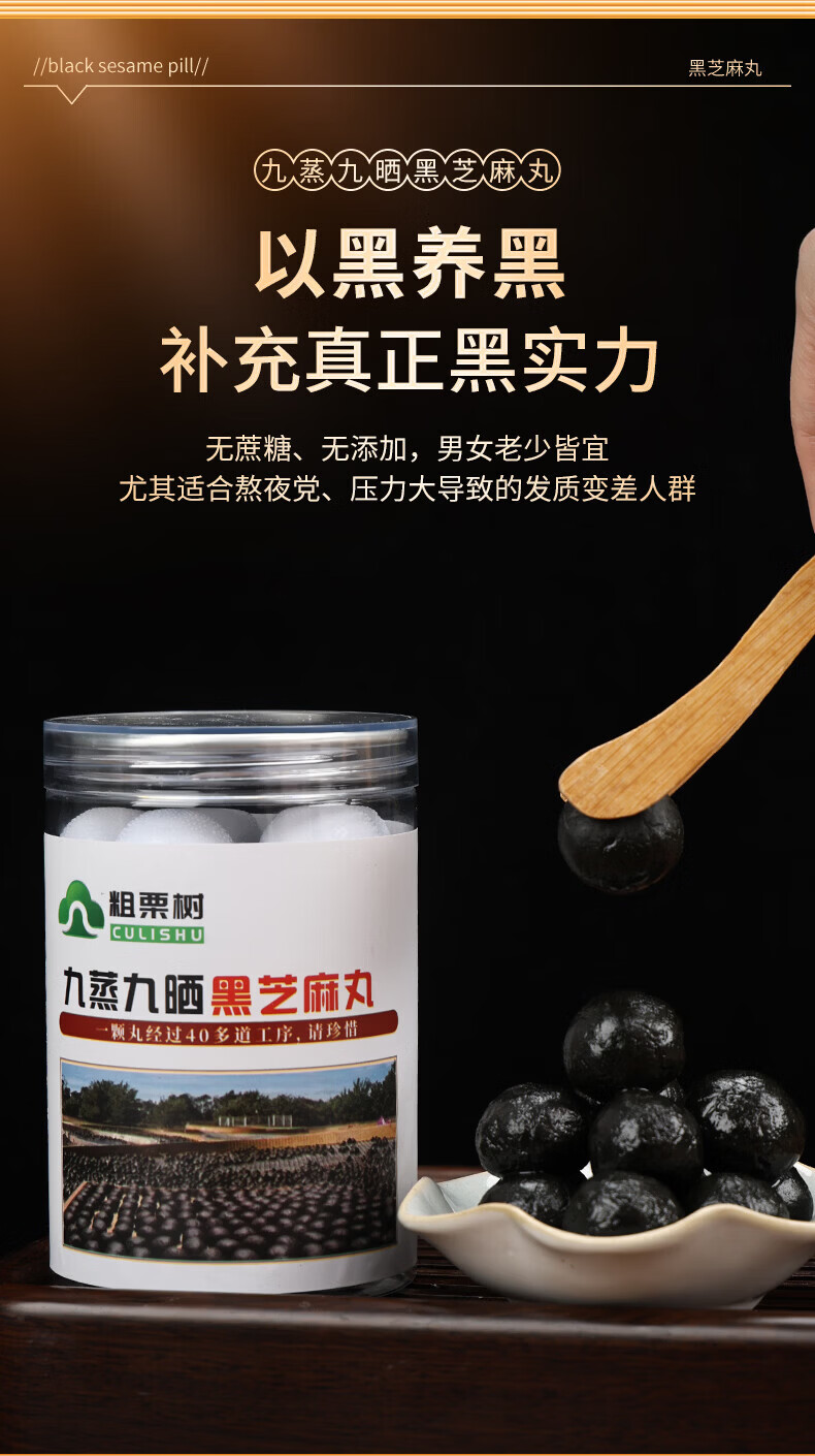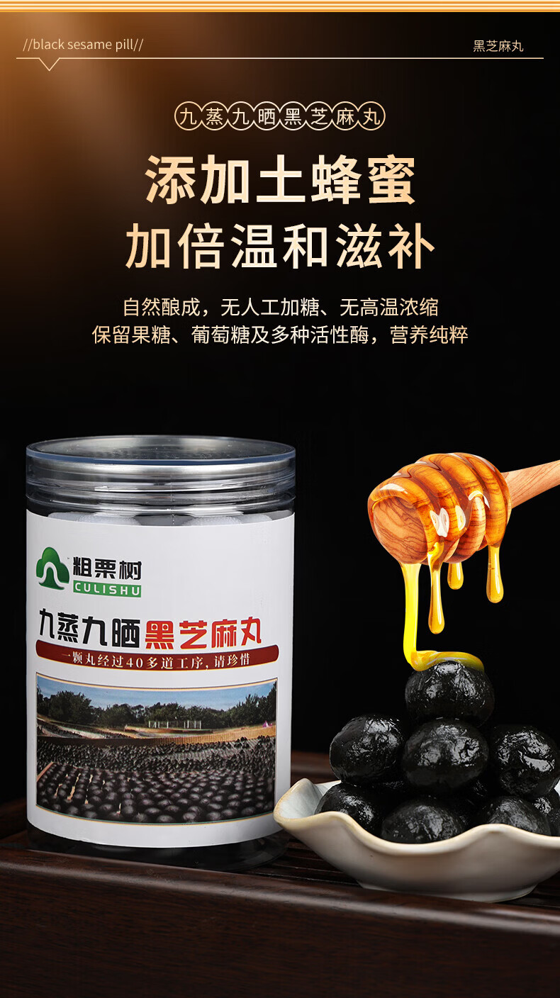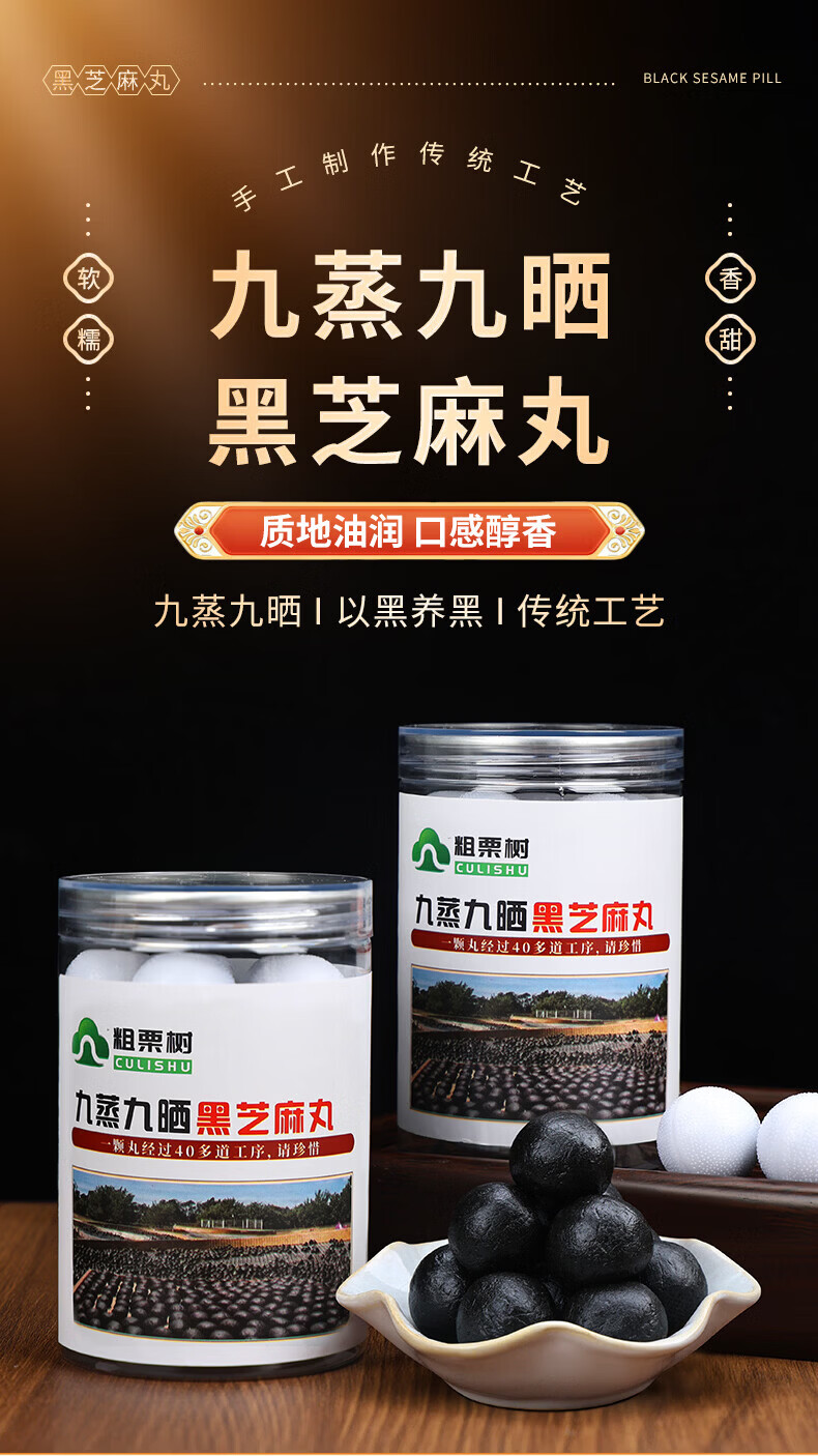 粗栗树九华山九蒸九晒黑芝麻丸无蔗糖即食辟谷养生年货送礼送健康 200g*1罐
