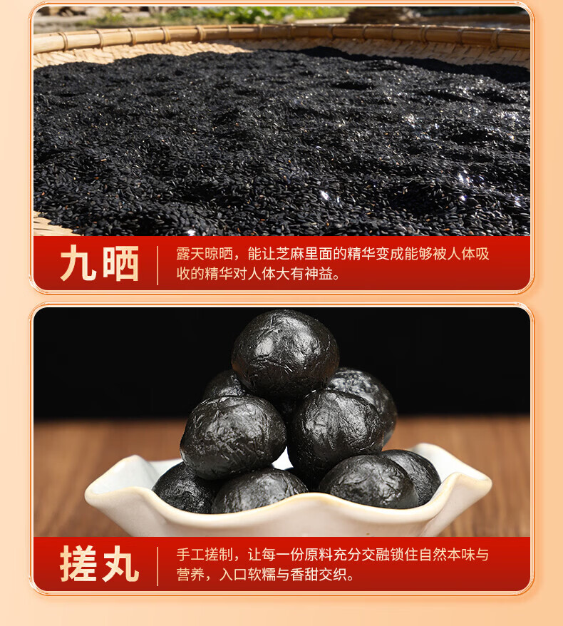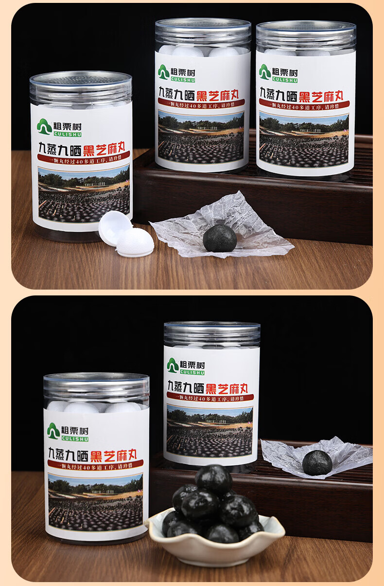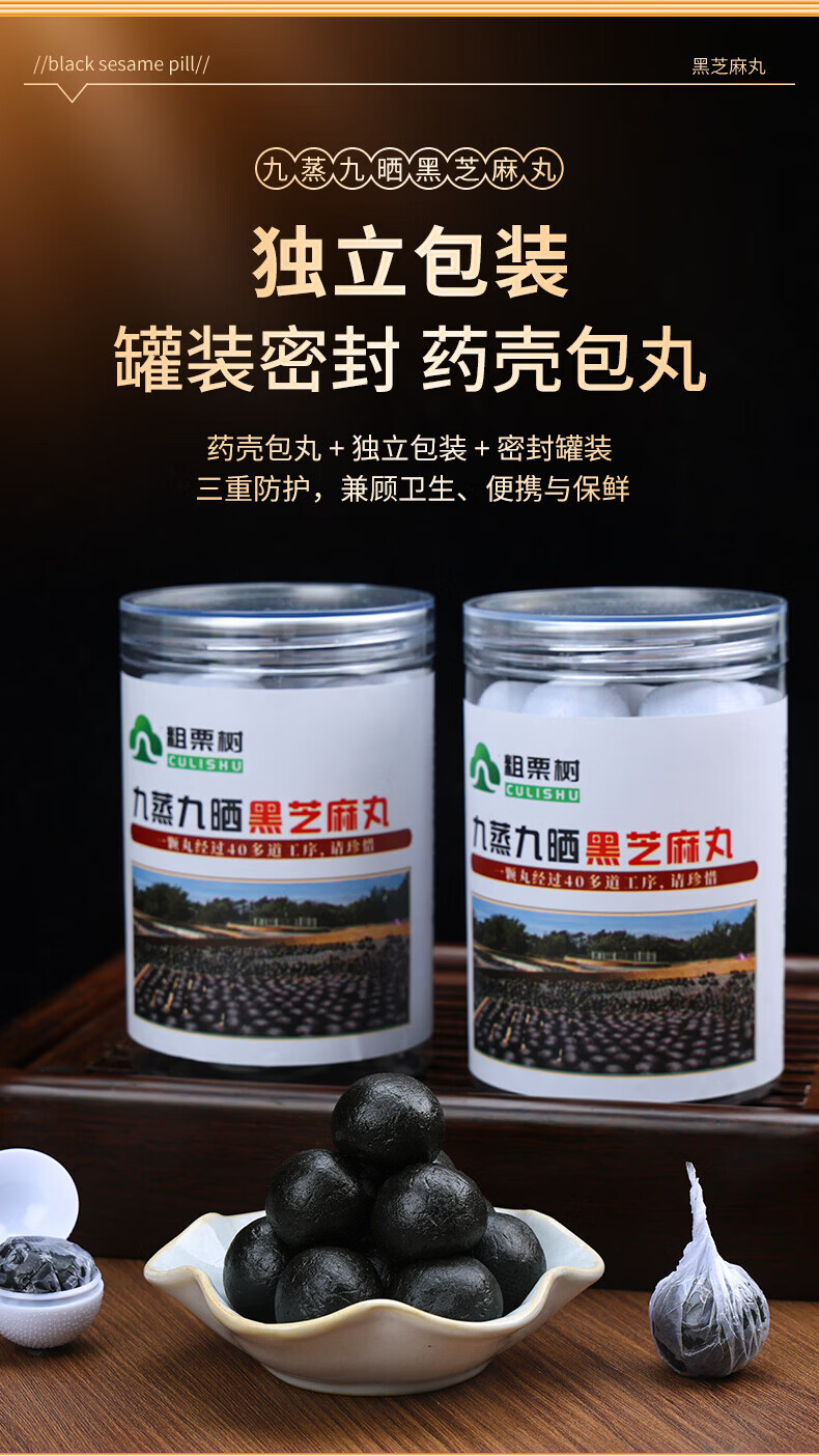 粗栗树九华山九蒸九晒黑芝麻丸无蔗糖即食辟谷养生年货送礼送健康 200g*3罐 调理装