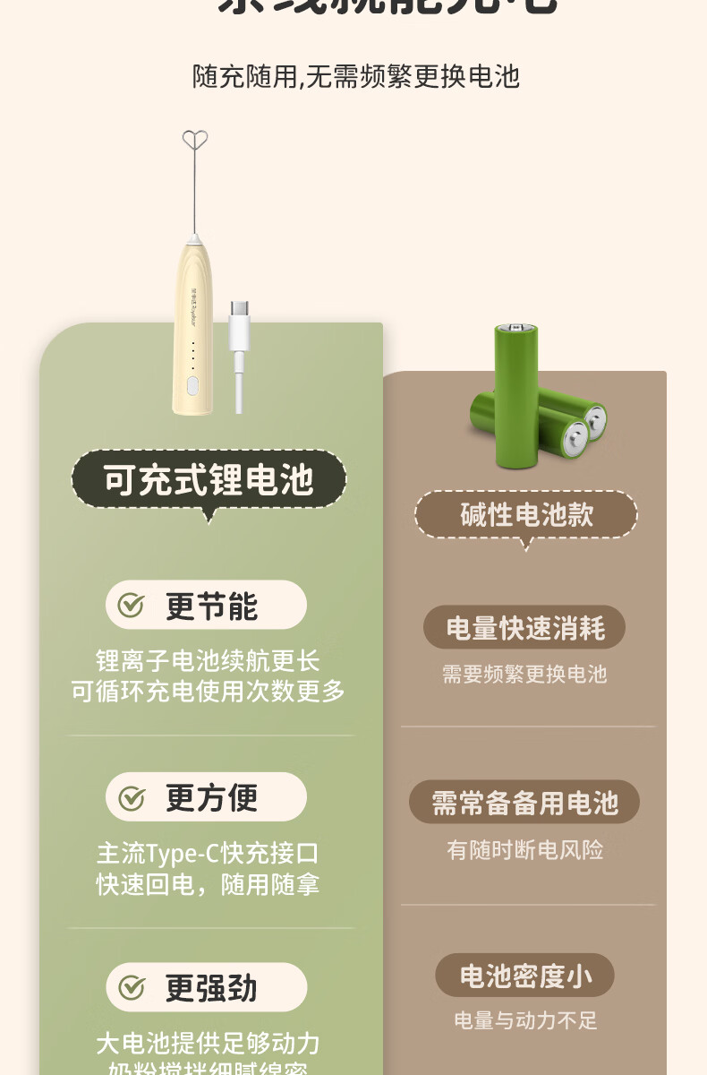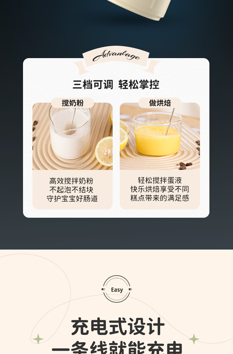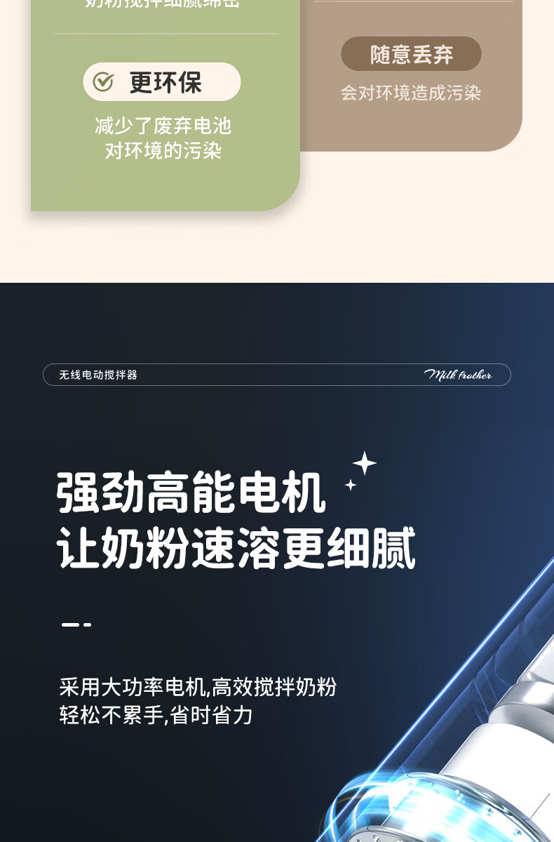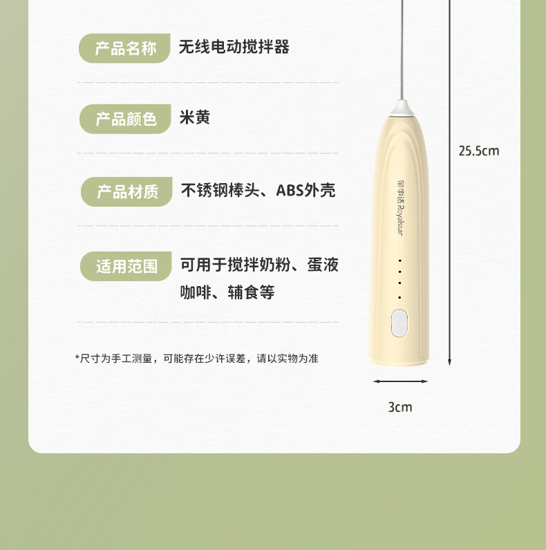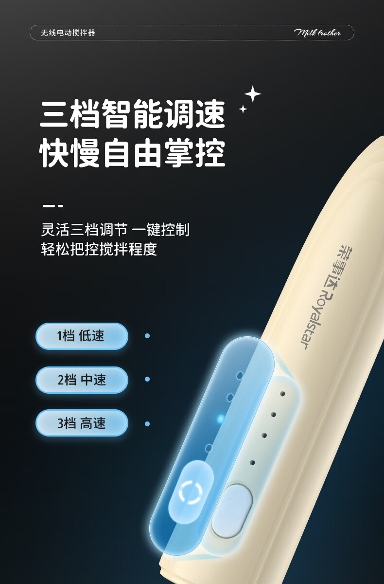 荣事达(Royalstar)电动奶粉搅拌棒婴幼儿搅奶棒不结块打奶粉专用辅食米糊神器摇奶棒 【三档调节】304不锈钢棒头-不结块不起泡
