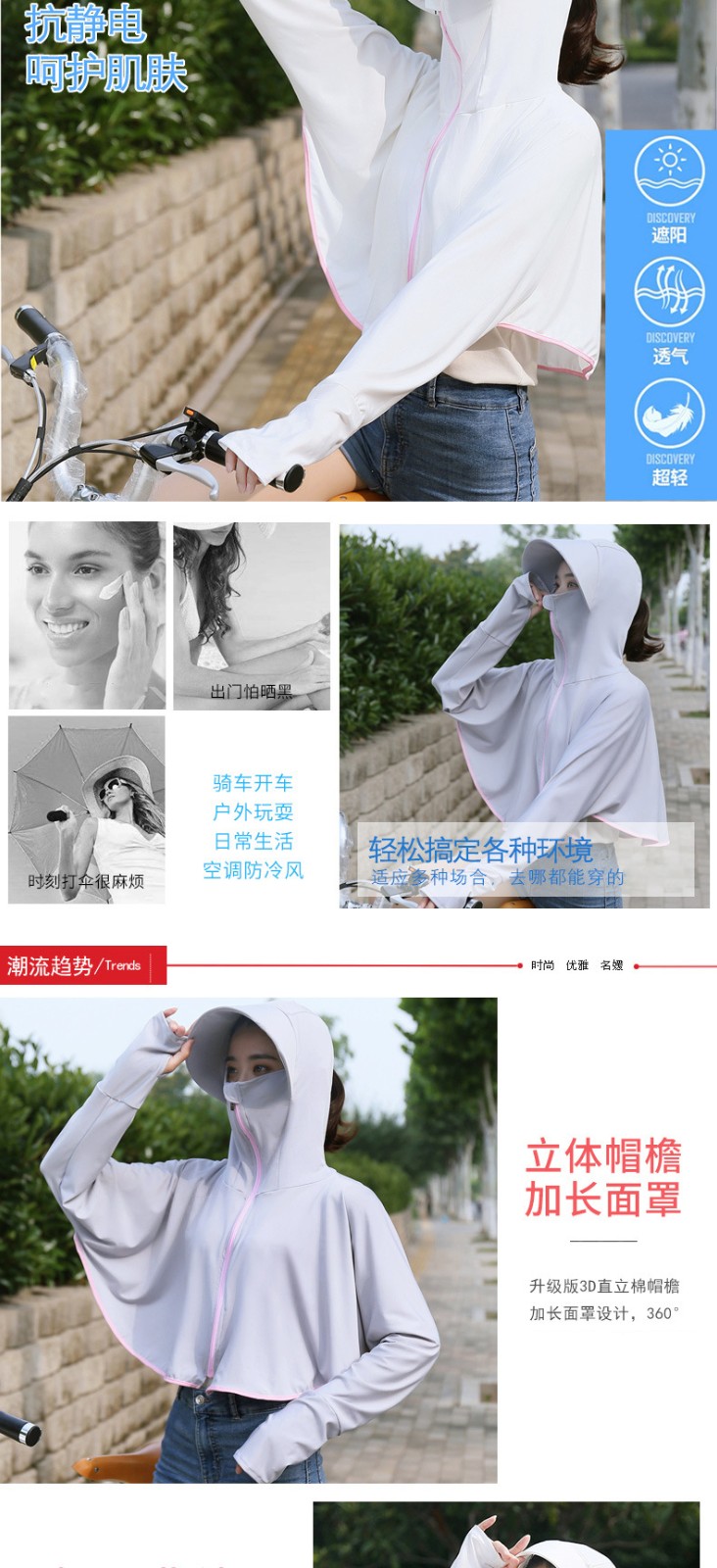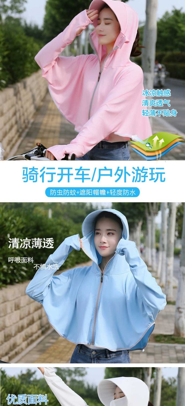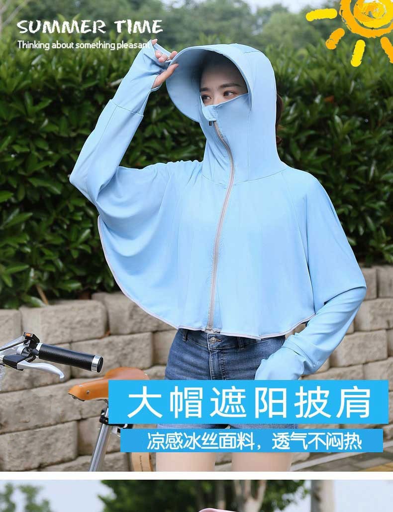 将远行新款新款冰丝透气遮阳衫薄款防风衣女百搭遮阳服 蓝色 均码