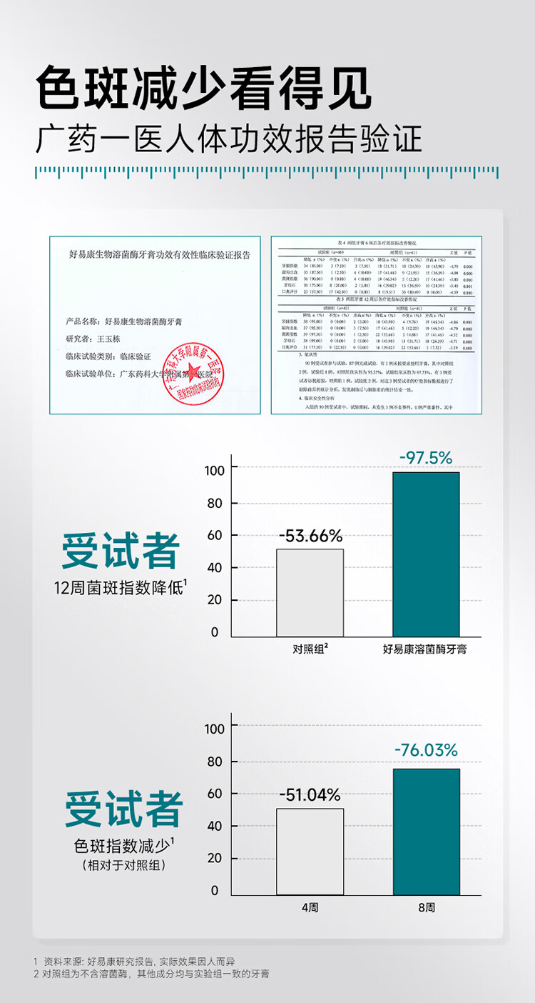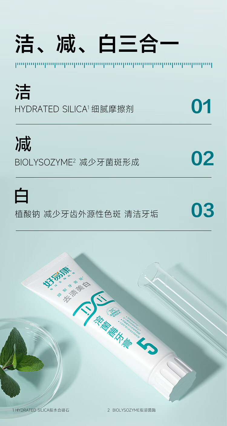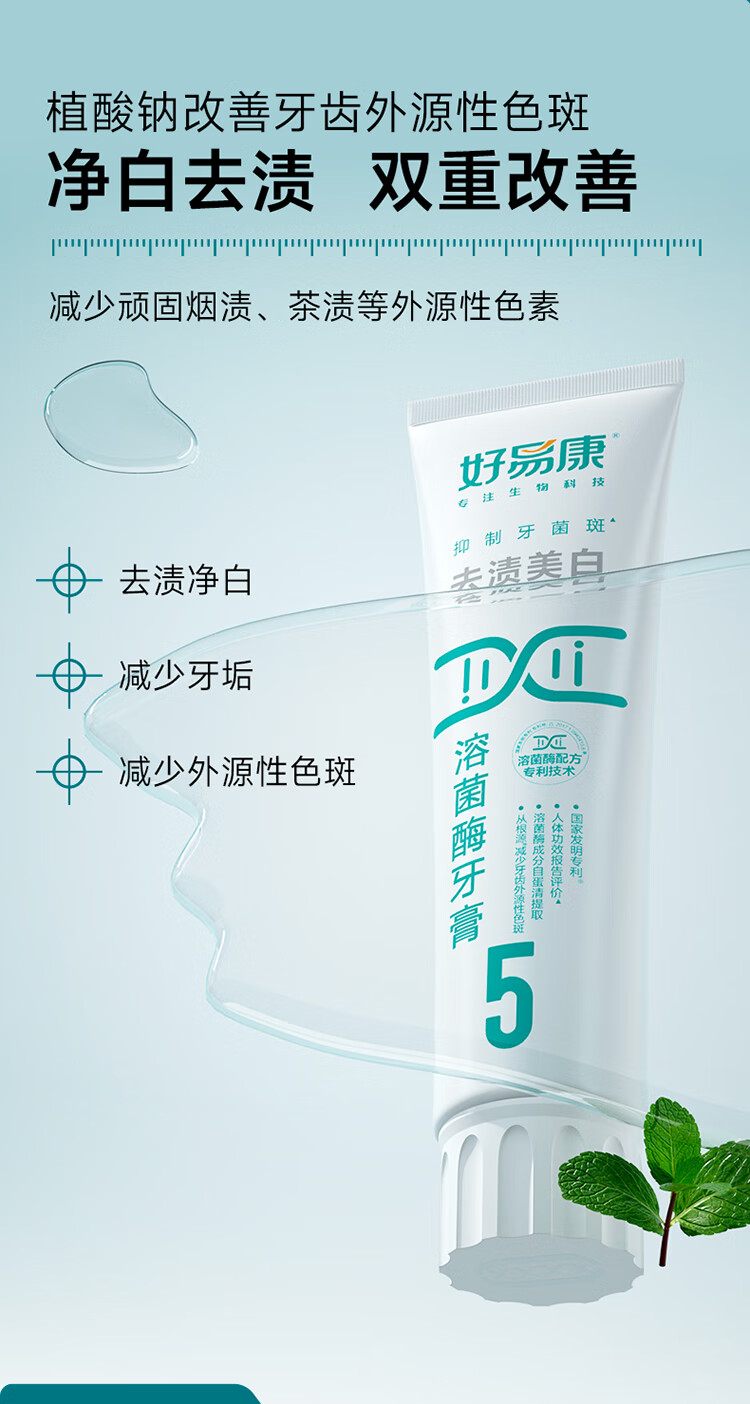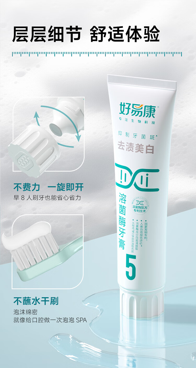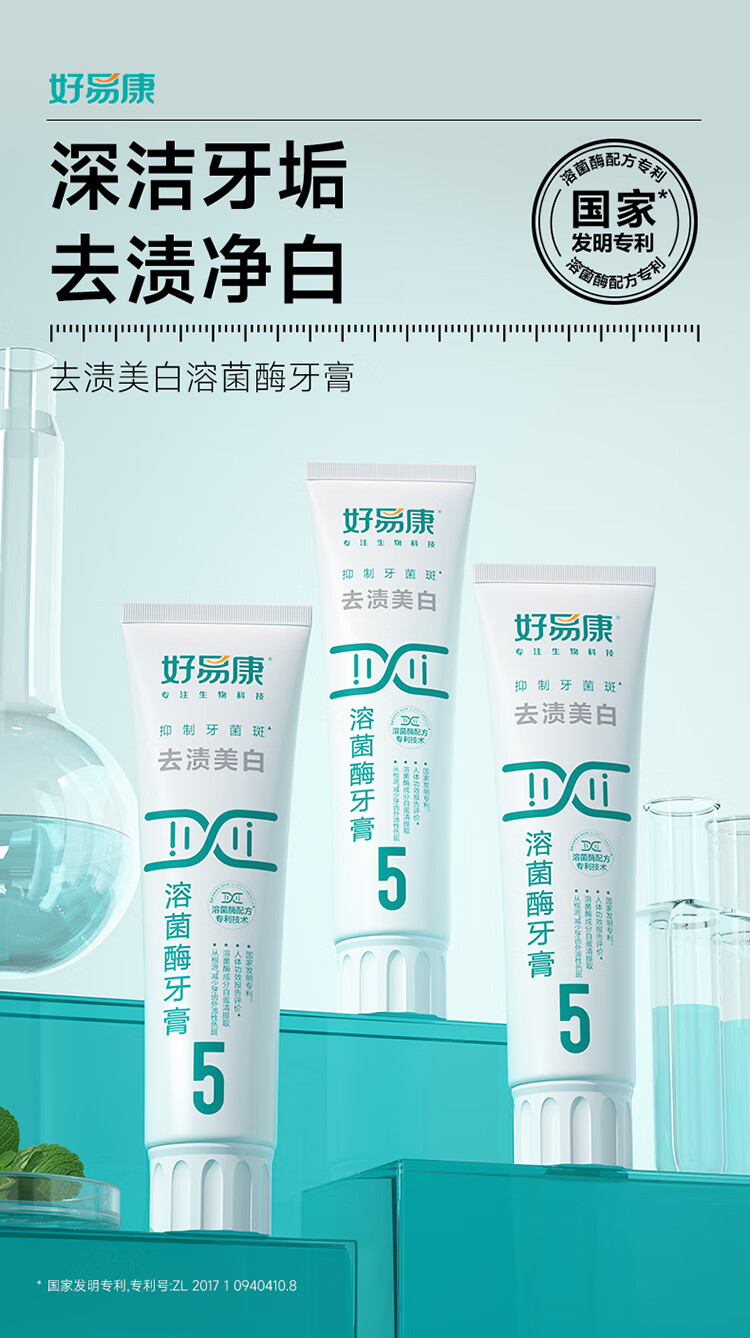 好易康溶菌酶牙膏 去渍净白深洁牙垢减少烟渍茶渍清新口气 5号3支装【120g*3】