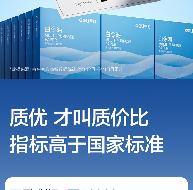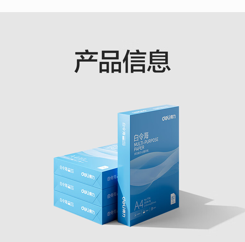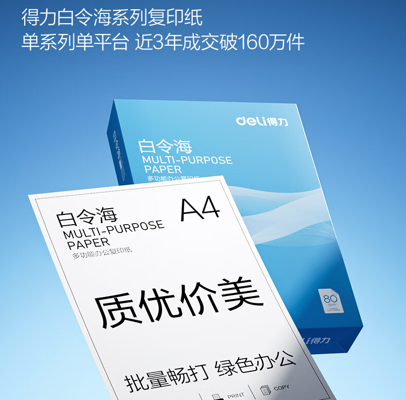 得力(deli)白令海A4打印纸 80g500张*4包一箱 双面加厚 高性价比复印纸 整箱2000张【经济热销】