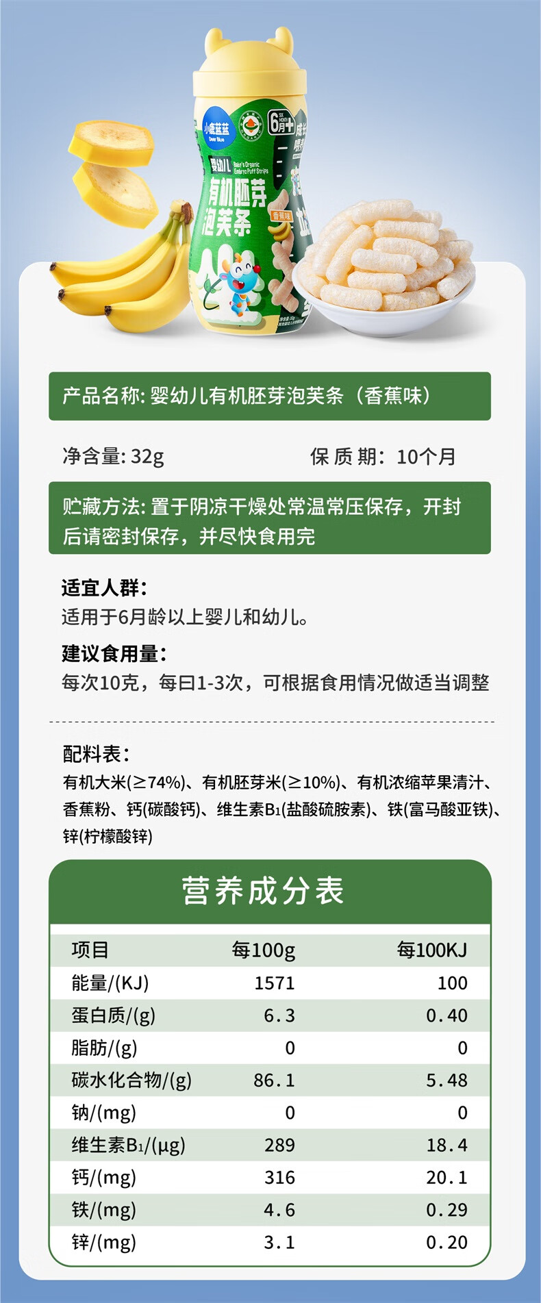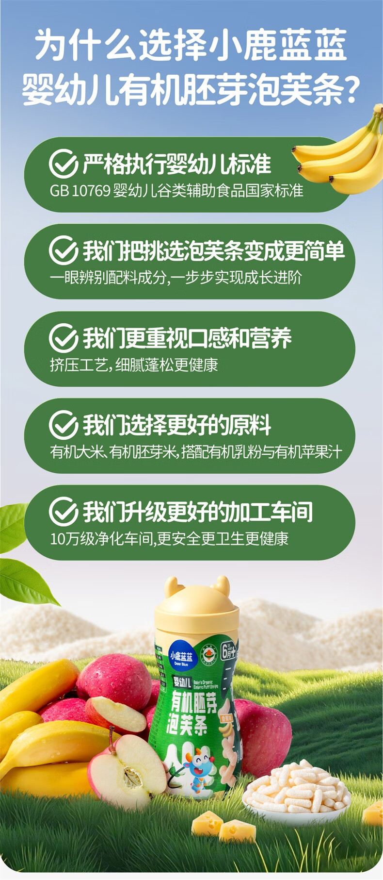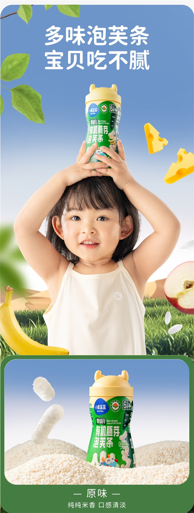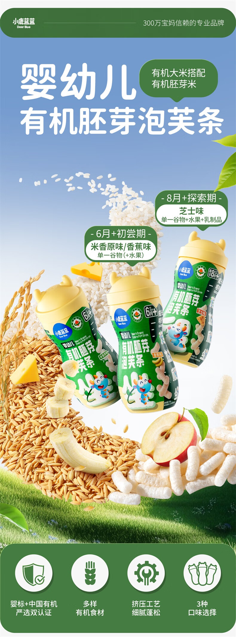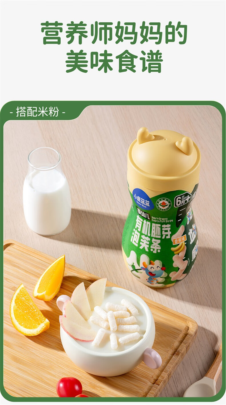 小鹿蓝蓝婴幼儿有机胚芽泡芙条宝宝零食儿童芝士味32g