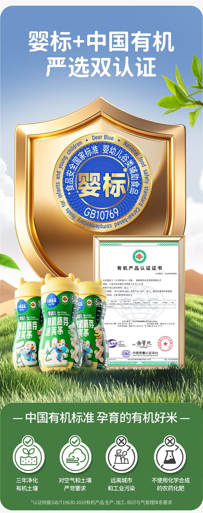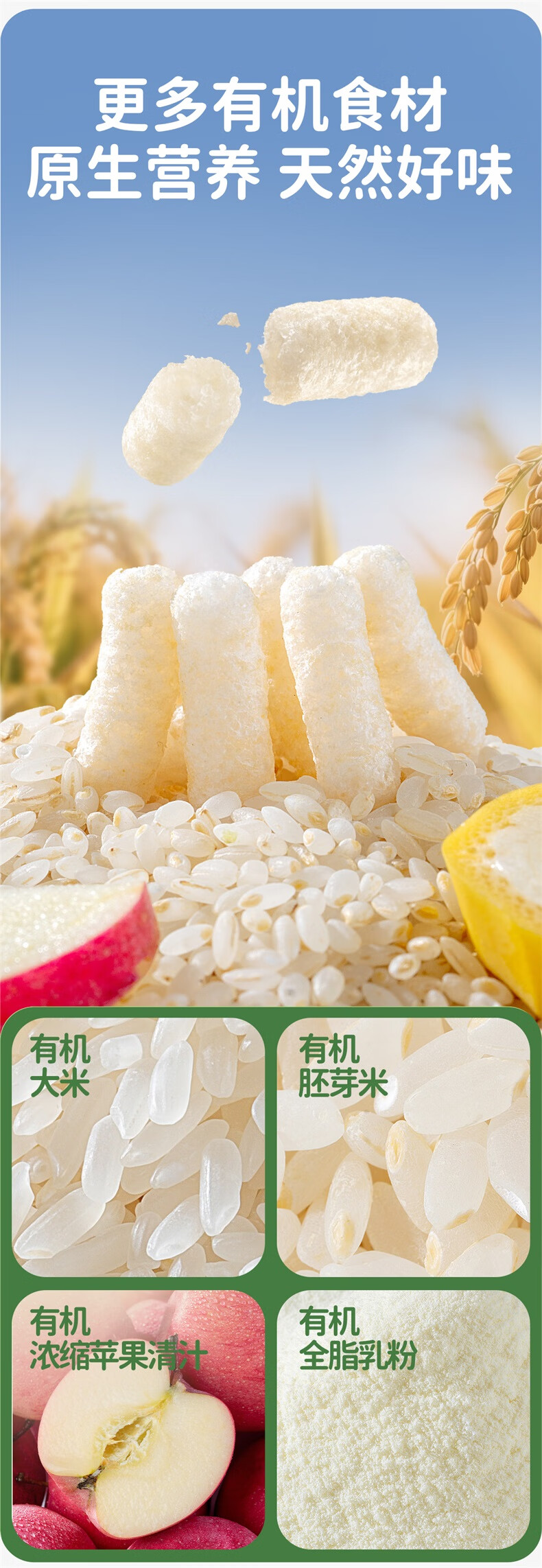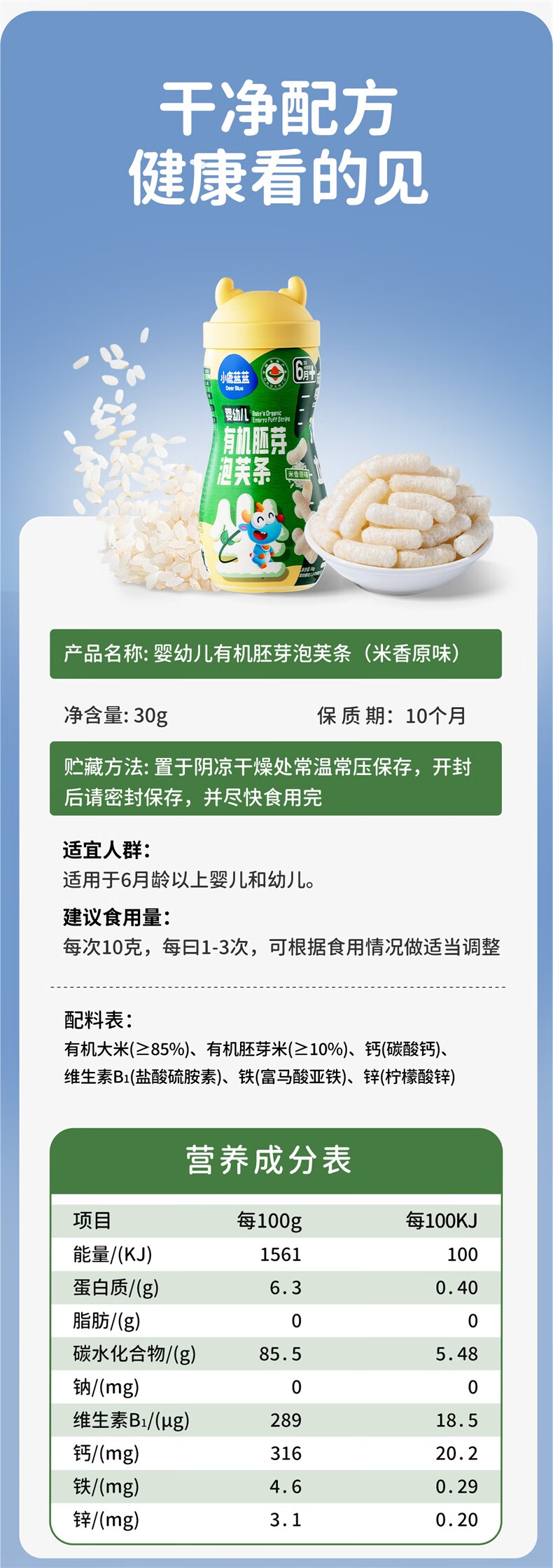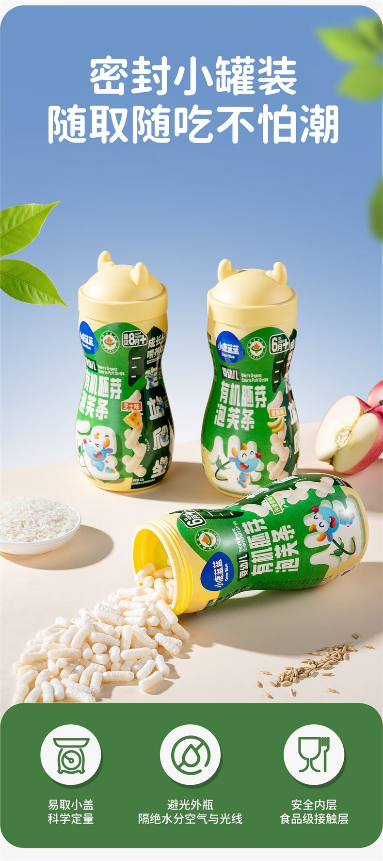 小鹿蓝蓝婴幼儿有机胚芽泡芙条宝宝零食儿童芝士味32g