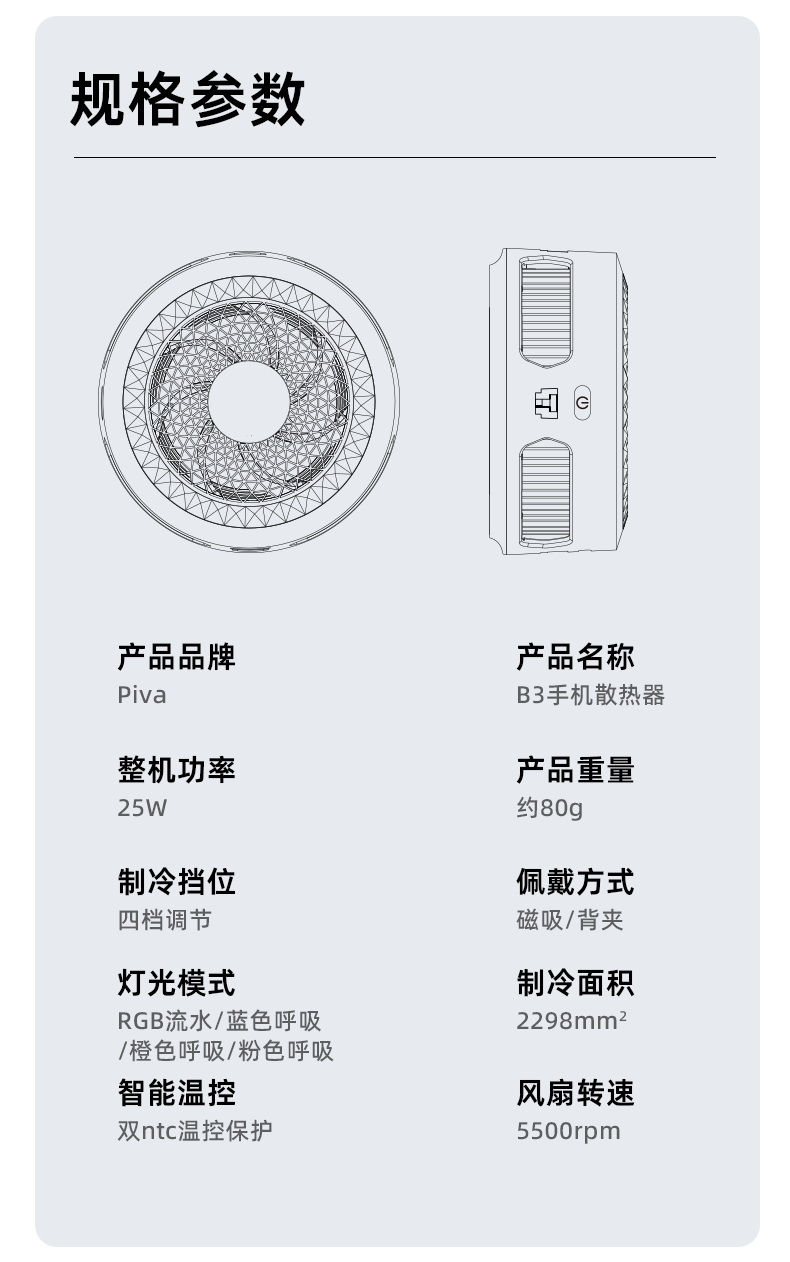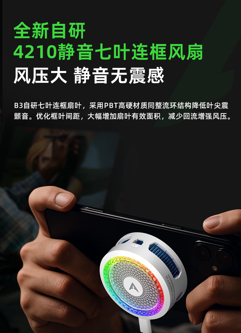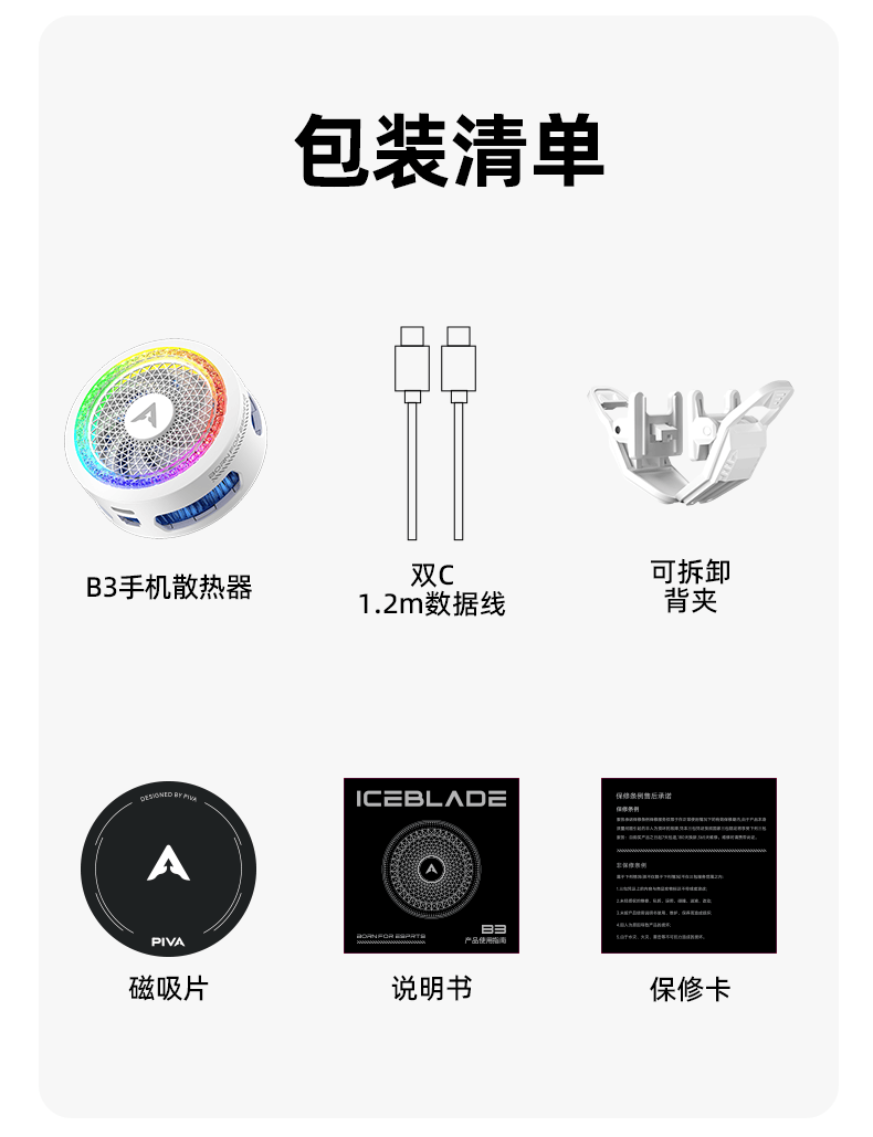 Piva派威B3磁吸手机散热器 游戏直播半导体制冷散热背夹低噪音平板降温神器一加苹果IQOO 【25W大功率强制冷】B3白 满血功率制冷请使用35W及以上充电器
