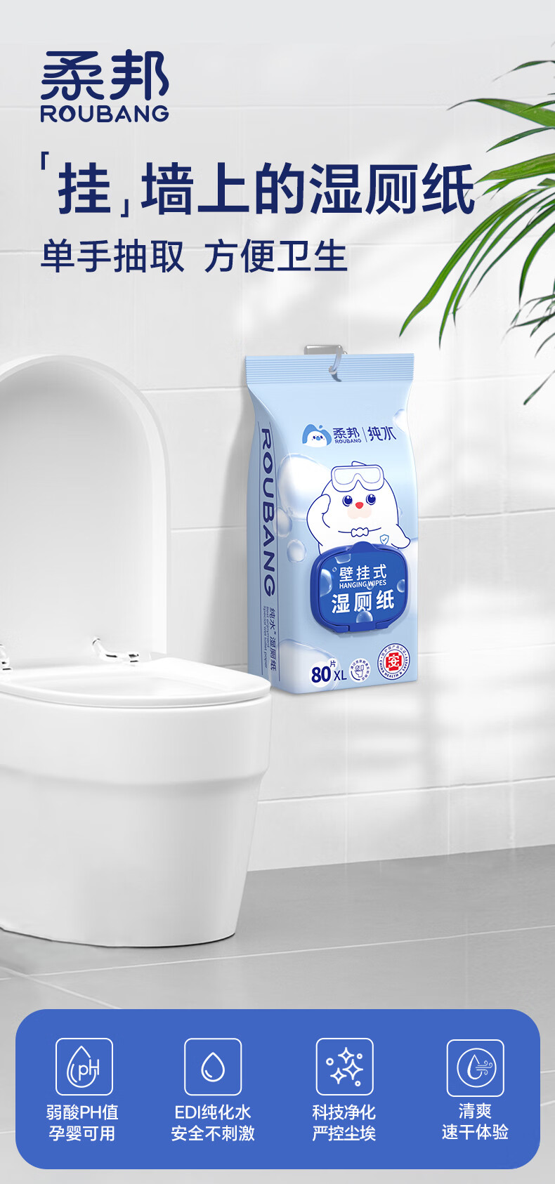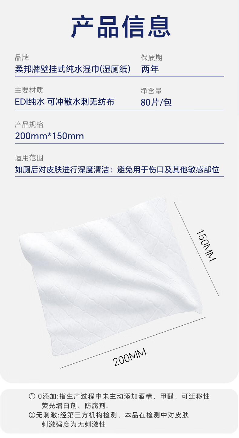 柔邦纯水湿厕纸 厕所湿巾挂式 湿厕巾洁厕纸湿厕纸巾悬挂搭卷纸抽纸用 纯水湿厕纸 80抽*5包